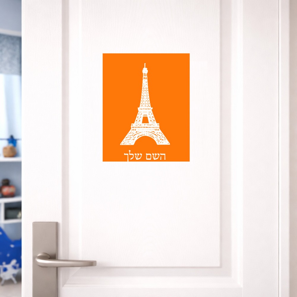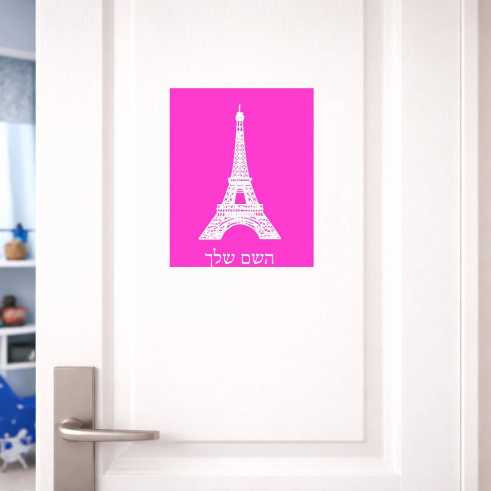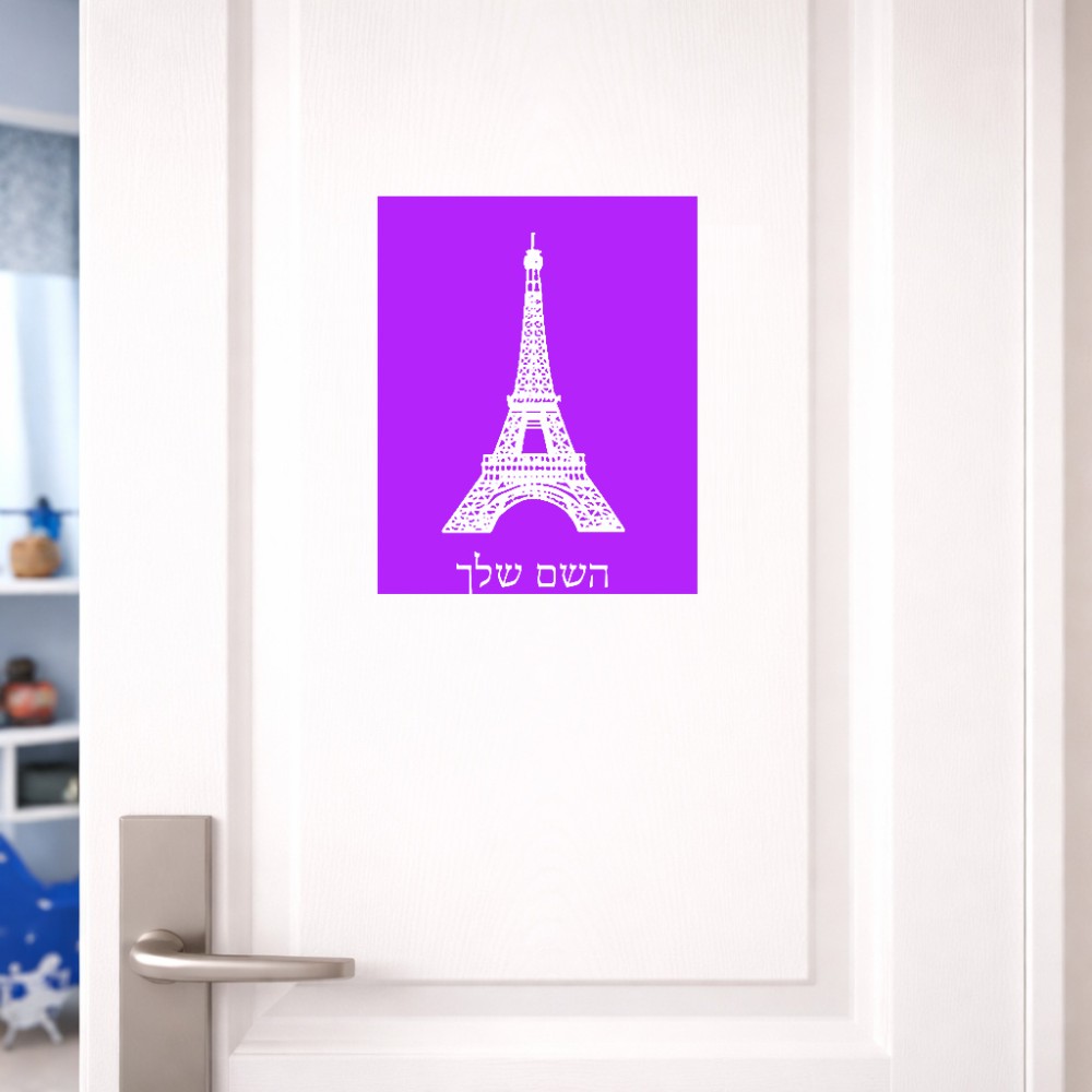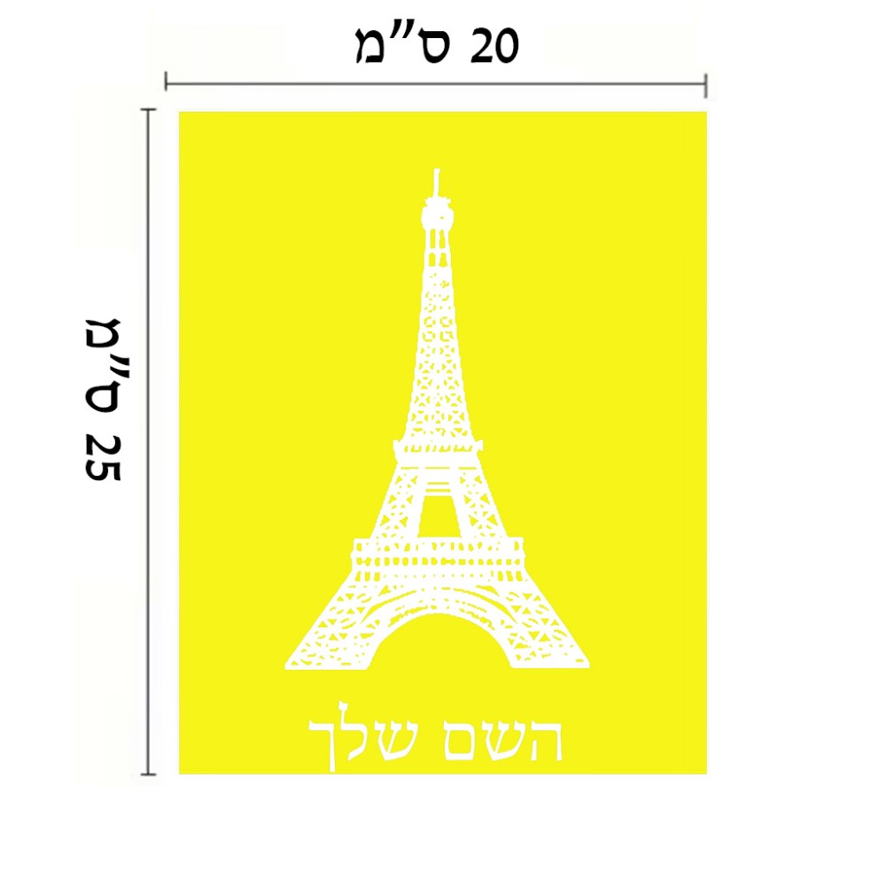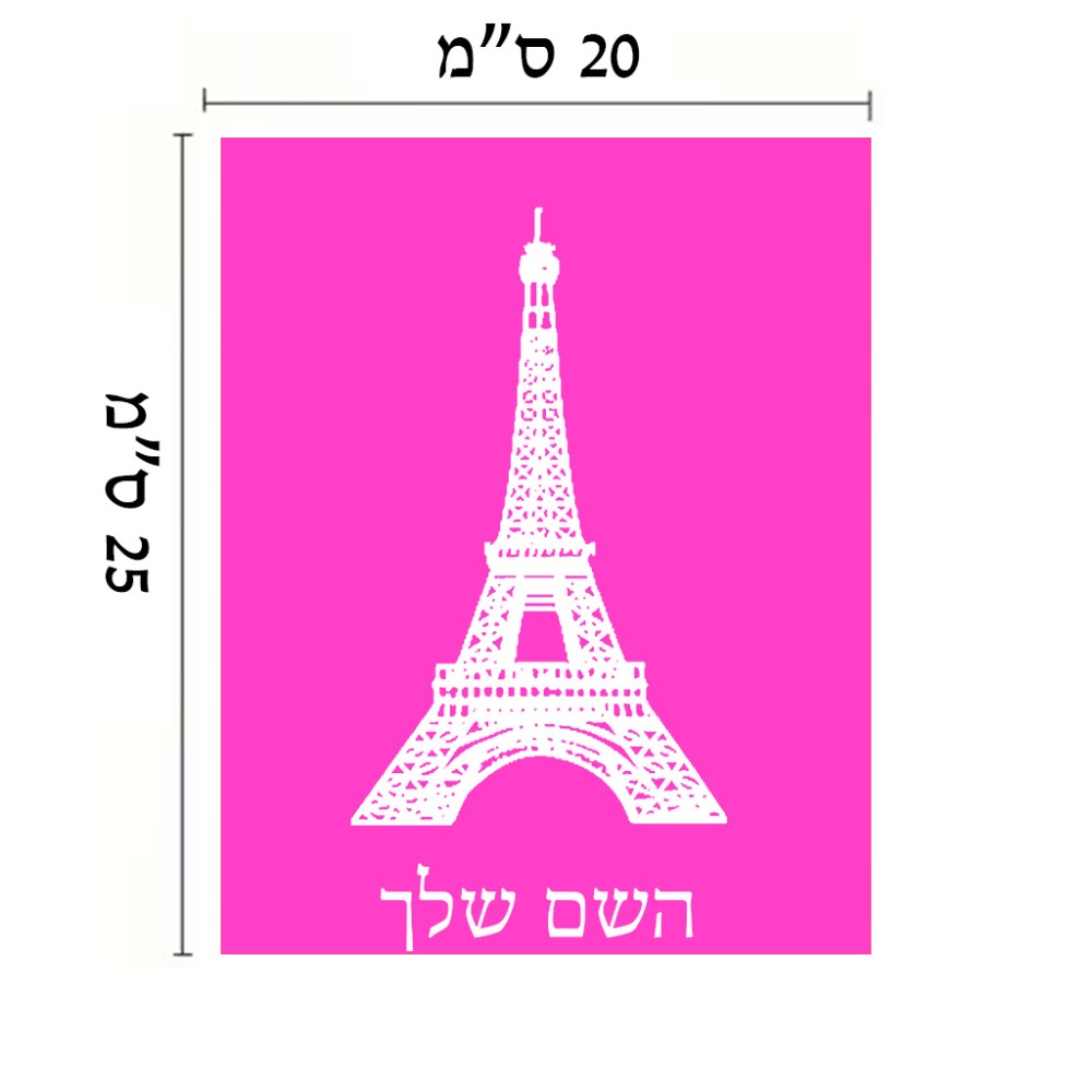 שלט אלומיניום גדול לחדר בעיצוב אישי עם השם שלך בעיצוב מגדל אייפל גודל השלט 20 × 25 ס"מ. את השם המבוקש ניתן לציין בהזמנה, אם לא צויין אנחנו ניצור קשר לבירור.