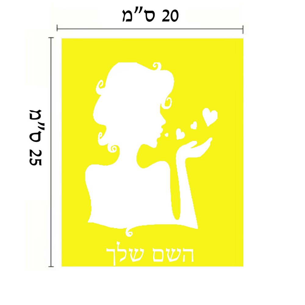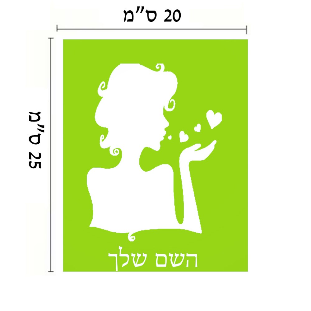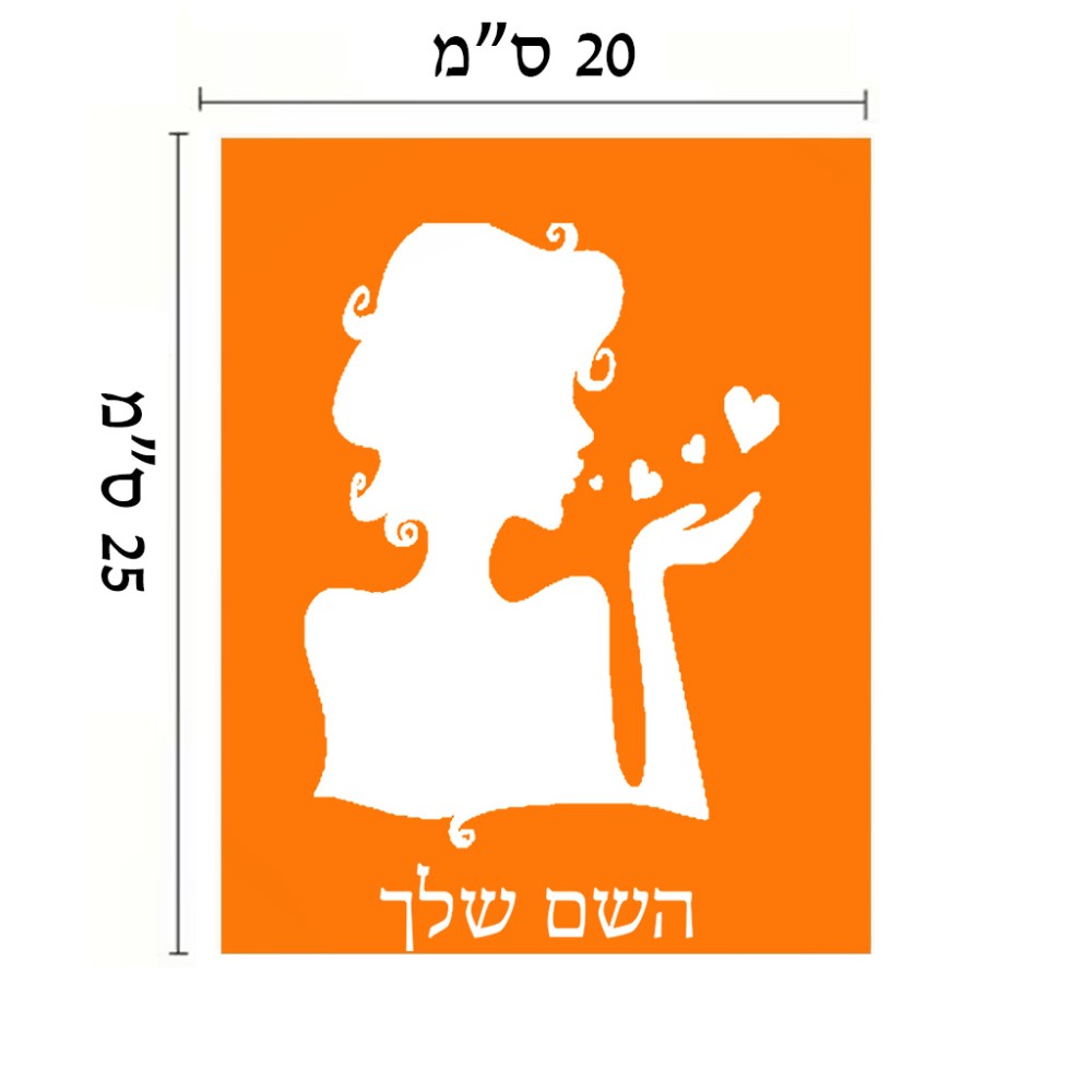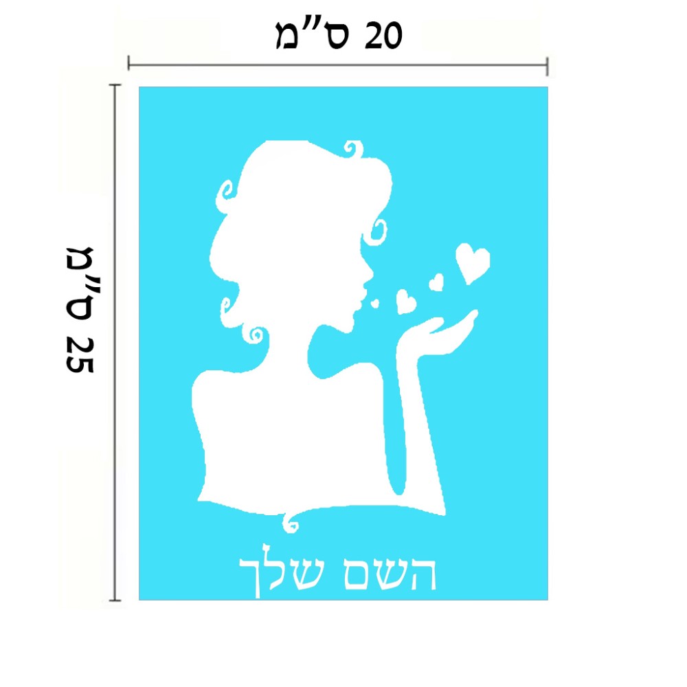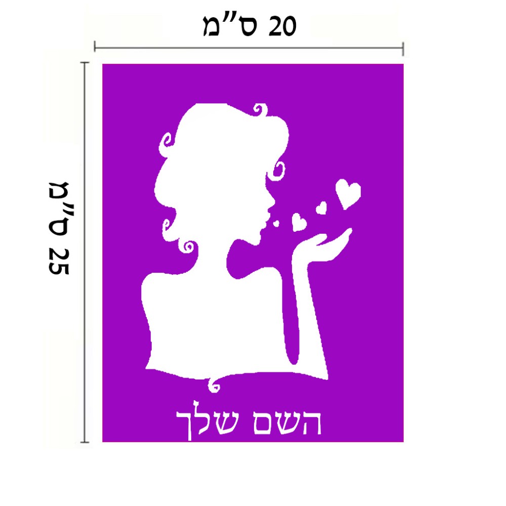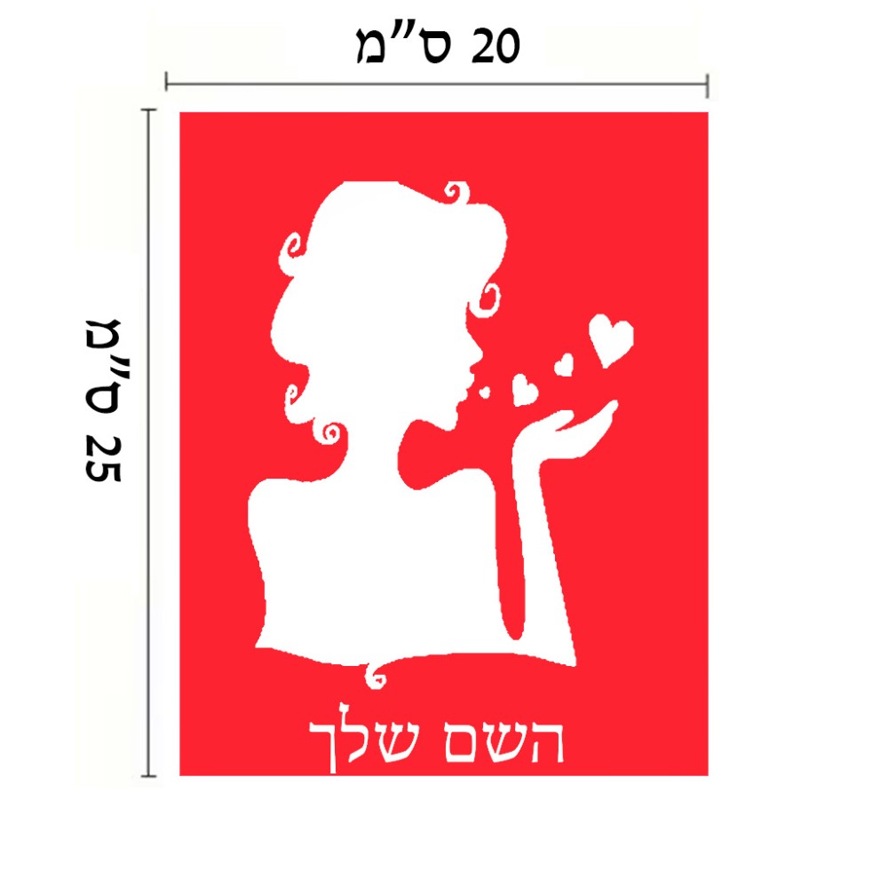 שלט אלומיניום גדול לחדר בעיצוב אישי עם השם שלך בעיצוב אהבת נשים גודל השלט 20 × 25 ס"מ. את השם המבוקש ניתן לציין בהזמנה, אם לא צויין אנחנו ניצור קשר לבירור.