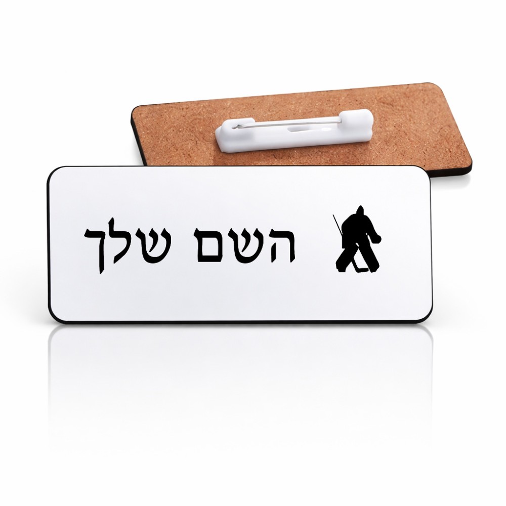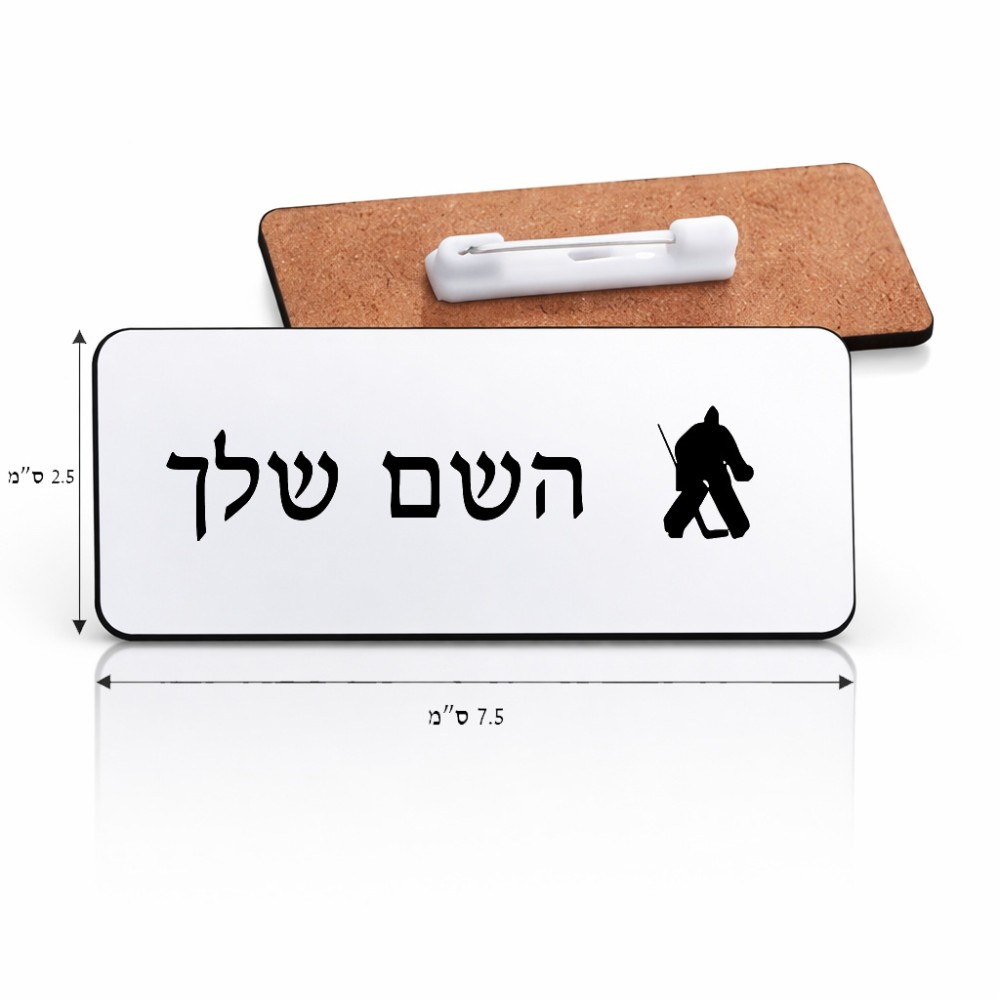 תג שם \ תוויות שם בעיצוב אישי עם השם שלך בעיצוב הוקי שוערים גודל התג 7.5 × 2.5 ס"מ