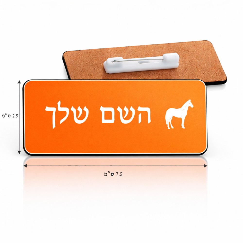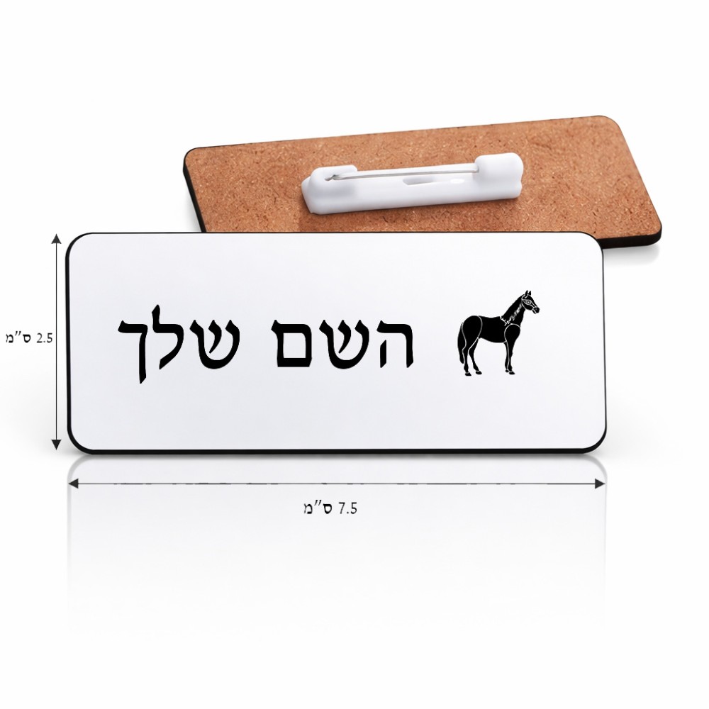 תג שם \ תוויות שם בעיצוב אישי עם השם שלך בעיצוב סוס גודל התג 7.5 × 2.5 ס"מ. את השם המבוקש ניתן לציין בהזמנה, אם לא צויין אנחנו ניצור קשר לבירור.