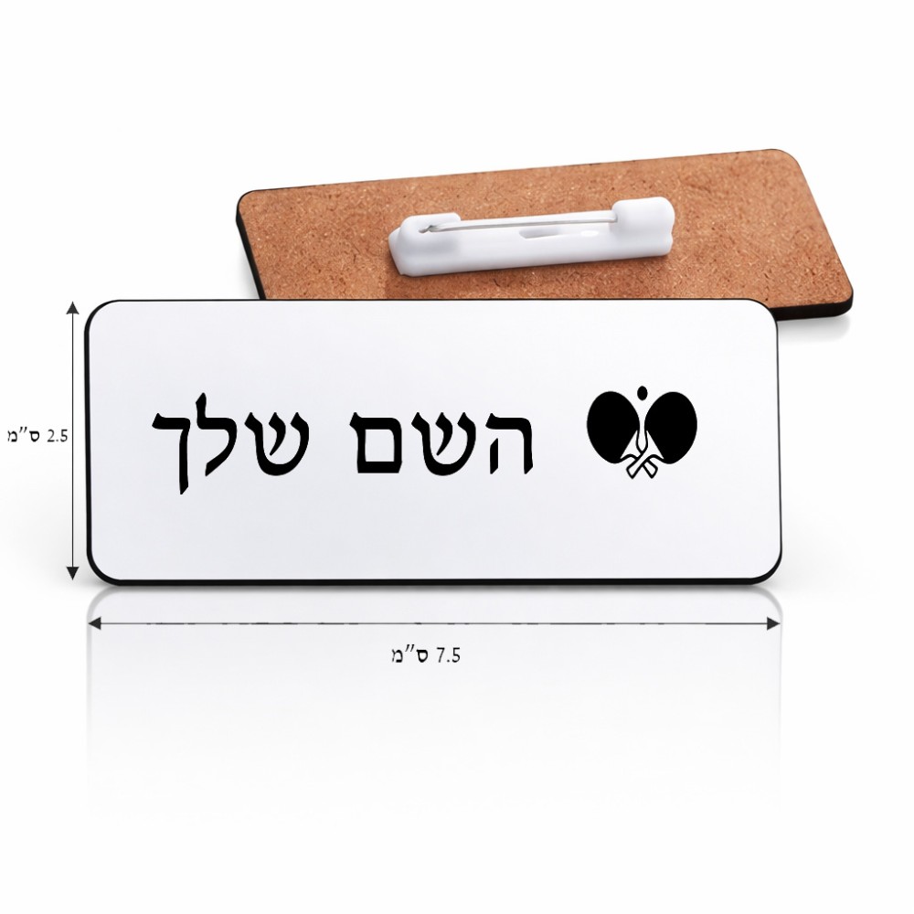 תג שם \ תוויות שם בעיצוב אישי עם השם שלך בעיצוב פינג פונג גודל התג 7.5 × 2.5 ס"מ. את השם המבוקש ניתן לציין בהזמנה, אם לא צויין אנחנו ניצור קשר לבירור.