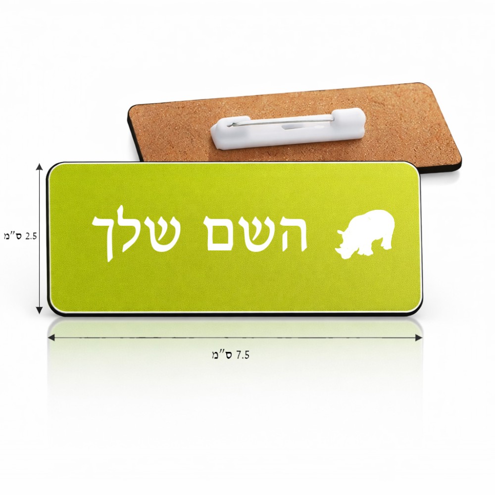 תג שם \ תוויות שם בעיצוב אישי עם השם שלך בעיצוב קרנף גודל התג 7.5 × 2.5 ס"מ. את השם המבוקש ניתן לציין בהזמנה, אם לא צויין אנחנו ניצור קשר לבירור.