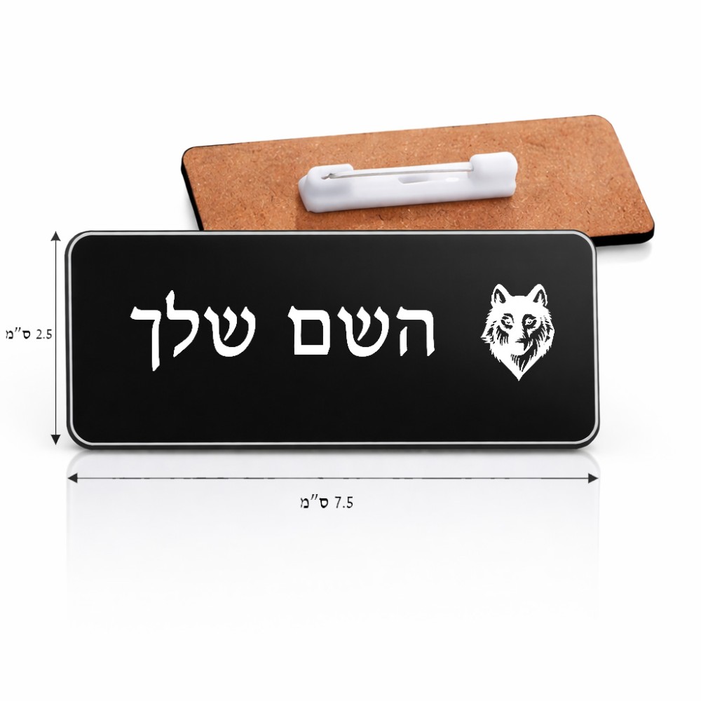 תג שם \ תוויות שם בעיצוב אישי עם השם שלך בעיצוב זאב גודל התג 7.5 × 2.5 ס"מ. את השם המבוקש ניתן לציין בהזמנה, אם לא צויין אנחנו ניצור קשר לבירור.