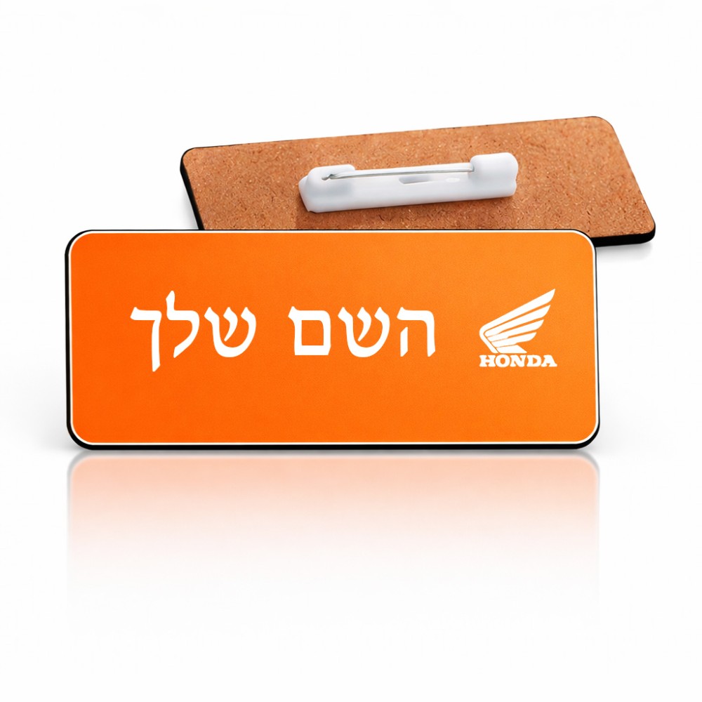 תג שם \ תוויות שם בעיצוב אישי עם השם שלך בעיצוב הונדה גודל התג 7.5 × 2.5 ס"מ. את השם המבוקש ניתן לציין בהזמנה, אם לא צויין אנחנו ניצור קשר לבירור.
