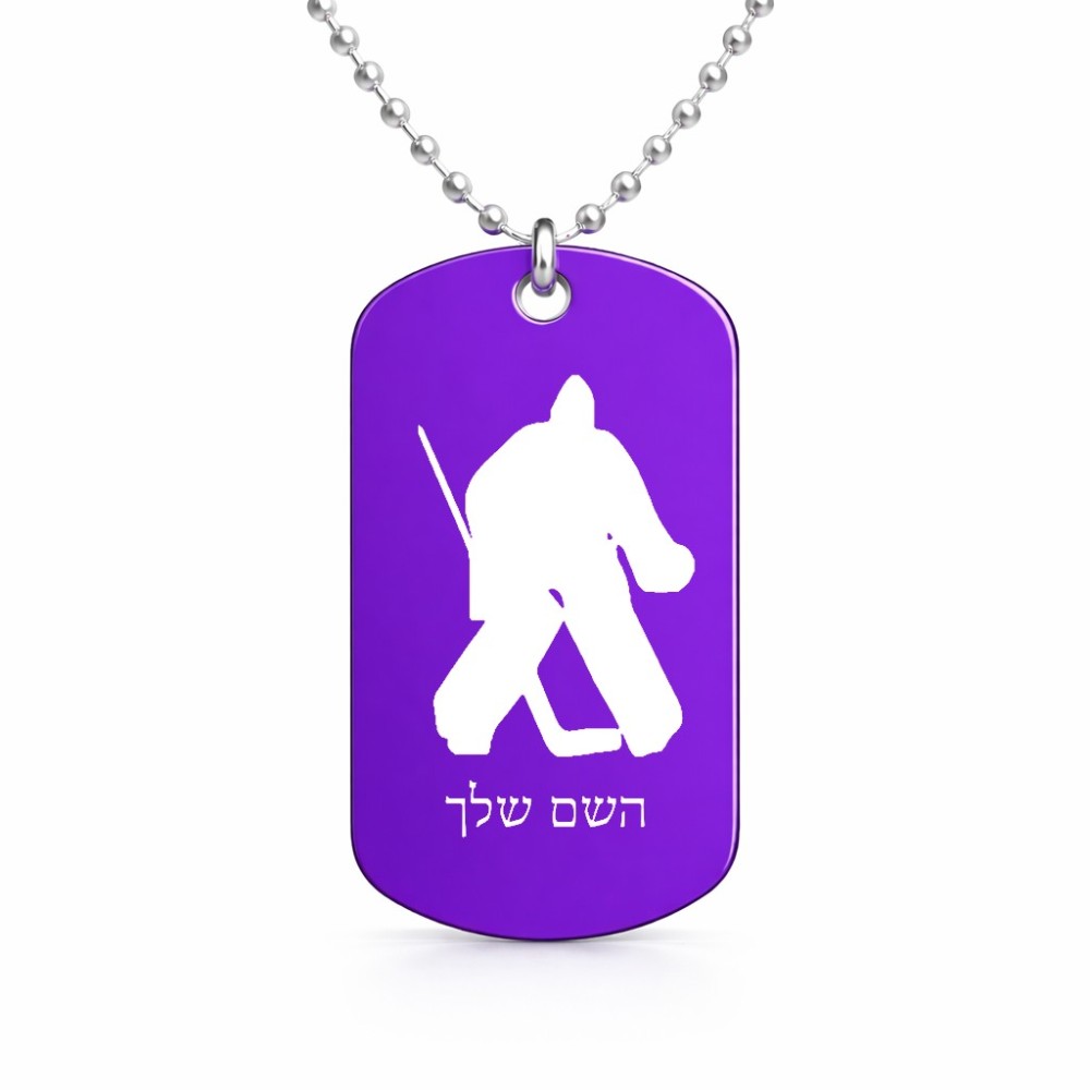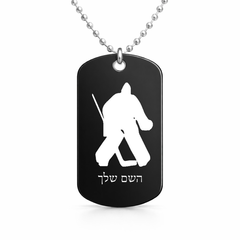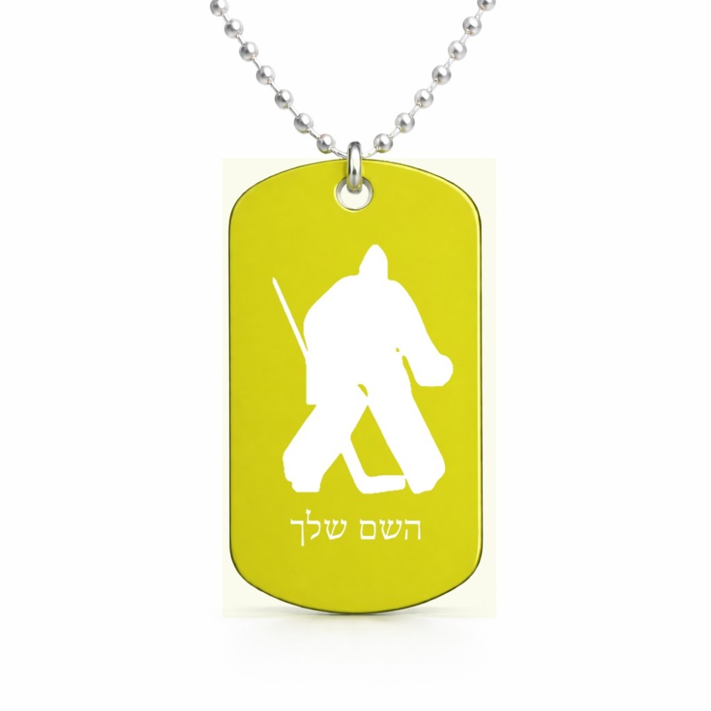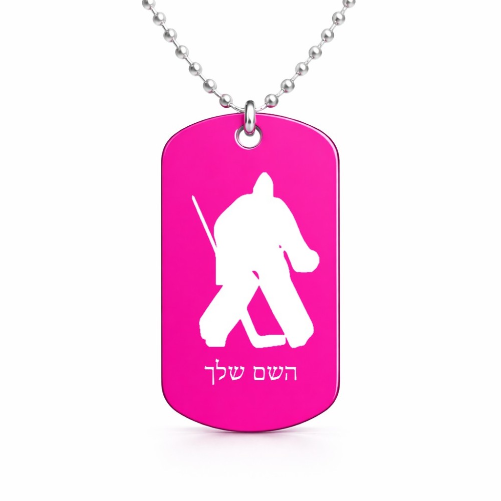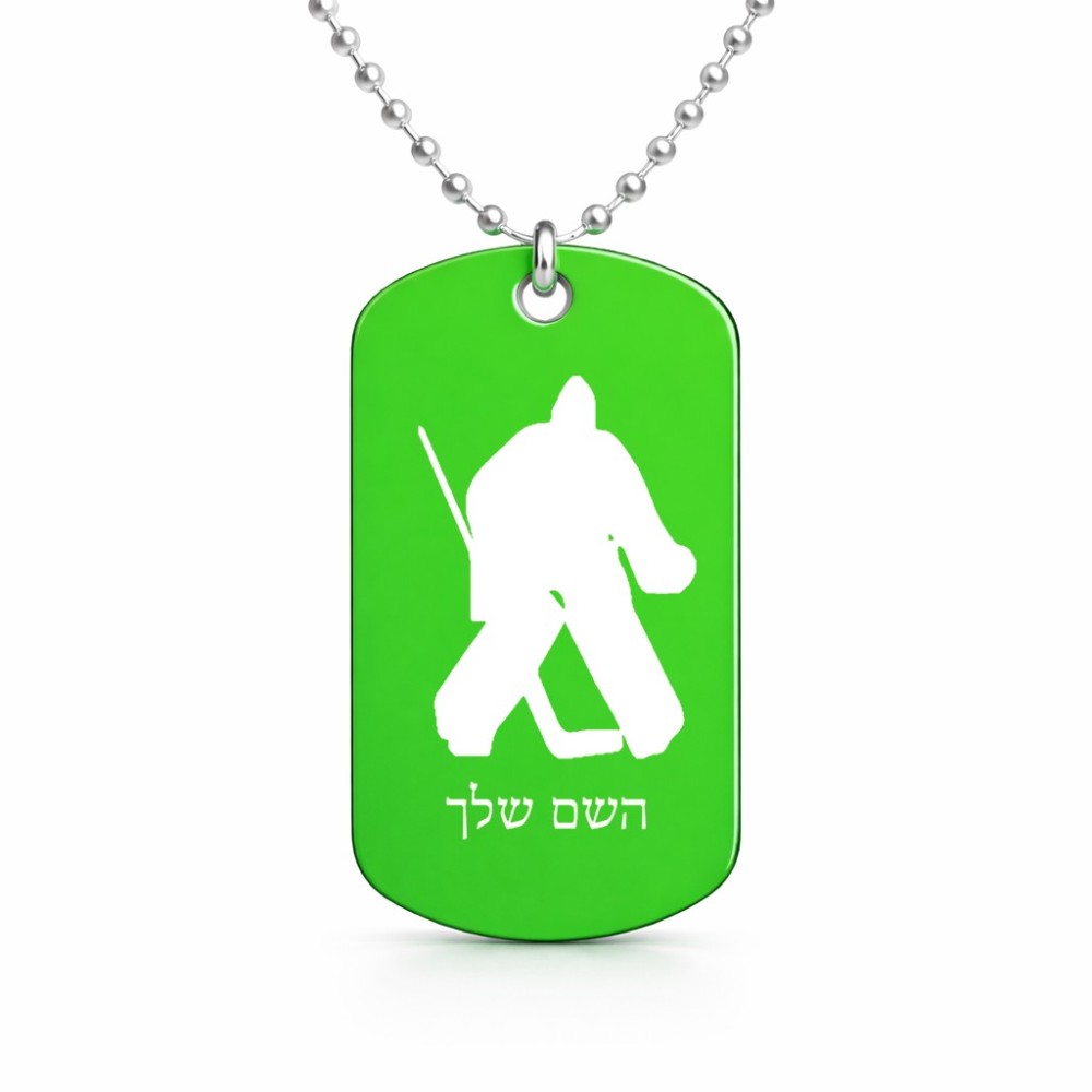 שרשרת דיסקיט מאלומיניום בעיצוב אישי עם השם שלך בעיצוב הוקי שוערים גודל הדיסקיט 2.9 × 5 ס"מ. את השם המבוקש ניתן לציין בהזמנה, אם לא צויין אנחנו ניצור קשר לבירור.