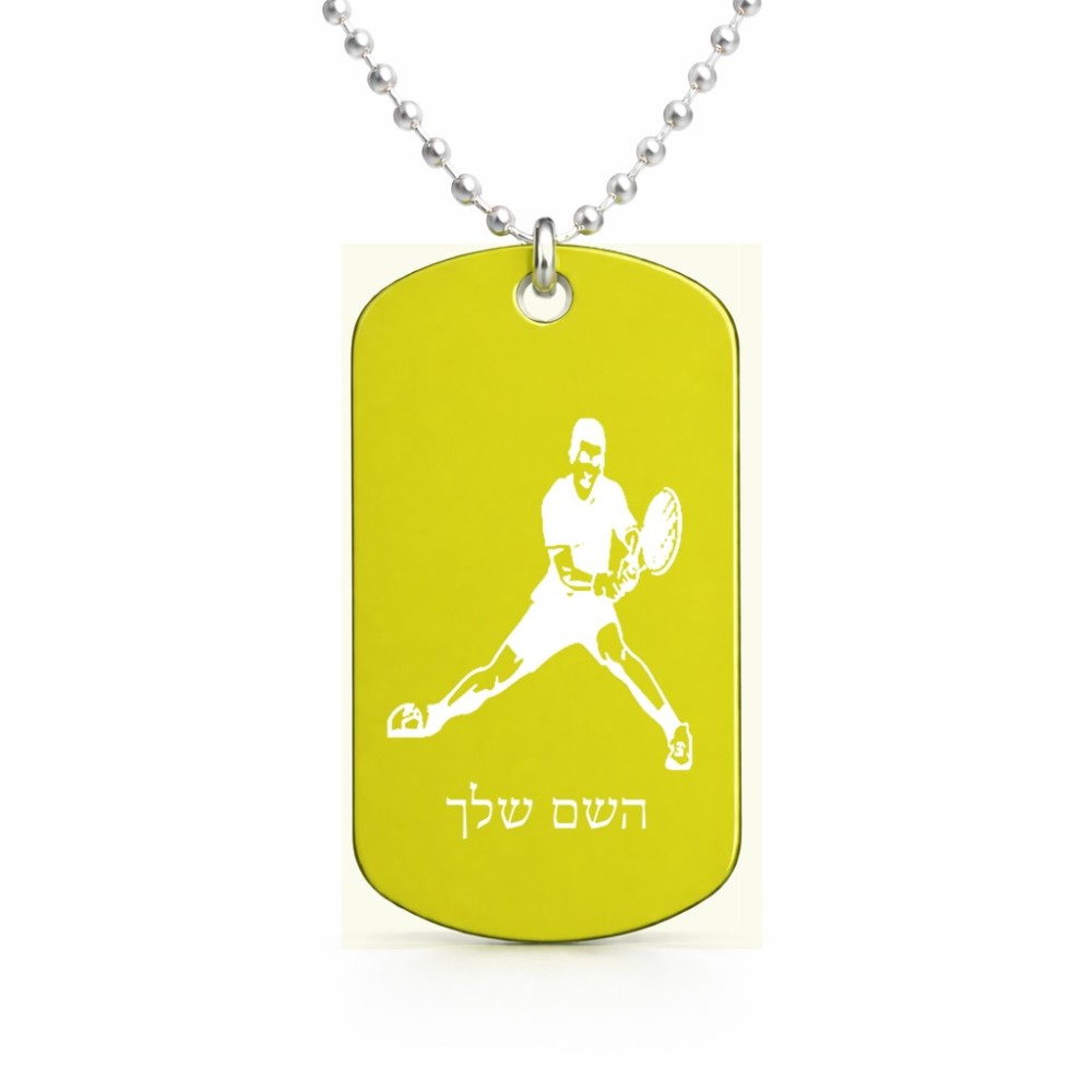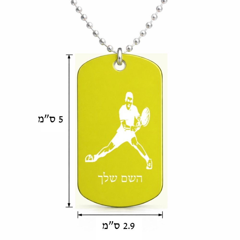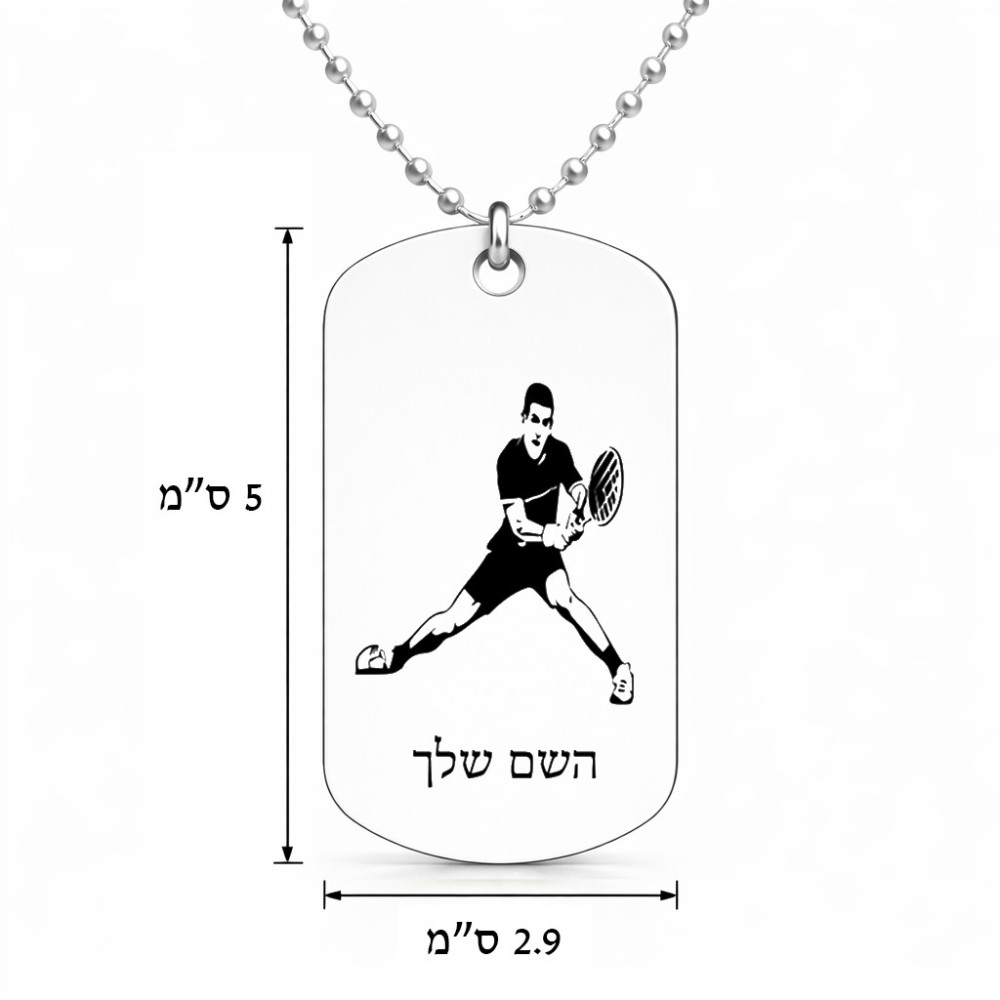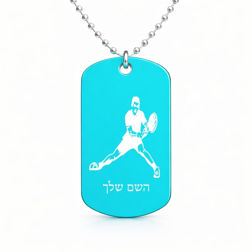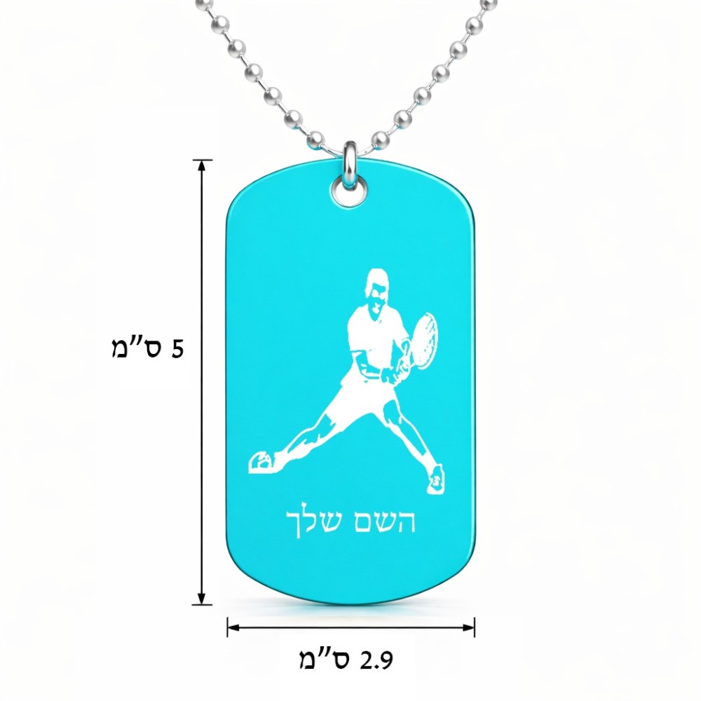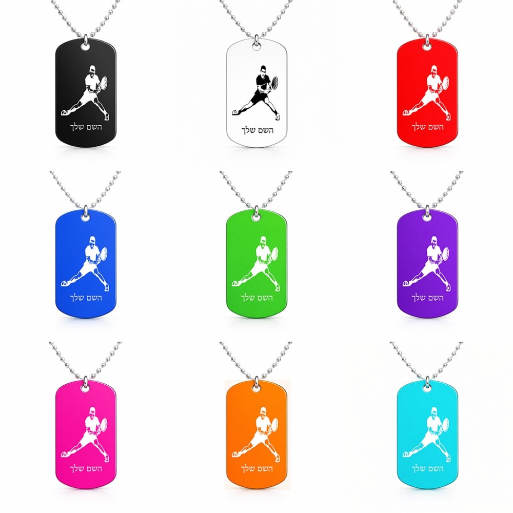שרשרת דיסקיט מאלומיניום בעיצוב אישי עם השם שלך בעיצוב שחקן טניס גודל הדיסקיט 2.9 × 5 ס"מ. את השם המבוקש ניתן לציין בהזמנה, אם לא צויין אנחנו ניצור קשר לבירור.