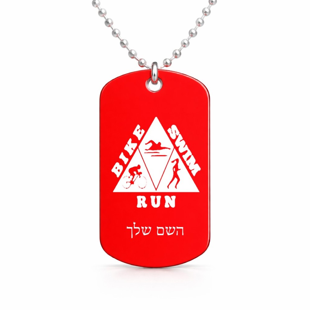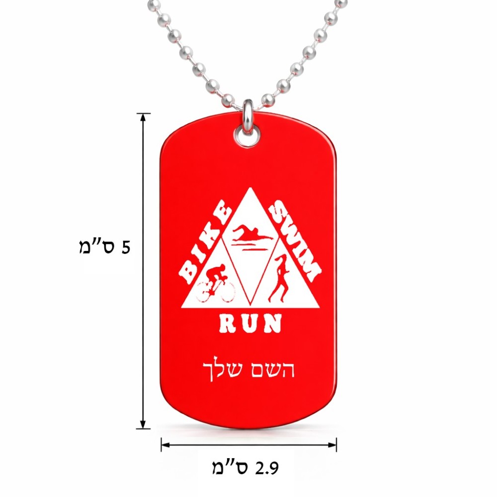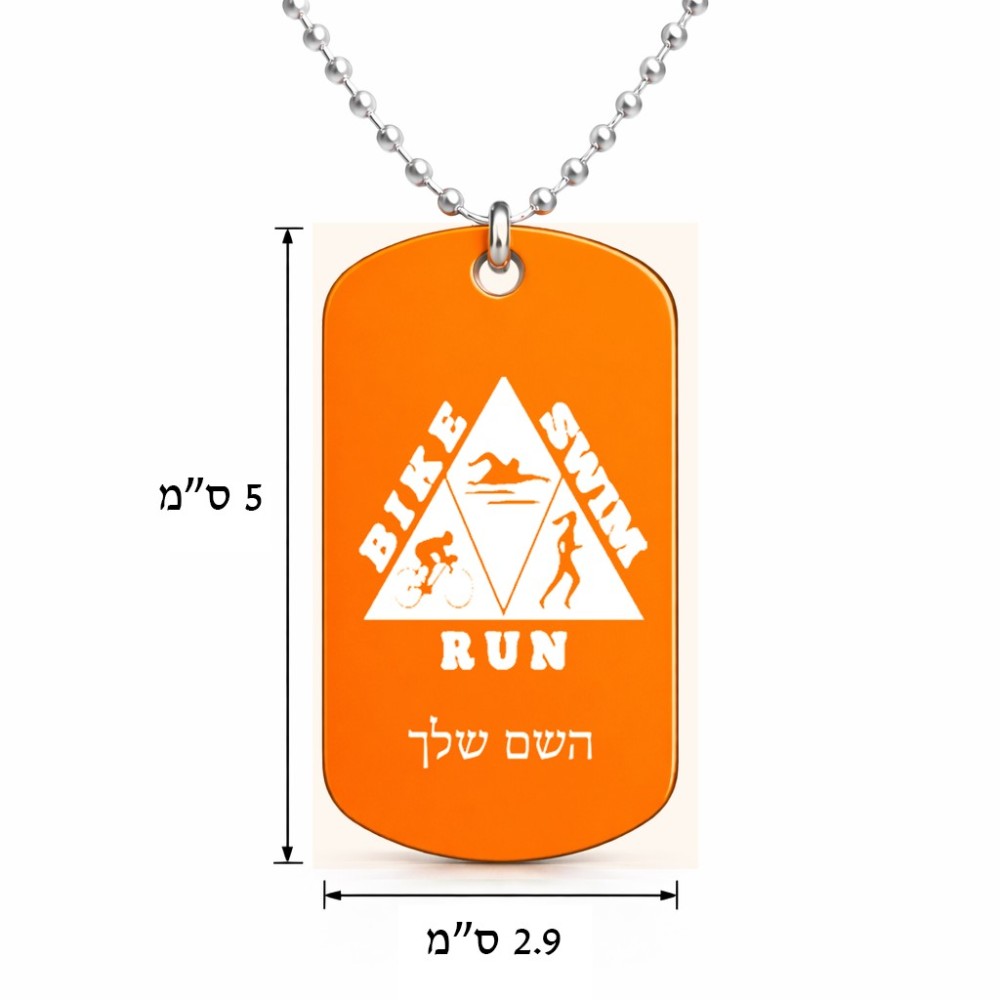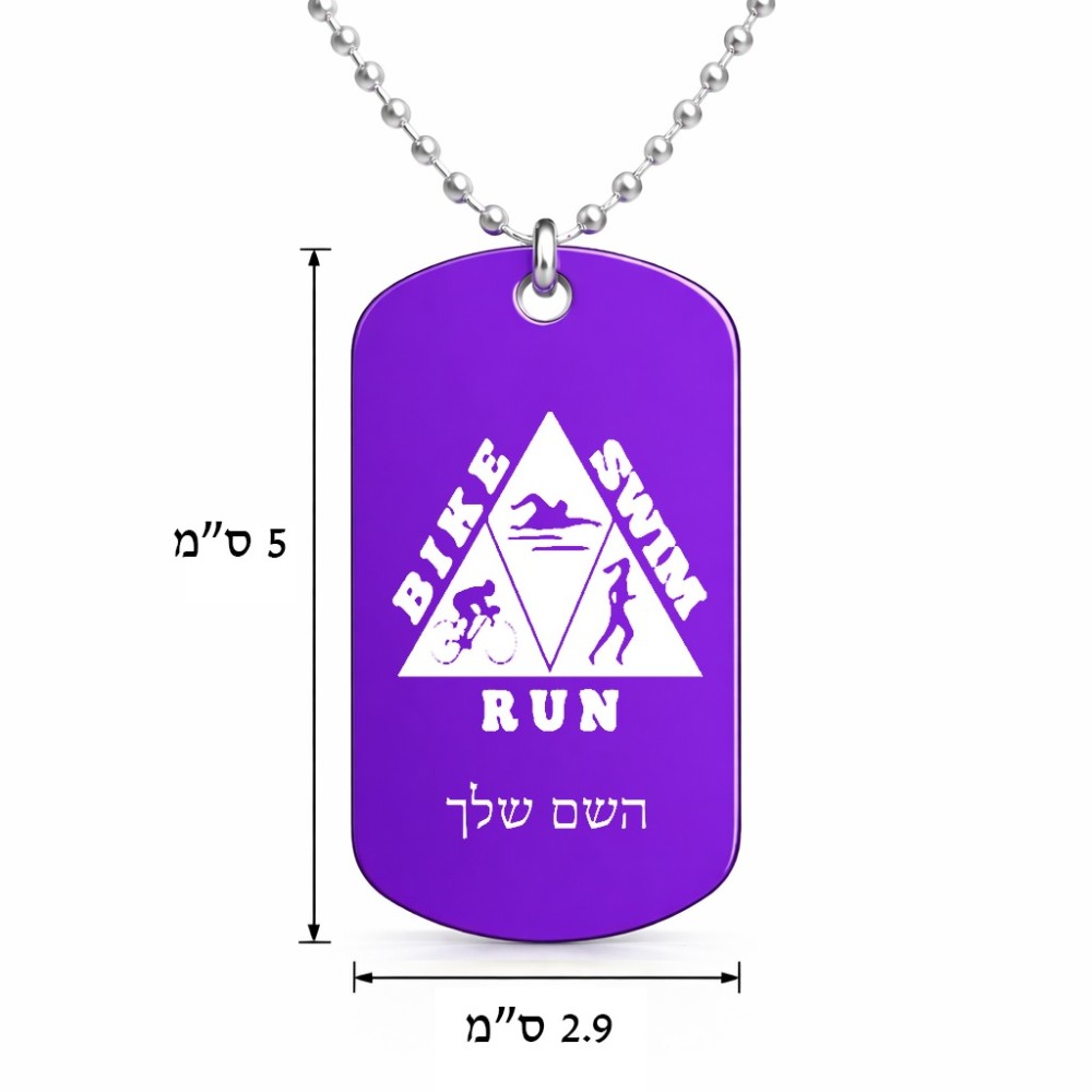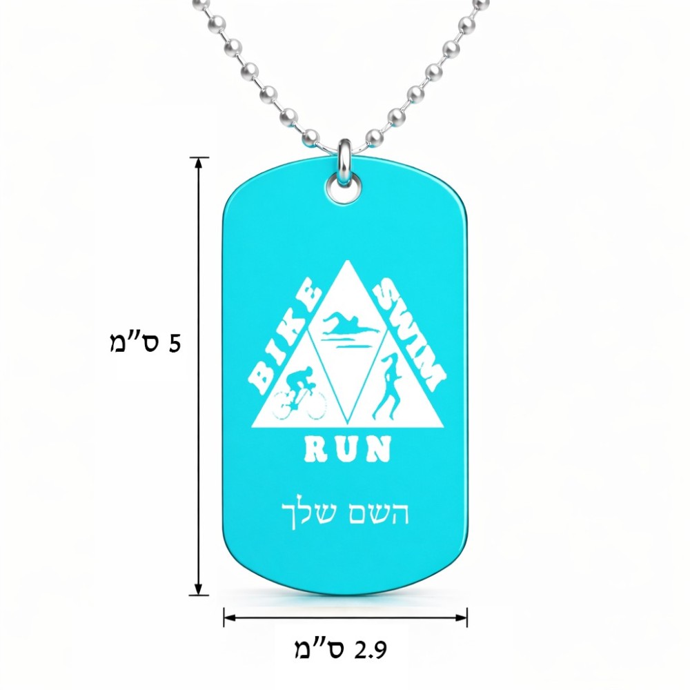 שרשרת דיסקיט מאלומיניום בעיצוב אישי עם השם שלך בעיצוב טריאתלון גודל הדיסקיט 2.9 × 5 ס"מ. את השם המבוקש ניתן לציין בהזמנה, אם לא צויין אנחנו ניצור קשר לבירור.