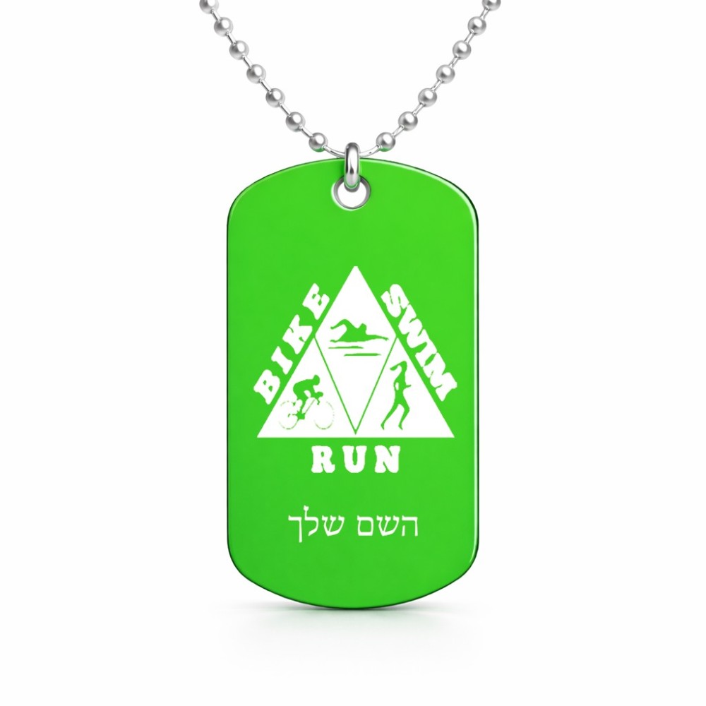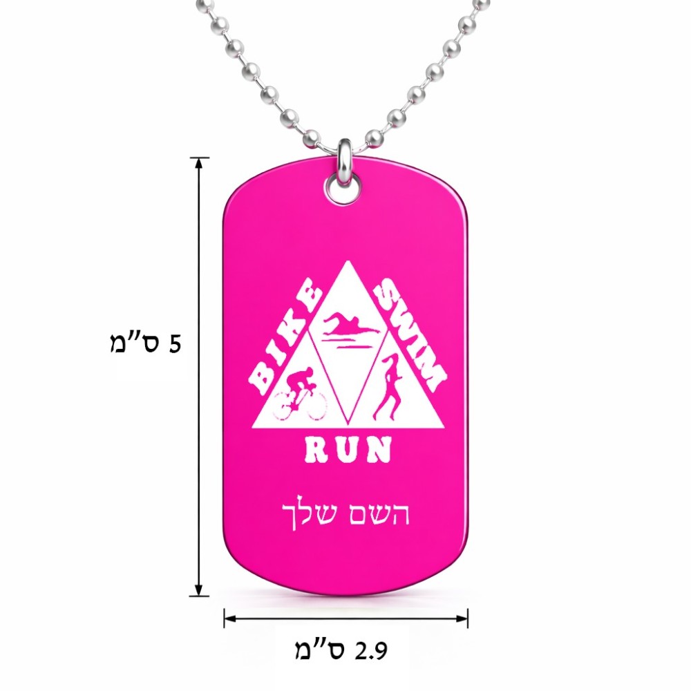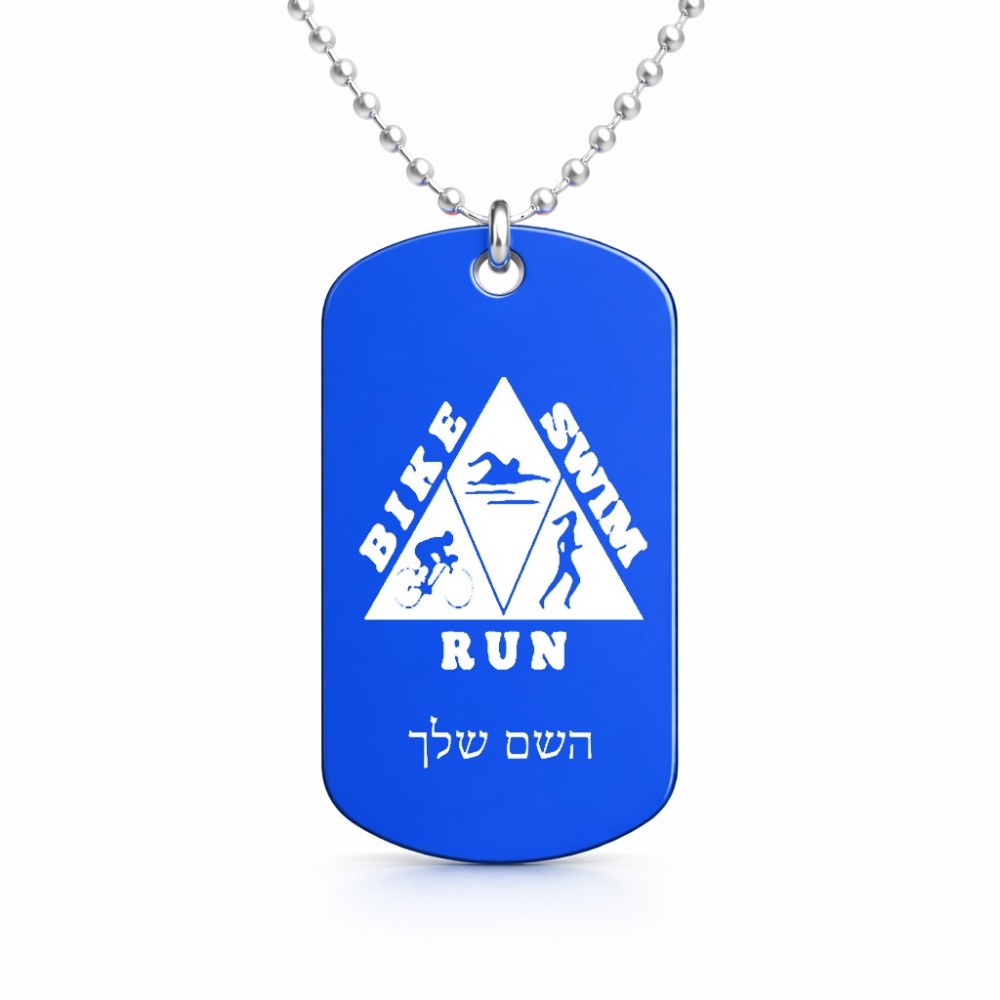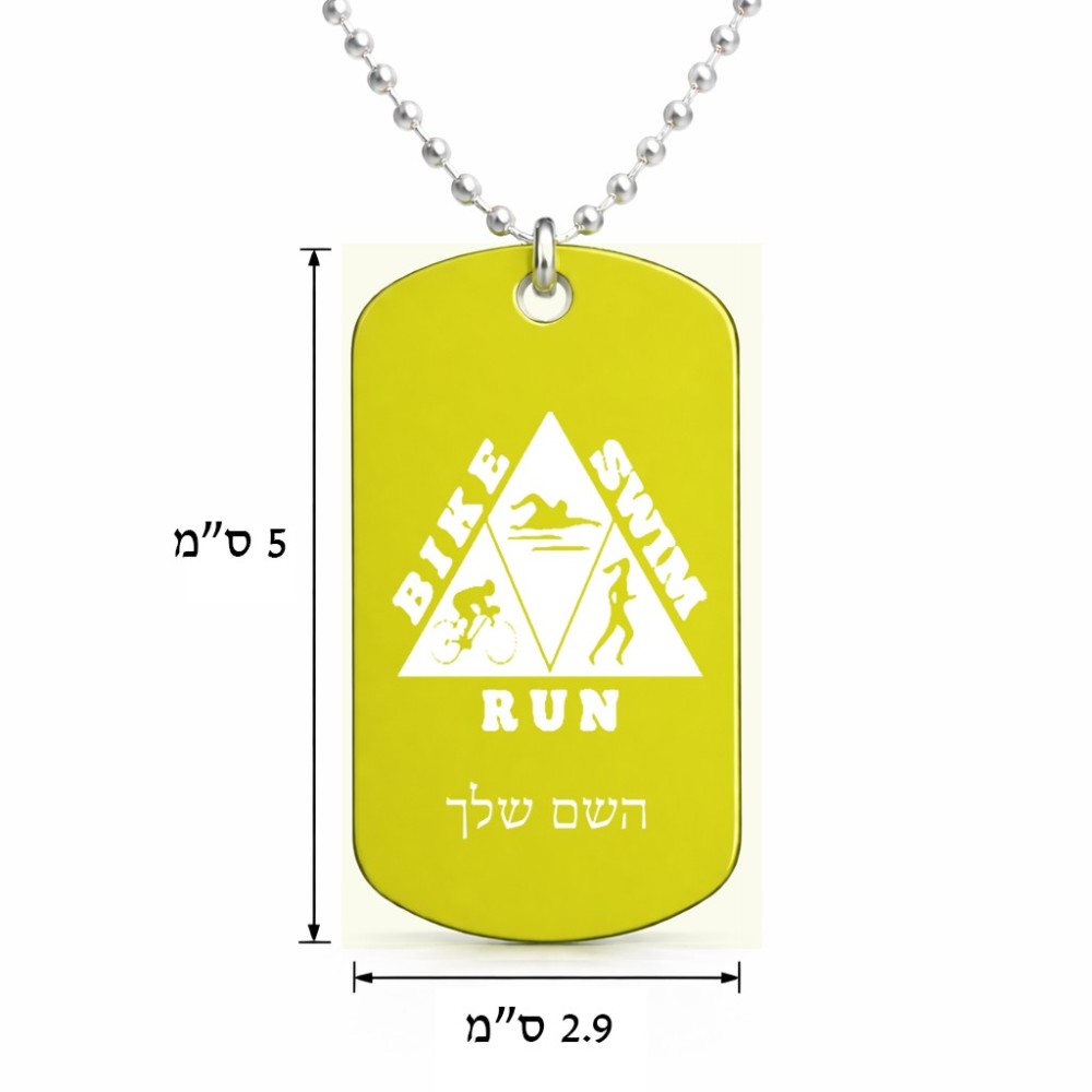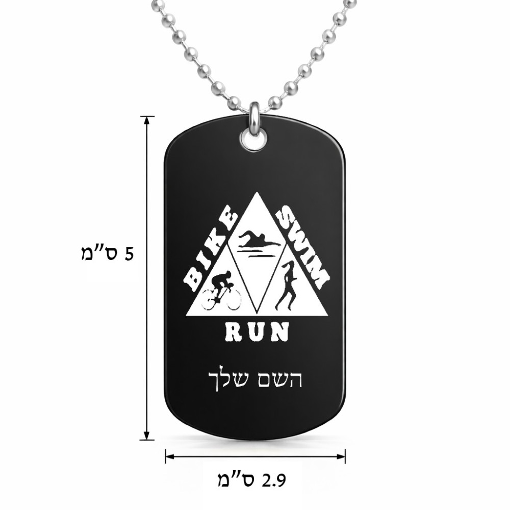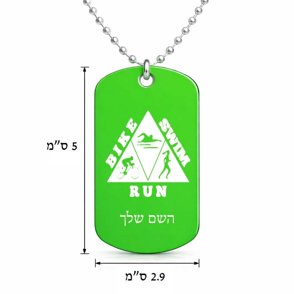שרשרת דיסקיט מאלומיניום בעיצוב אישי עם השם שלך בעיצוב טריאתלון גודל הדיסקיט 2.9 × 5 ס"מ. את השם המבוקש ניתן לציין בהזמנה, אם לא צויין אנחנו ניצור קשר לבירור.