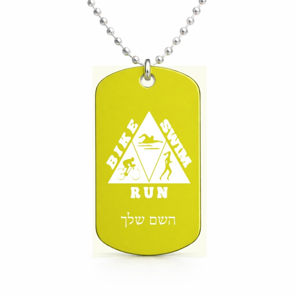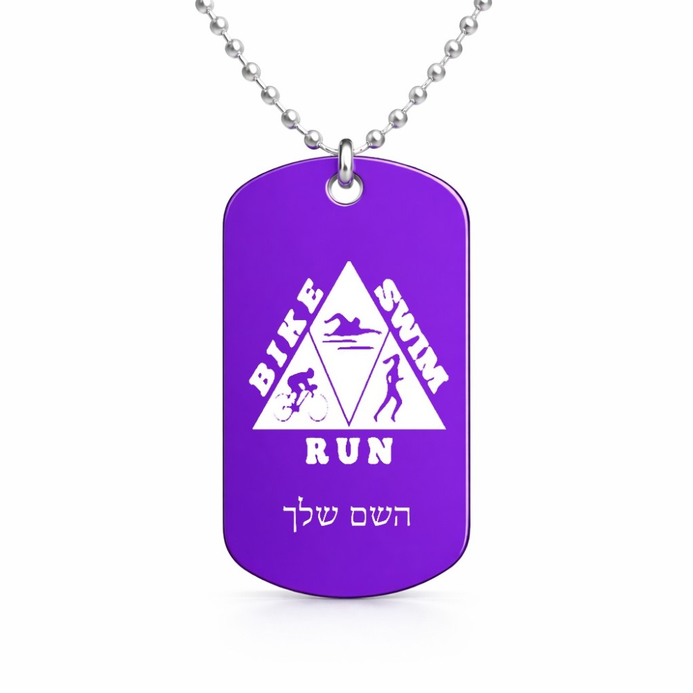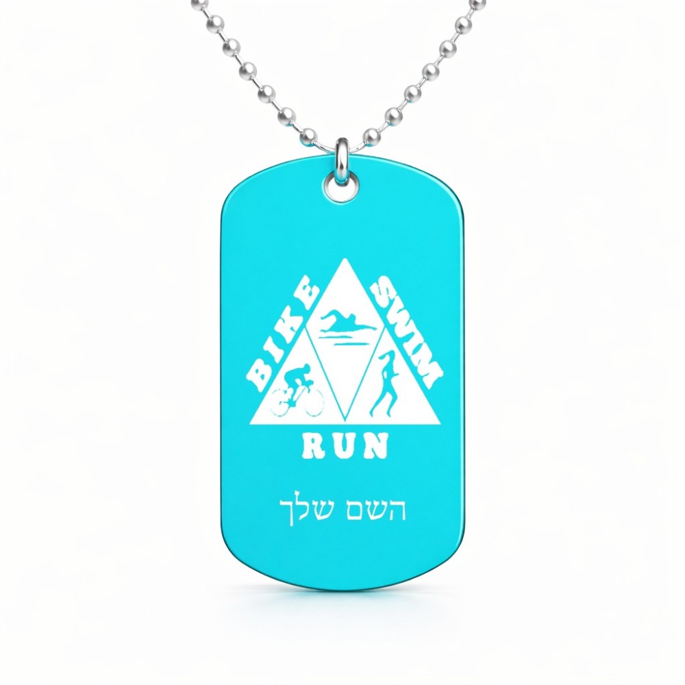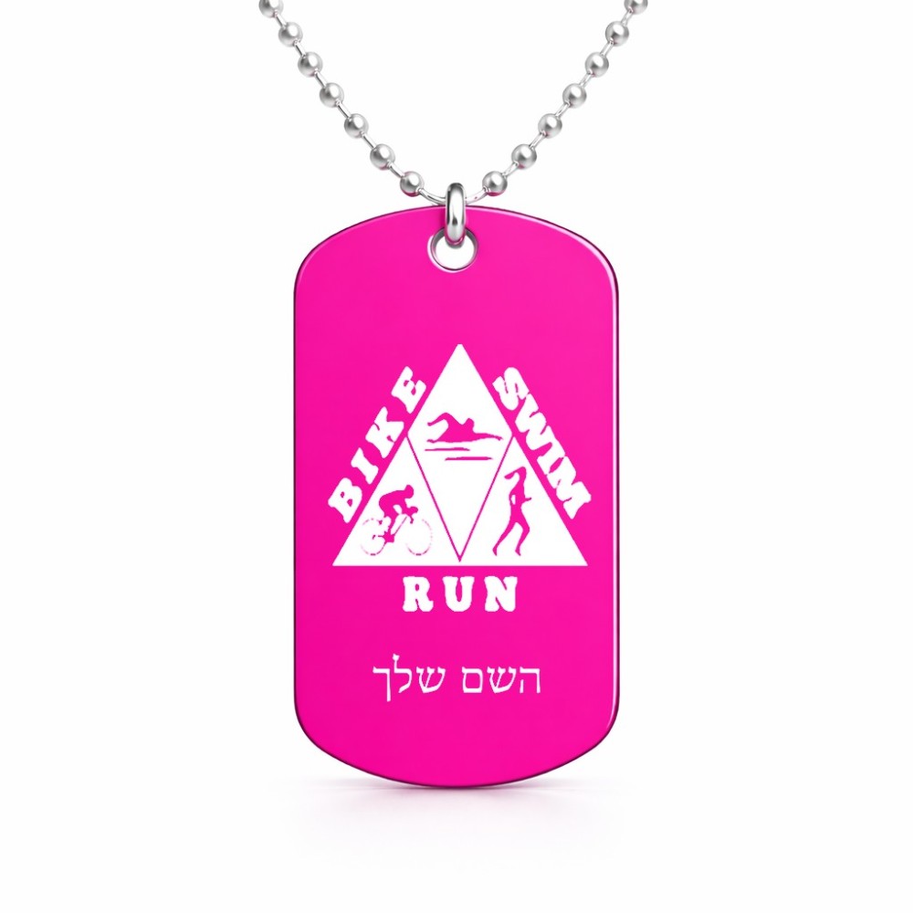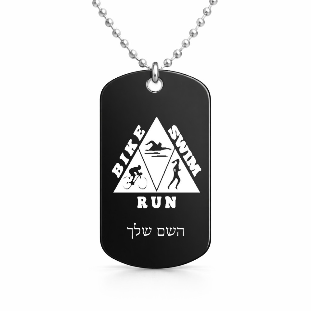 שרשרת דיסקיט מאלומיניום בעיצוב אישי עם השם שלך בעיצוב טריאתלון גודל הדיסקיט 2.9 × 5 ס"מ. את השם המבוקש ניתן לציין בהזמנה, אם לא צויין אנחנו ניצור קשר לבירור.