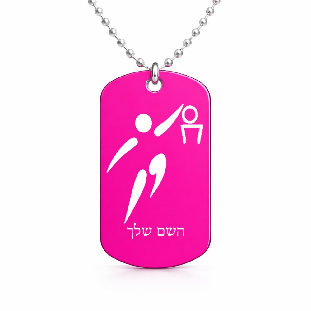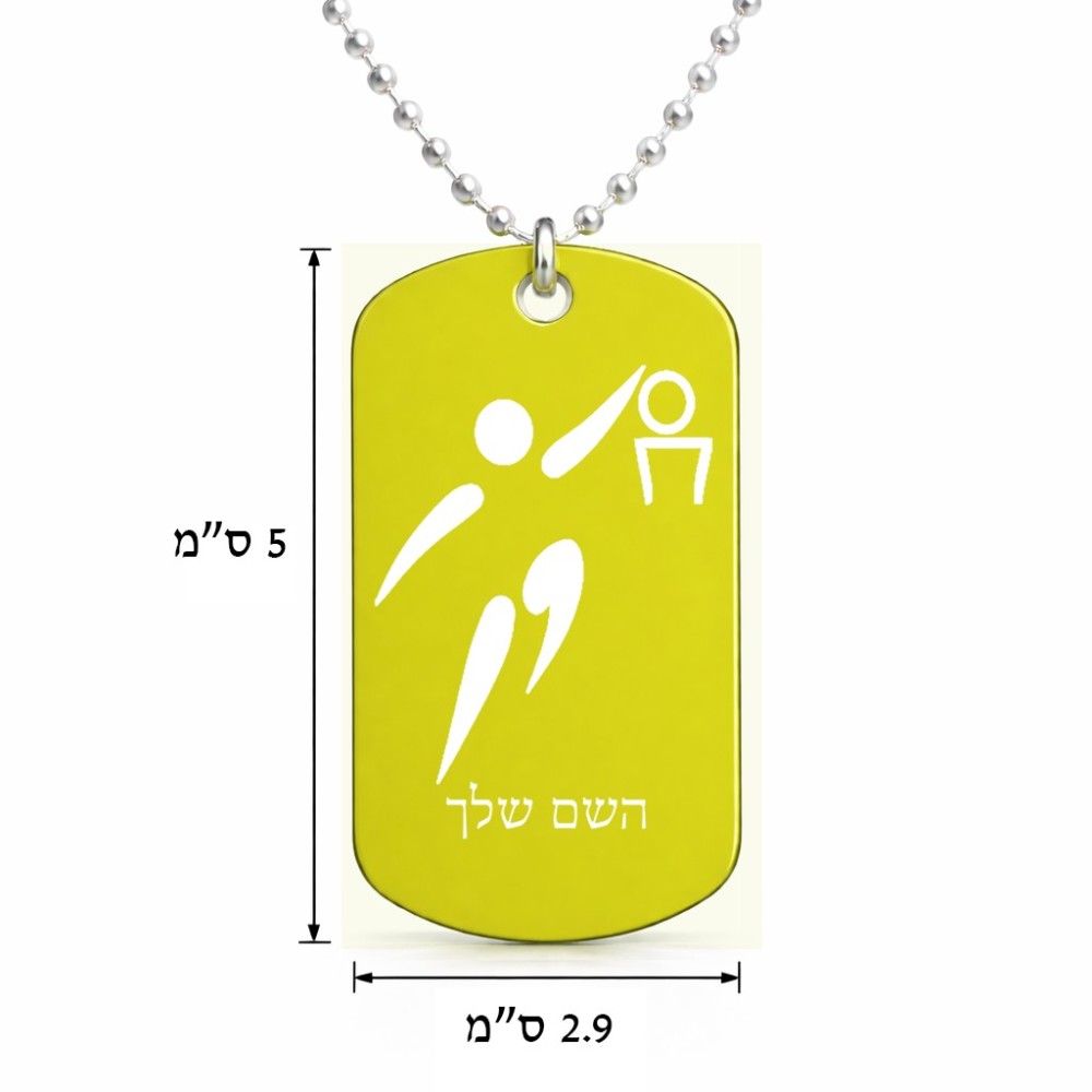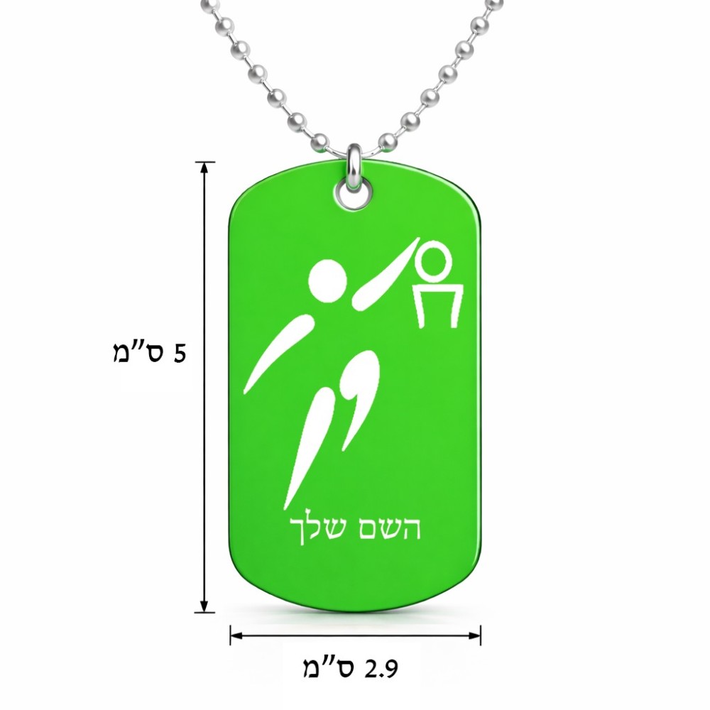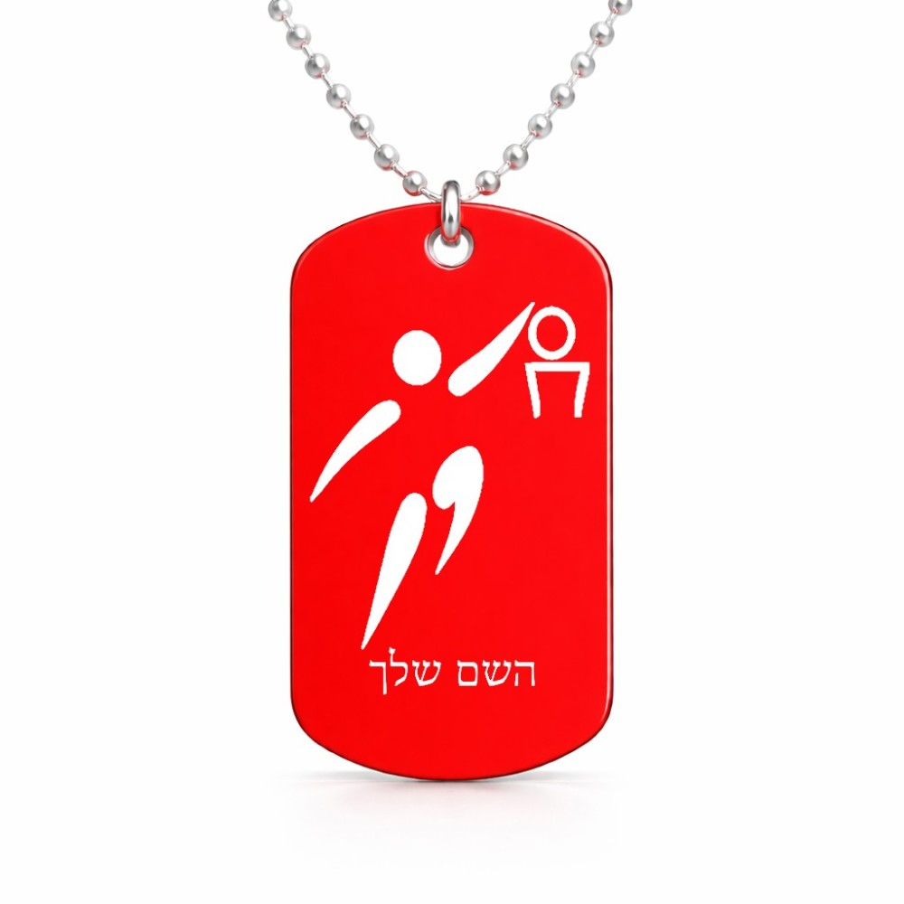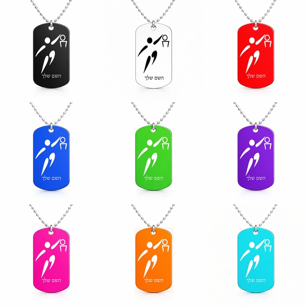 שרשרת דיסקיט מאלומיניום בעיצוב אישי עם השם שלך בעיצוב כדורסל אולימפי גודל הדיסקיט 2.9 × 5 ס"מ. את השם המבוקש ניתן לציין בהזמנה, אם לא צויין אנחנו ניצור קשר לבירור.