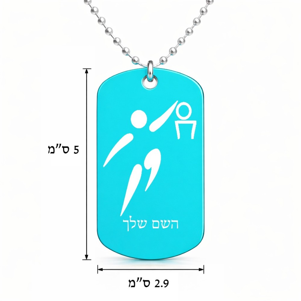 שרשרת דיסקיט מאלומיניום בעיצוב אישי עם השם שלך בעיצוב כדורסל אולימפי גודל הדיסקיט 2.9 × 5 ס"מ