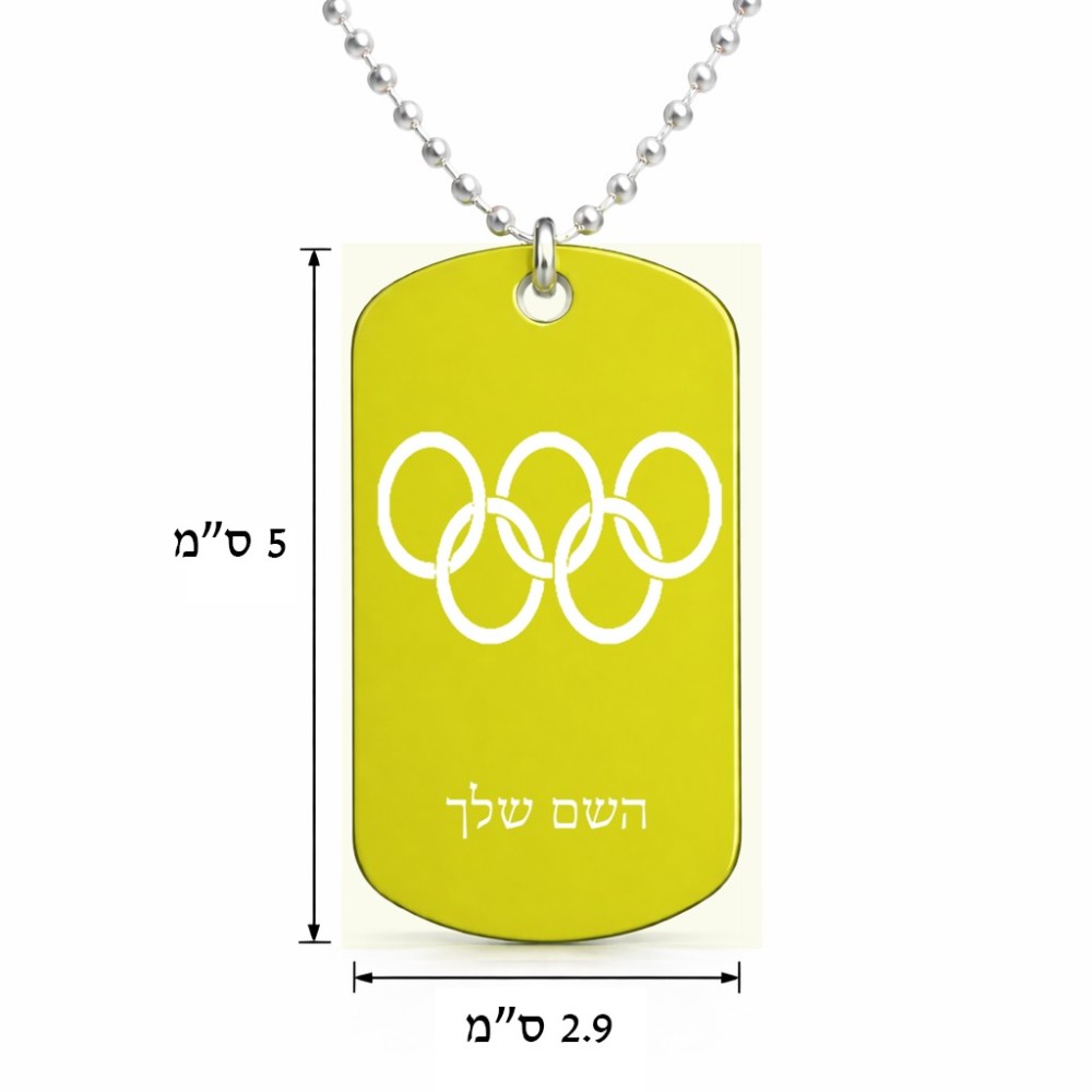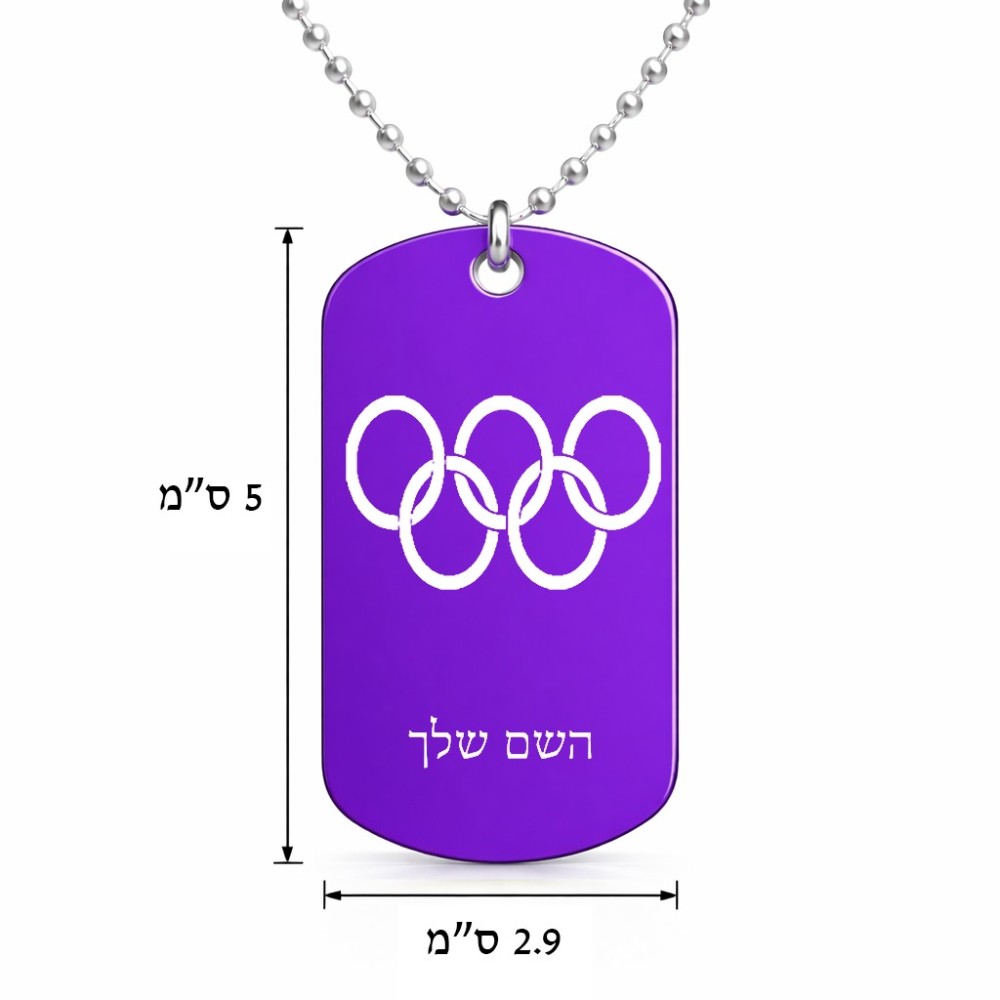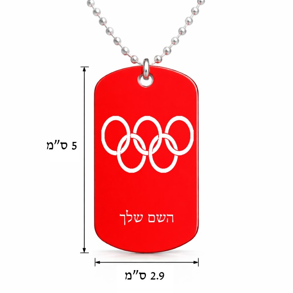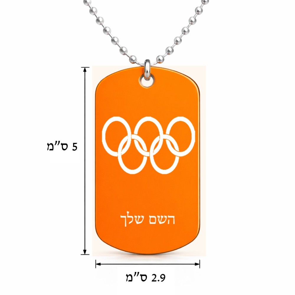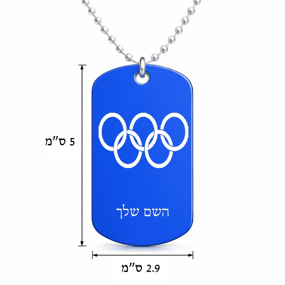 שרשרת דיסקיט מאלומיניום בעיצוב אישי עם השם שלך בעיצוב אולימפי גודל הדיסקיט 2.9 × 5 ס"מ. את השם המבוקש ניתן לציין בהזמנה, אם לא צויין אנחנו ניצור קשר לבירור.