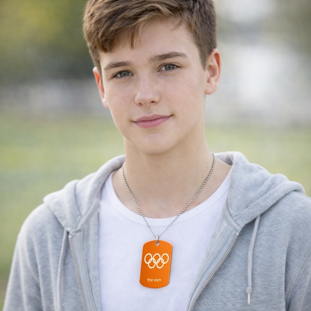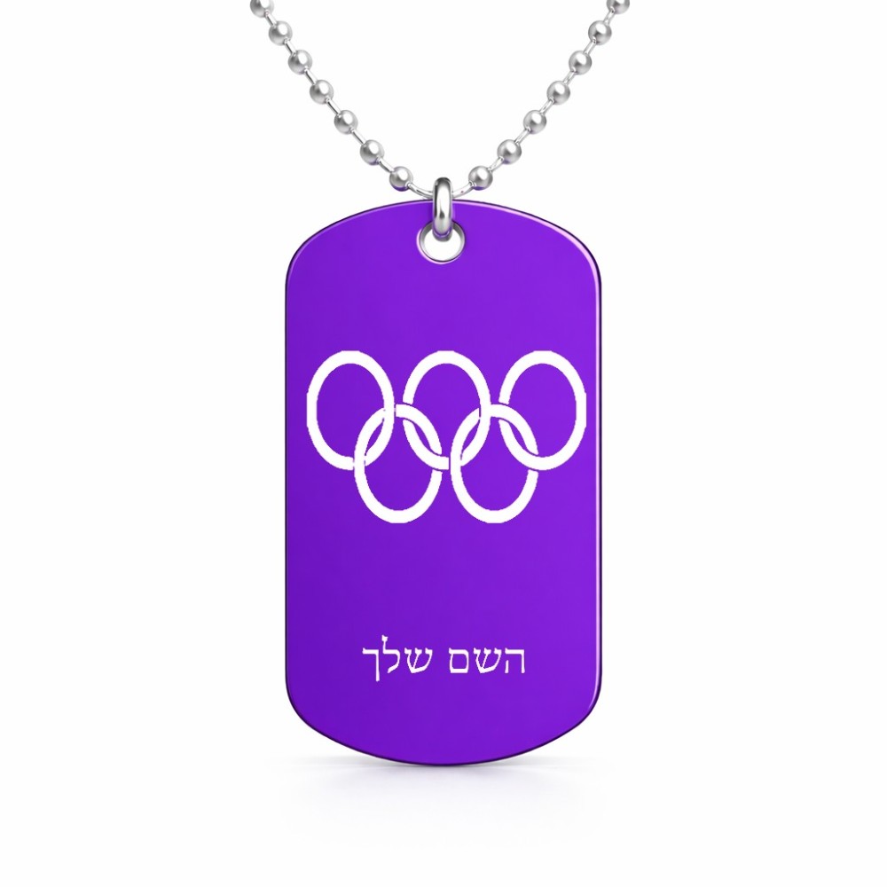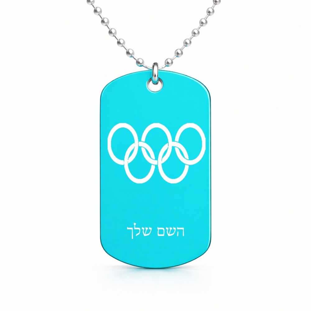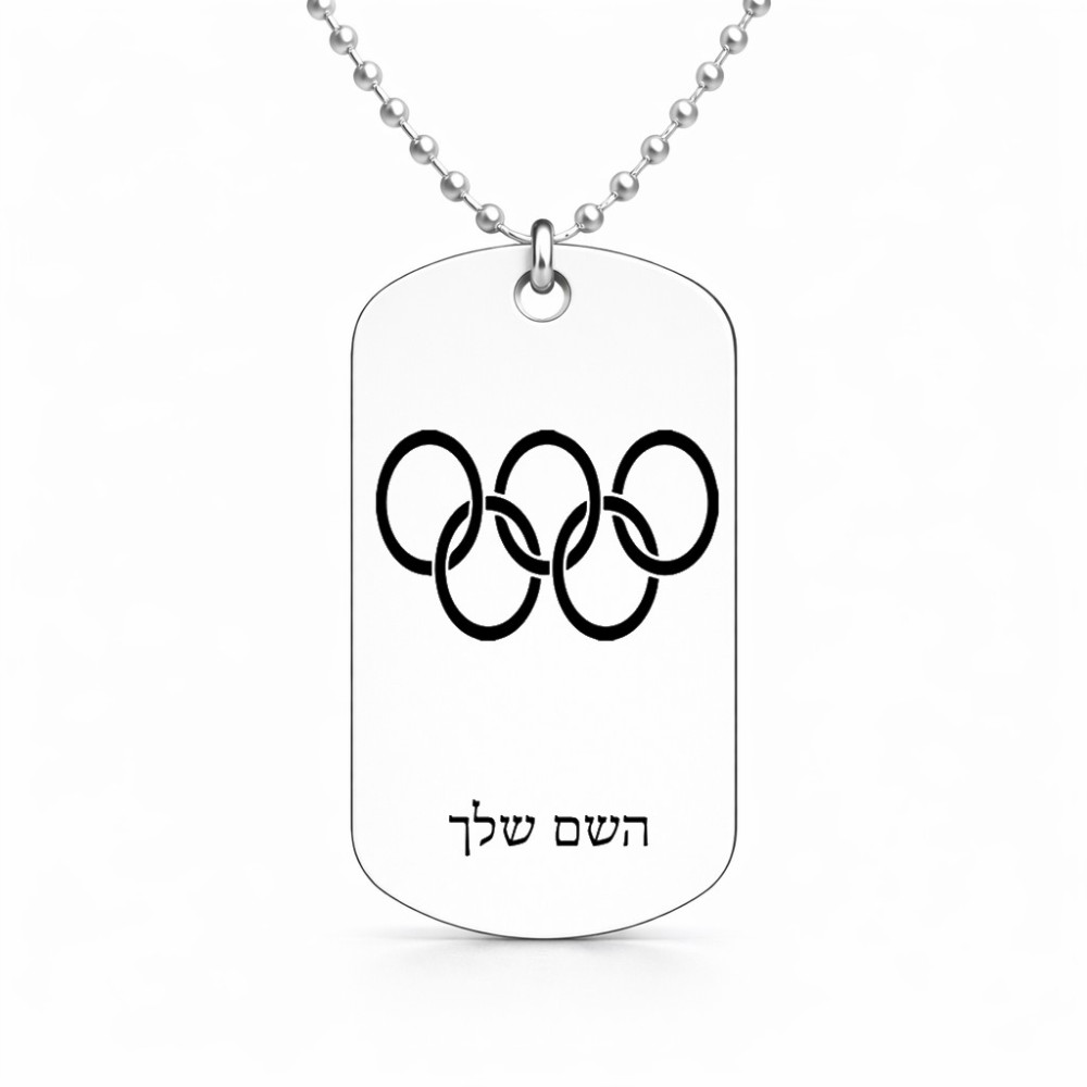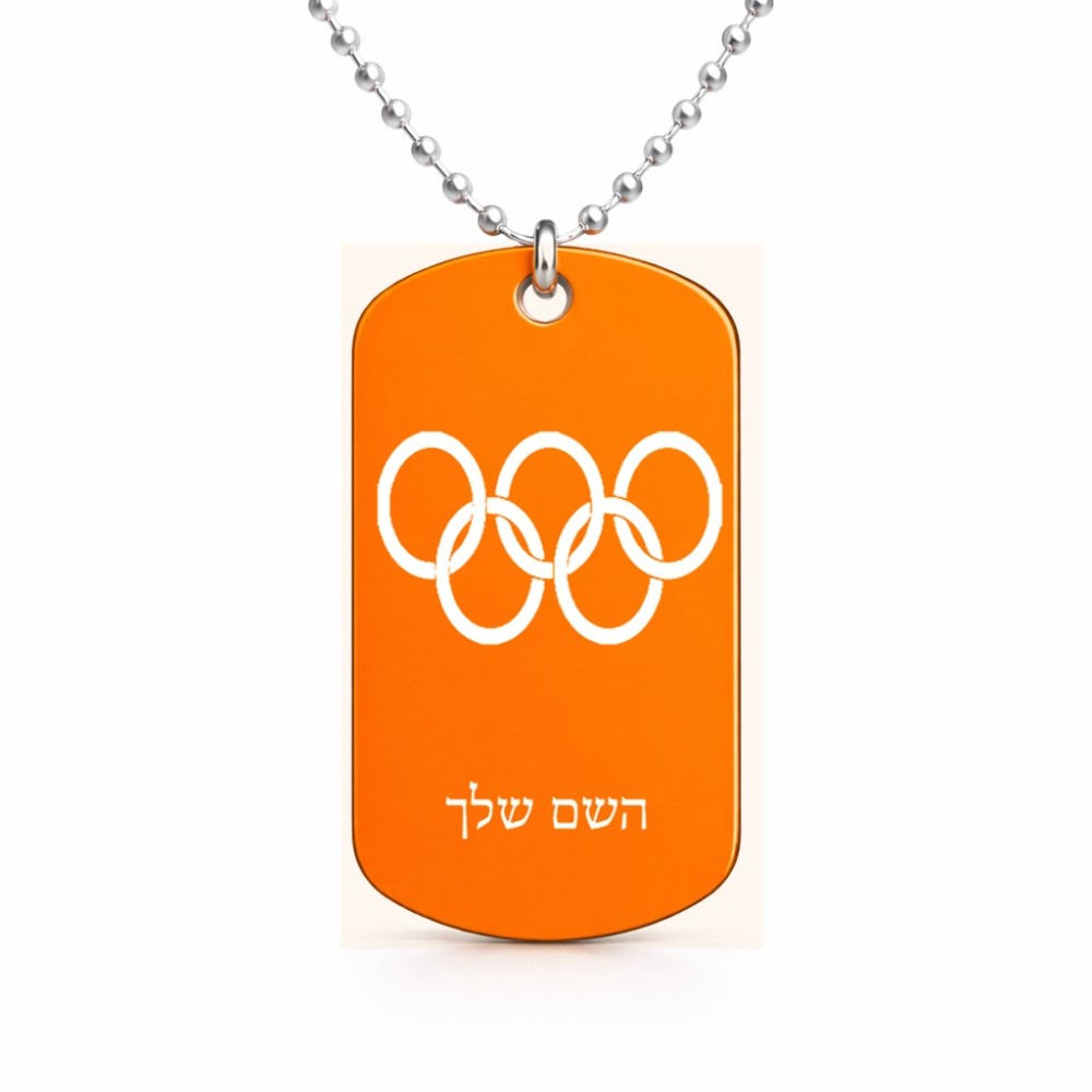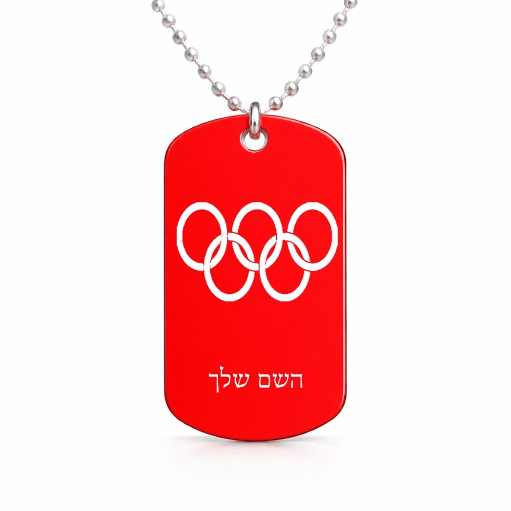 שרשרת דיסקיט מאלומיניום בעיצוב אישי עם השם שלך בעיצוב אולימפי גודל הדיסקיט 2.9 × 5 ס"מ. את השם המבוקש ניתן לציין בהזמנה, אם לא צויין אנחנו ניצור קשר לבירור.