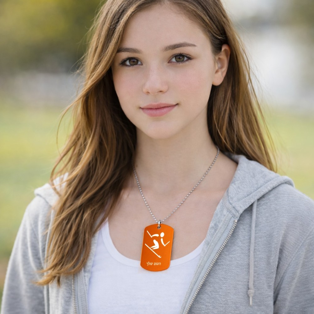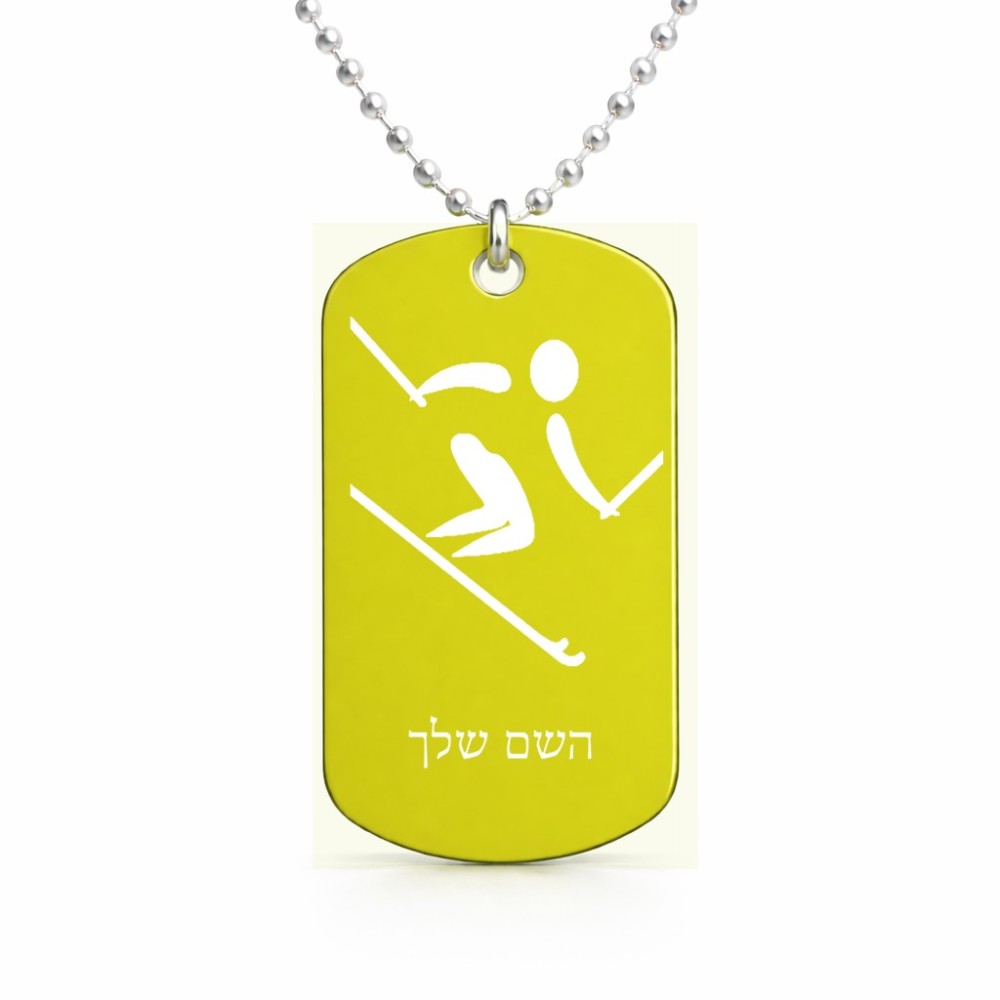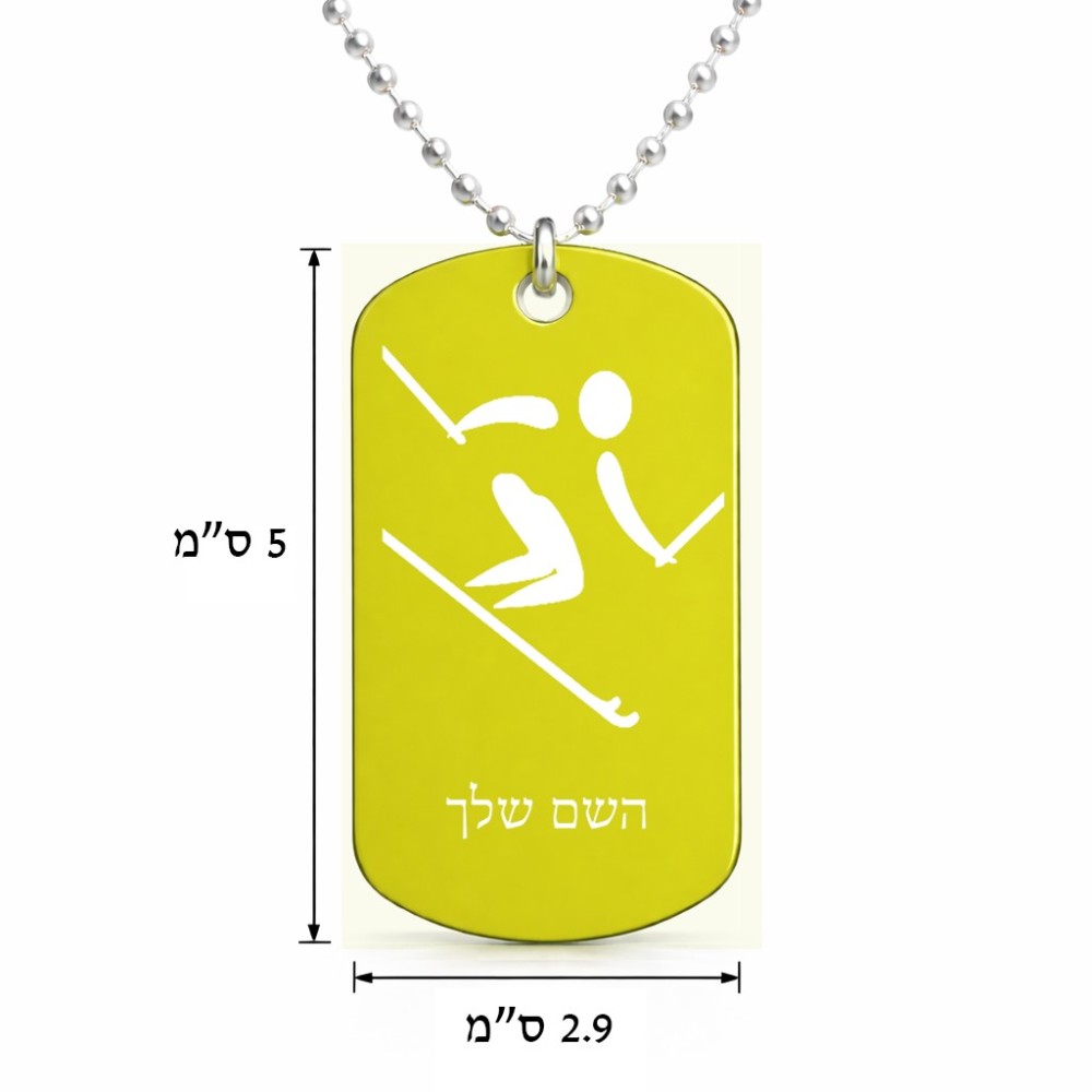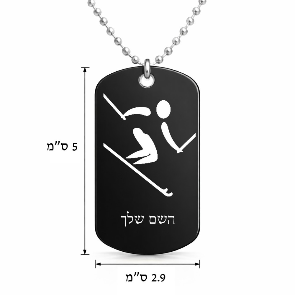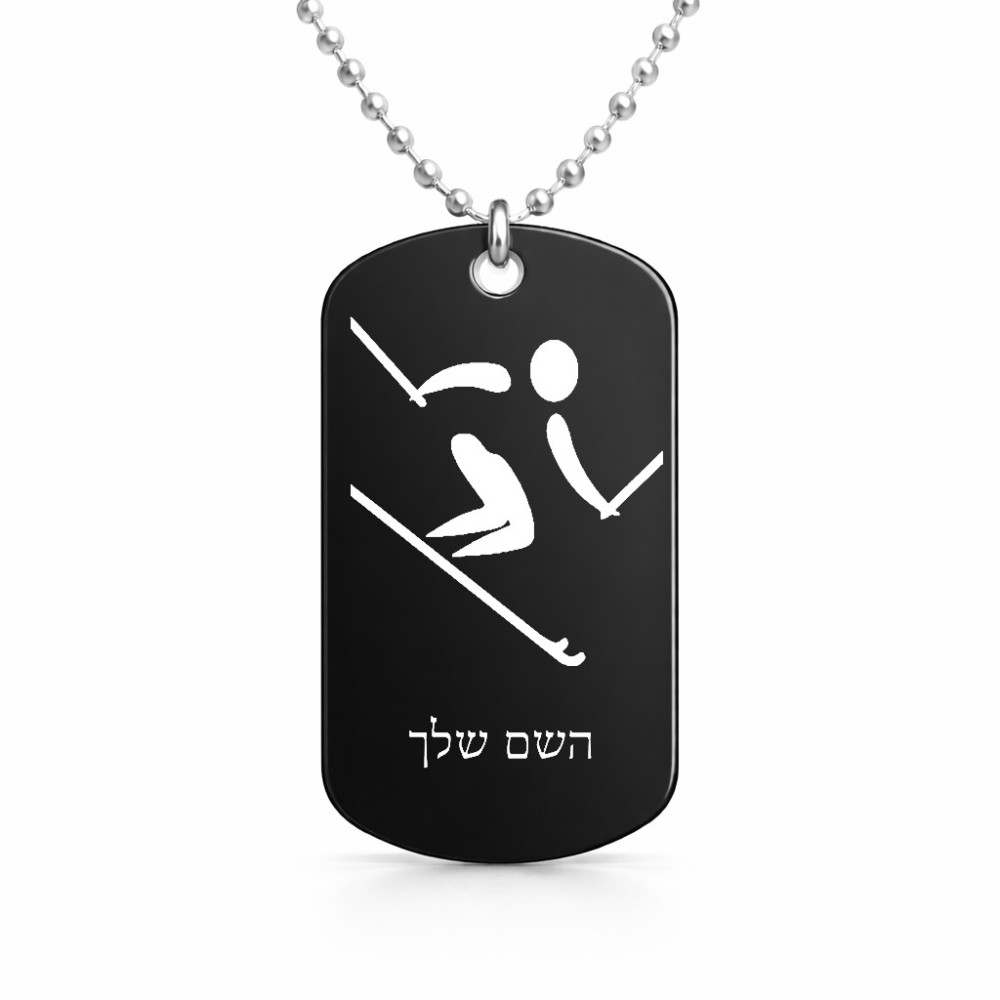 שרשרת דיסקיט מאלומיניום בעיצוב אישי עם השם שלך בעיצוב סקי אולימפי גודל הדיסקיט 2.9 × 5 ס"מ. את השם המבוקש ניתן לציין בהזמנה, אם לא צויין אנחנו ניצור קשר לבירור.