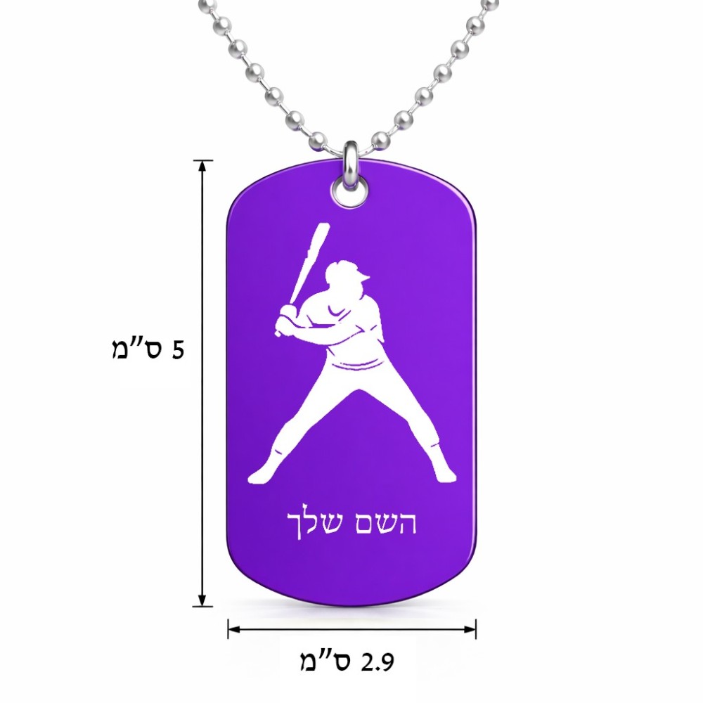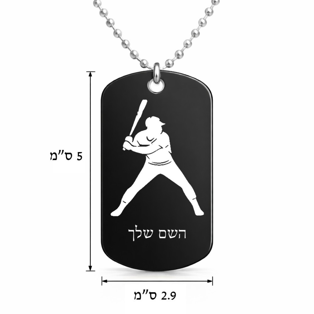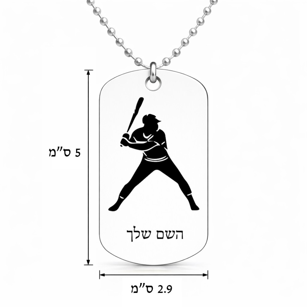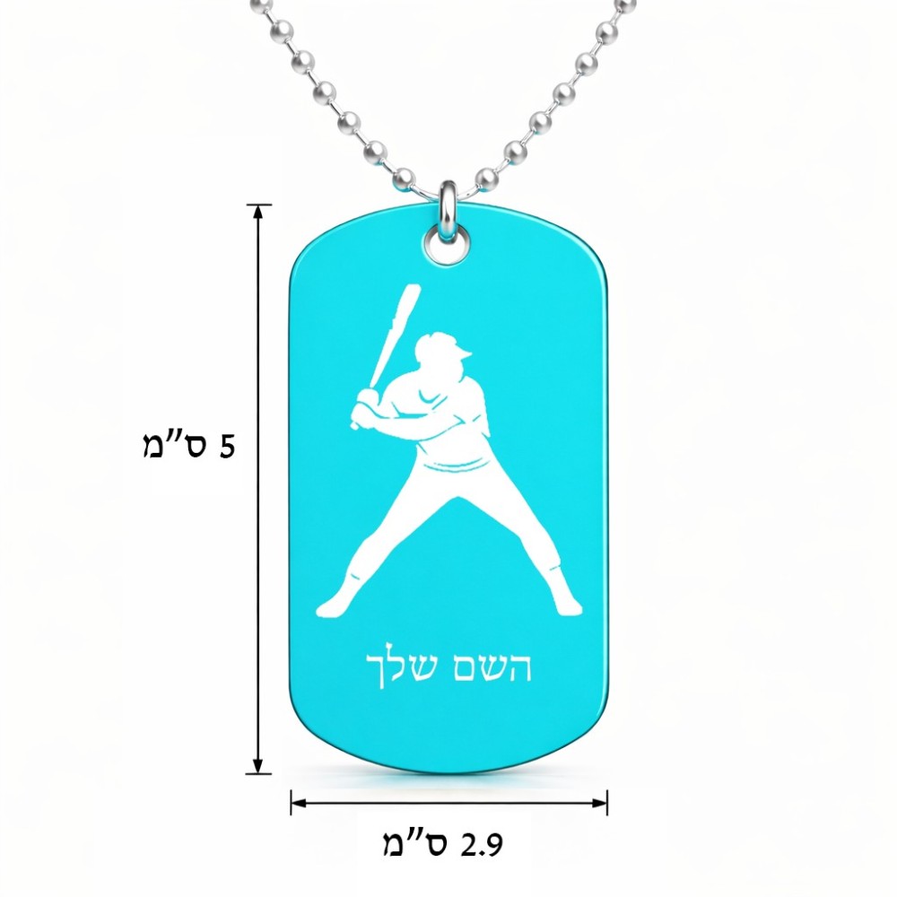 שרשרת דיסקיט מאלומיניום בעיצוב אישי עם השם שלך בעיצוב שחקן בייסבול גודל הדיסקיט 2.9 × 5 ס"מ. את השם המבוקש ניתן לציין בהזמנה, אם לא צויין אנחנו ניצור קשר לבירור.