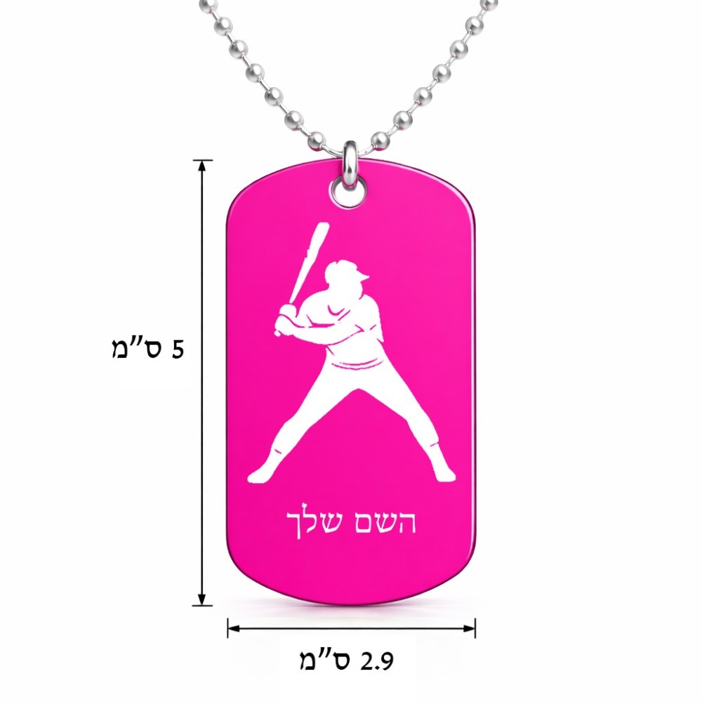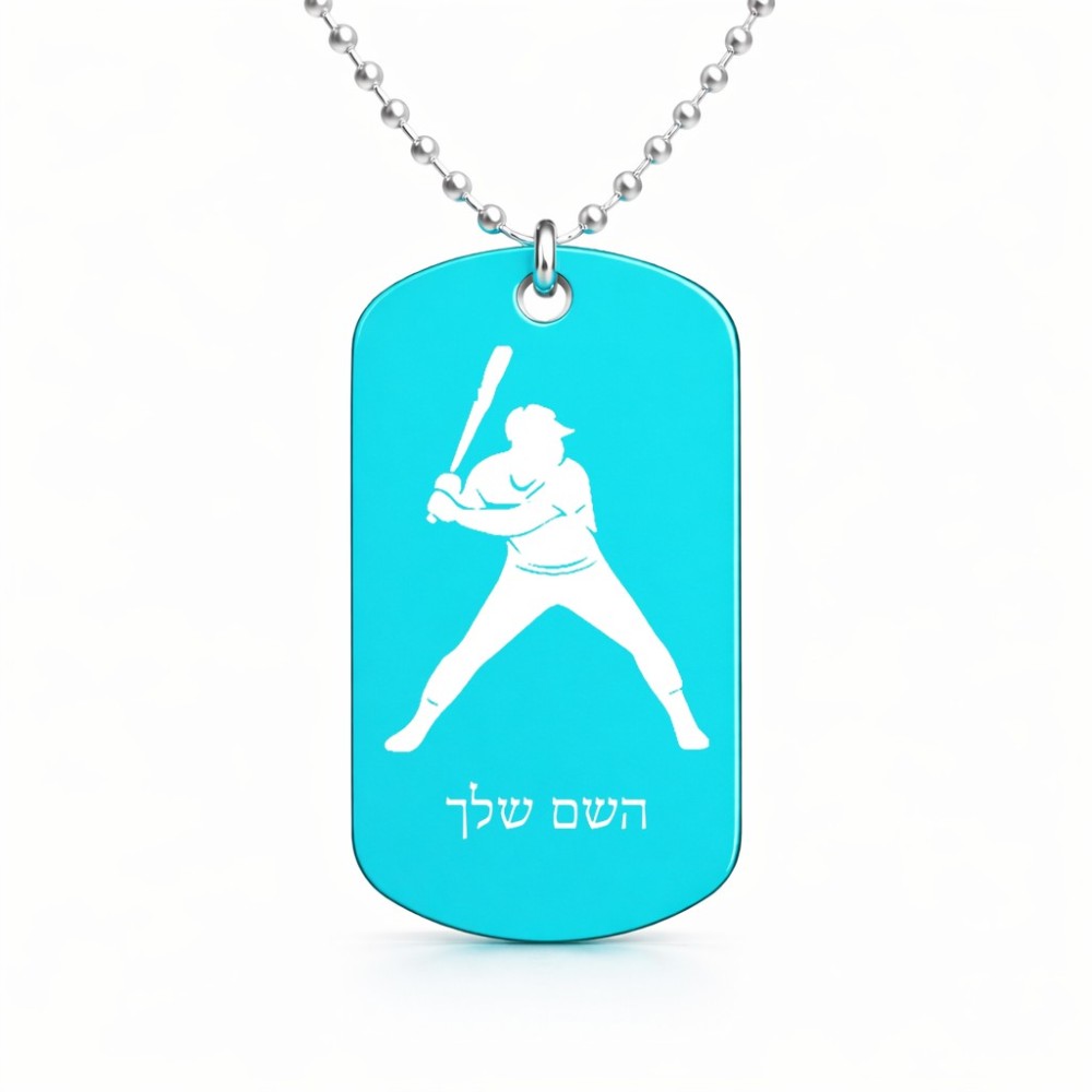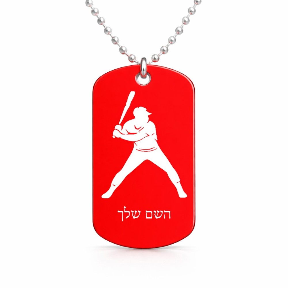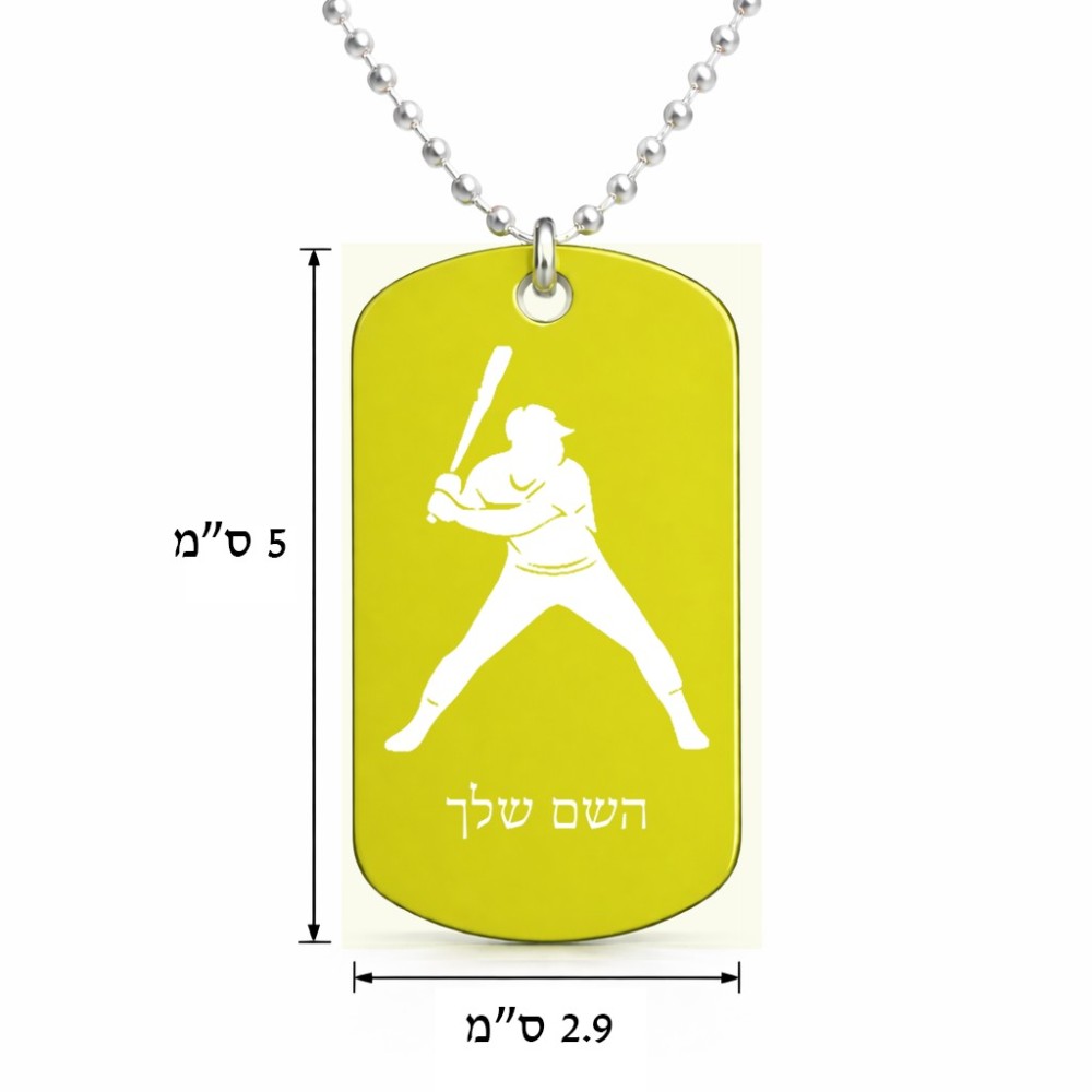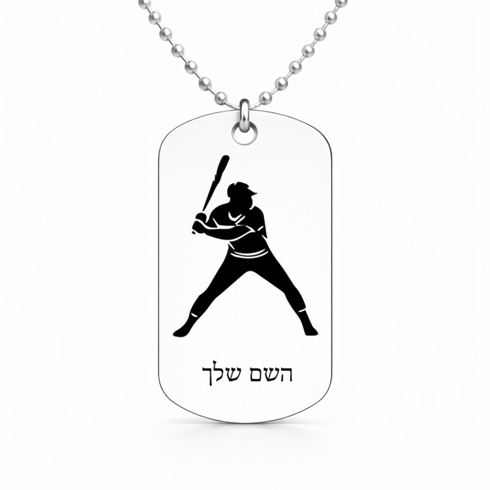 שרשרת דיסקיט מאלומיניום בעיצוב אישי עם השם שלך בעיצוב שחקן בייסבול גודל הדיסקיט 2.9 × 5 ס"מ. את השם המבוקש ניתן לציין בהזמנה, אם לא צויין אנחנו ניצור קשר לבירור.