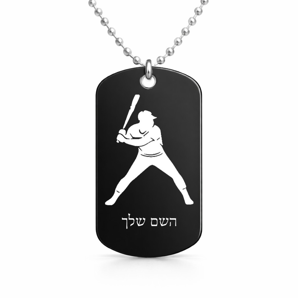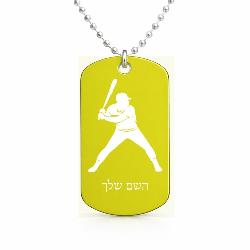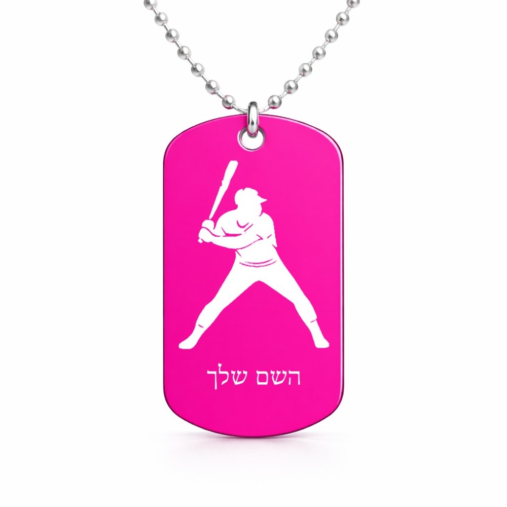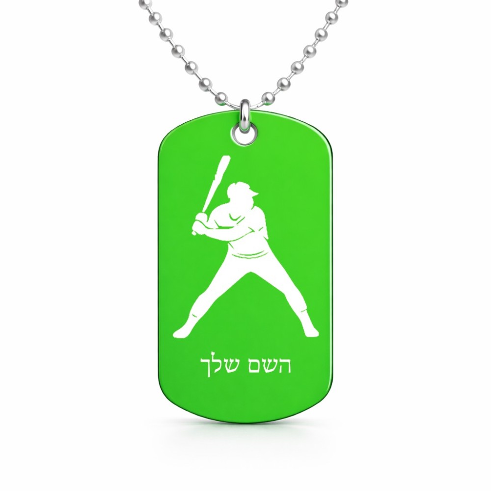 שרשרת דיסקיט מאלומיניום בעיצוב אישי עם השם שלך בעיצוב שחקן בייסבול גודל הדיסקיט 2.9 × 5 ס"מ. את השם המבוקש ניתן לציין בהזמנה, אם לא צויין אנחנו ניצור קשר לבירור.