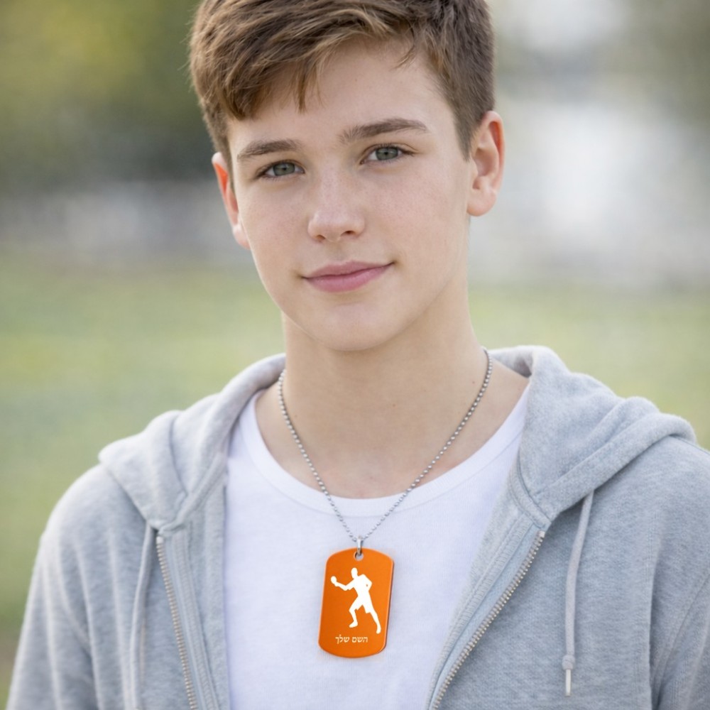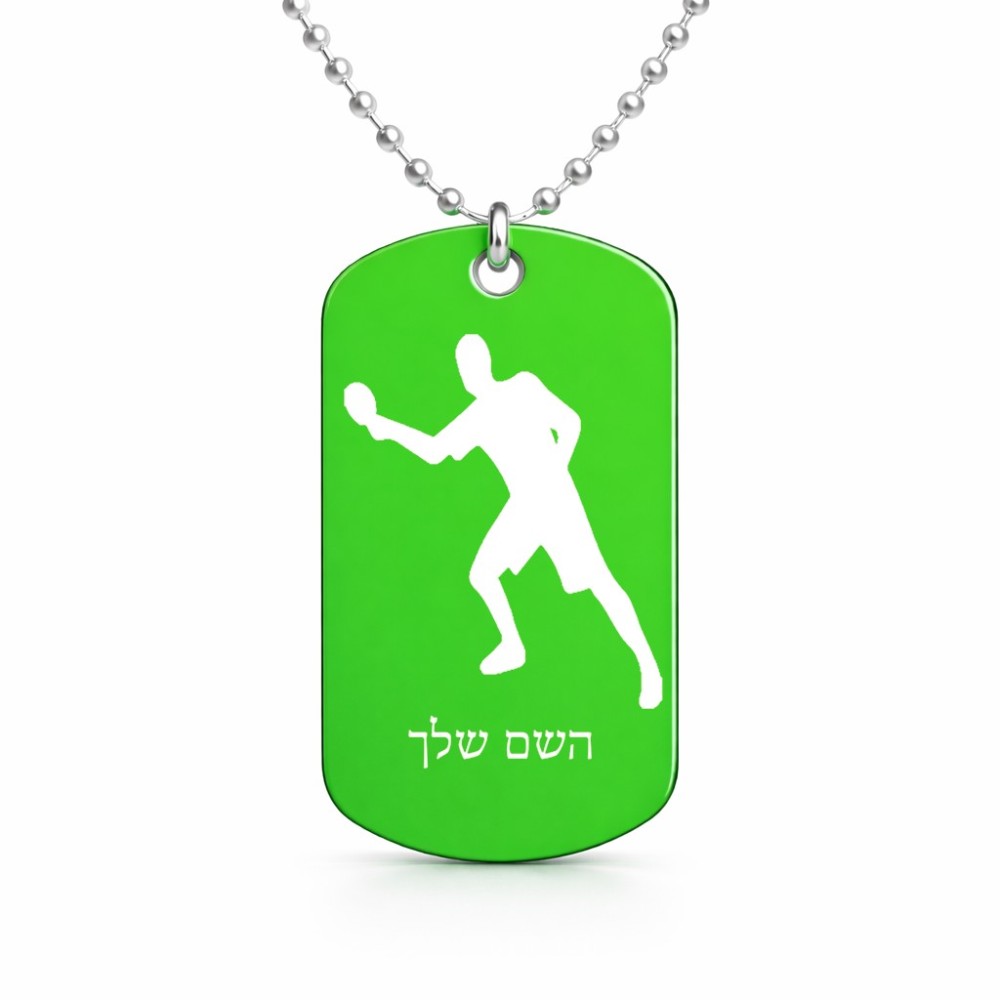 שרשרת דיסקיט מאלומיניום בעיצוב אישי עם השם שלך בעיצוב שחקן פינג פונג גודל הדיסקיט 2.9 × 5 ס"מ. את השם המבוקש ניתן לציין בהזמנה, אם לא צויין אנחנו ניצור קשר לבירור.