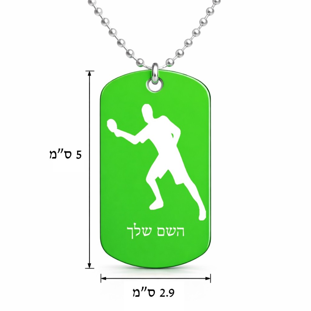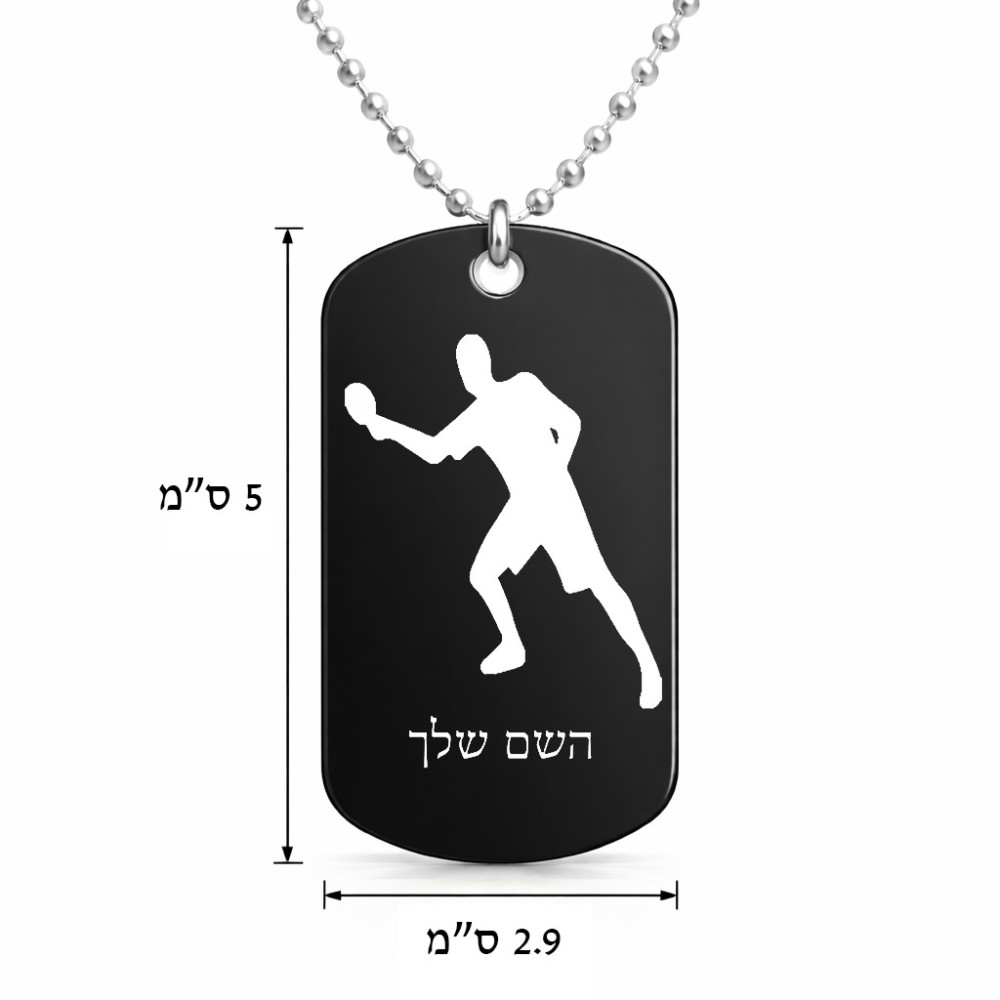 שרשרת דיסקיט מאלומיניום בעיצוב אישי עם השם שלך בעיצוב שחקן פינג פונג גודל הדיסקיט 2.9 × 5 ס"מ
