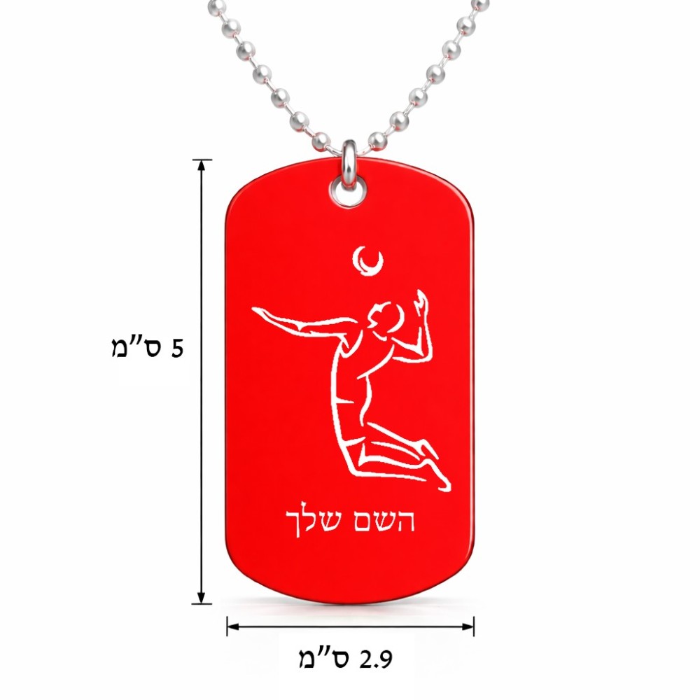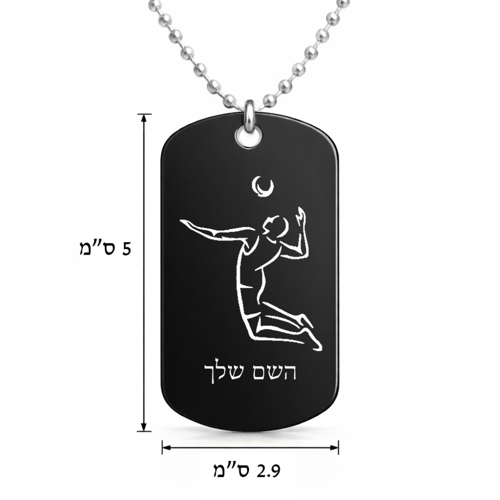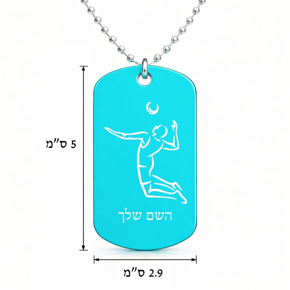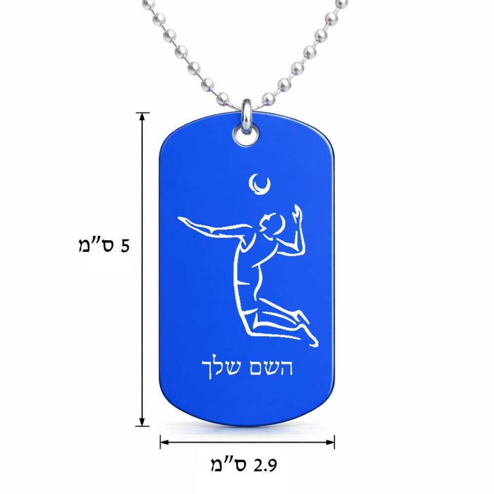 שרשרת דיסקיט מאלומיניום בעיצוב אישי עם השם שלך בעיצוב שחקן כדורעף גודל הדיסקיט 2.9 × 5 ס"מ. את השם המבוקש ניתן לציין בהזמנה, אם לא צויין אנחנו ניצור קשר לבירור.