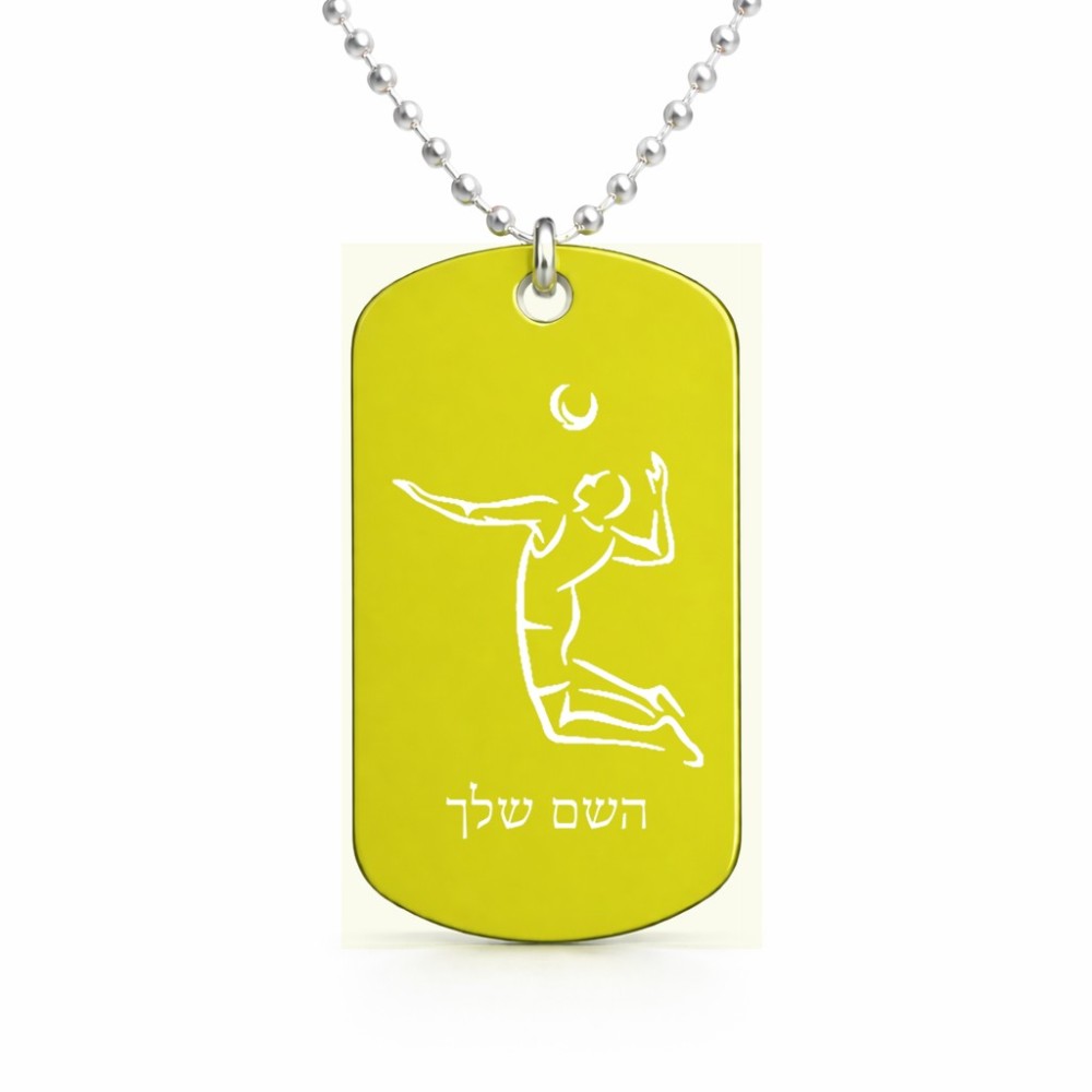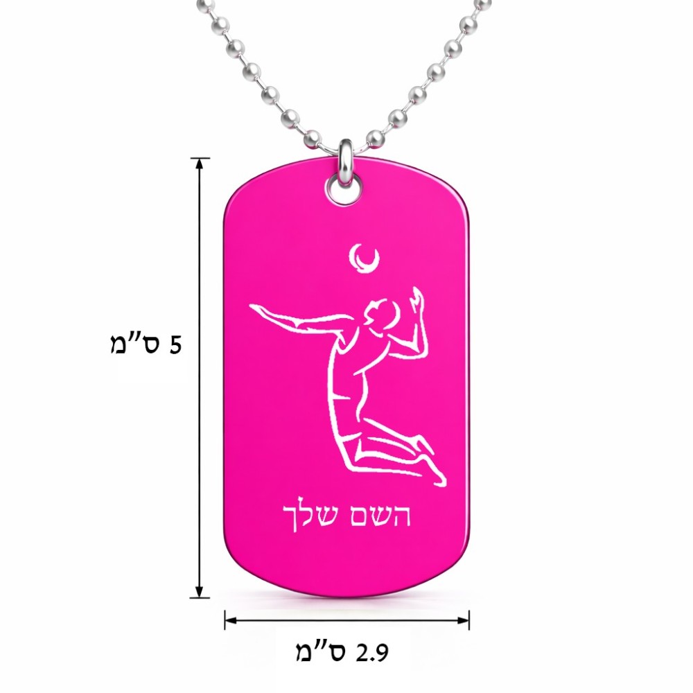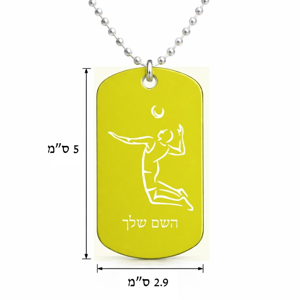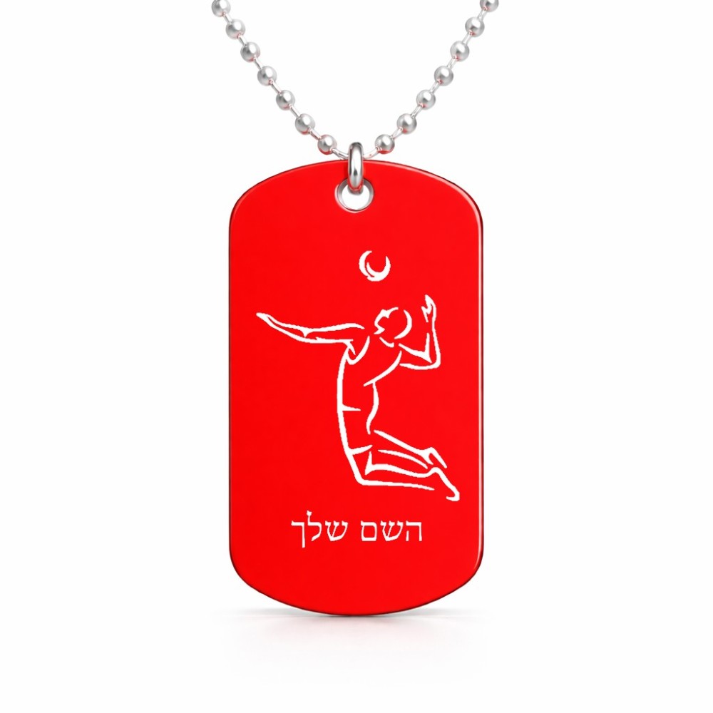 שרשרת דיסקיט מאלומיניום בעיצוב אישי עם השם שלך בעיצוב שחקן כדורעף גודל הדיסקיט 2.9 × 5 ס"מ. את השם המבוקש ניתן לציין בהזמנה, אם לא צויין אנחנו ניצור קשר לבירור.