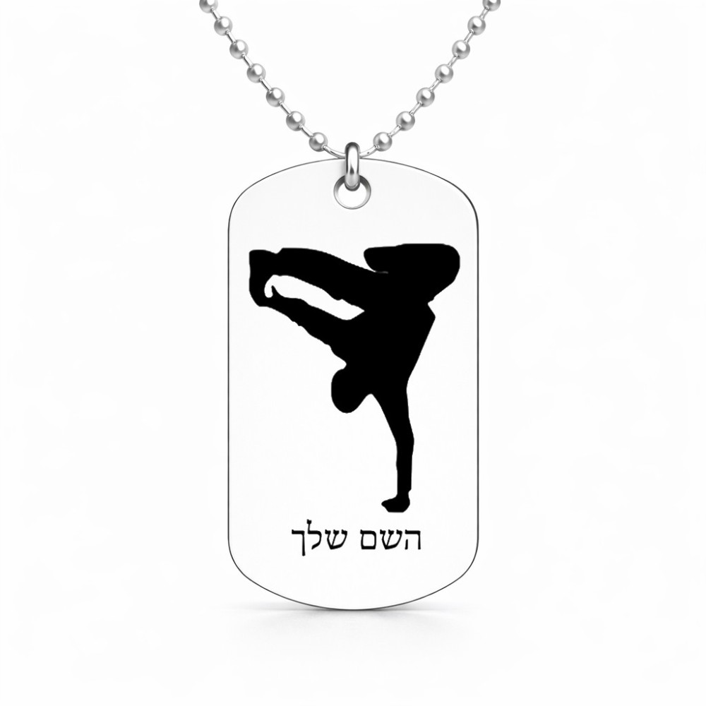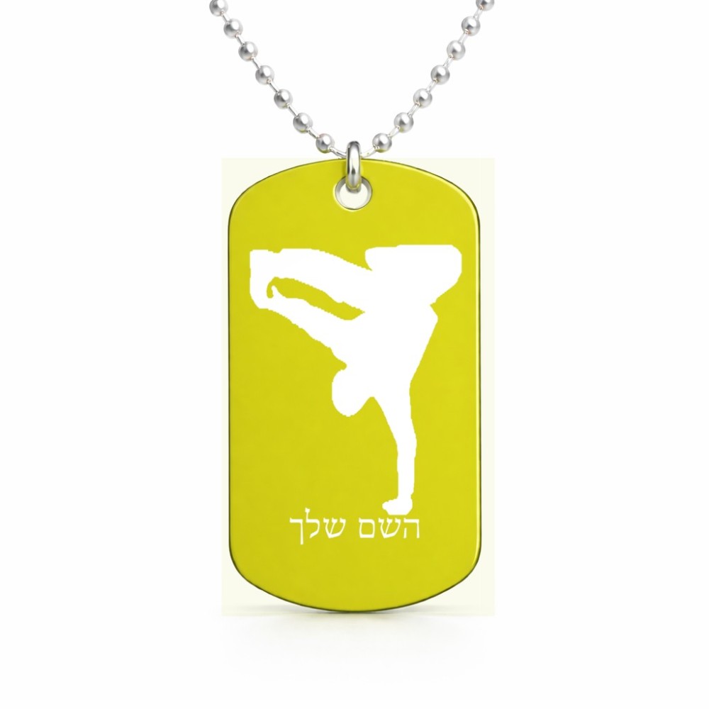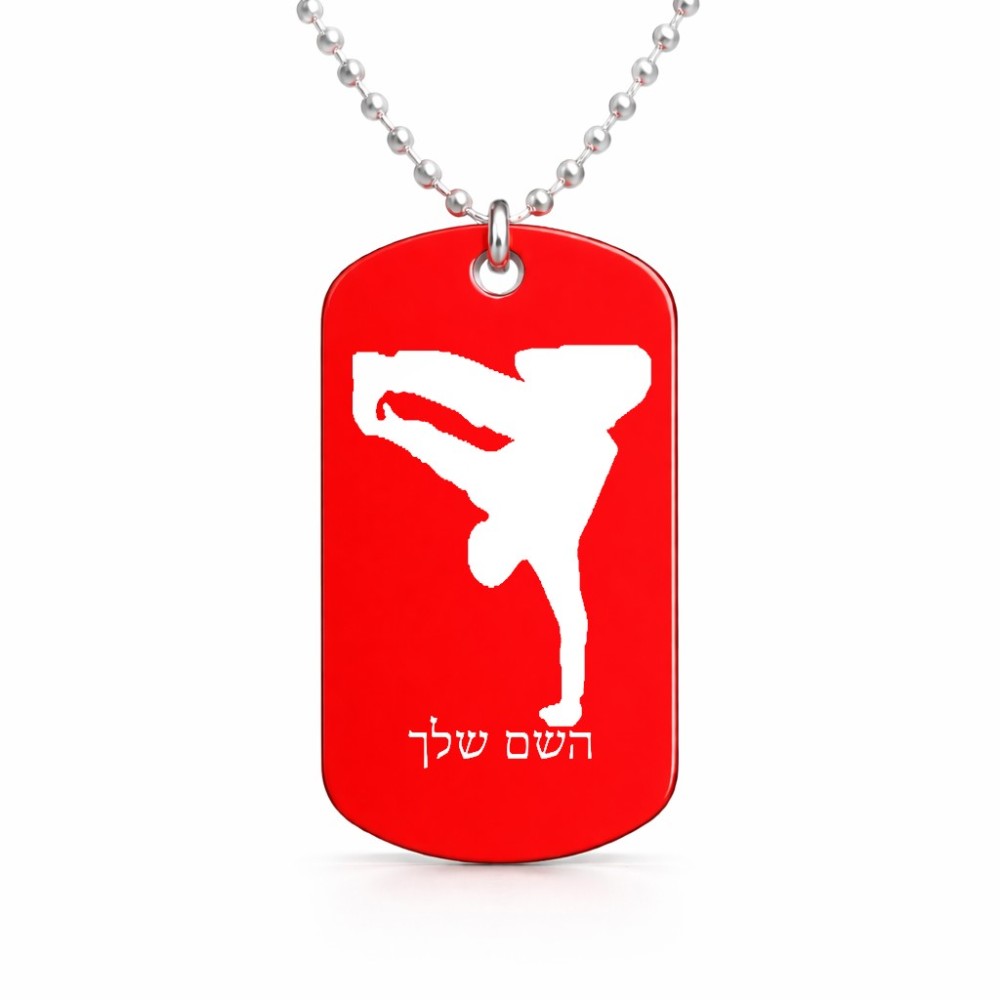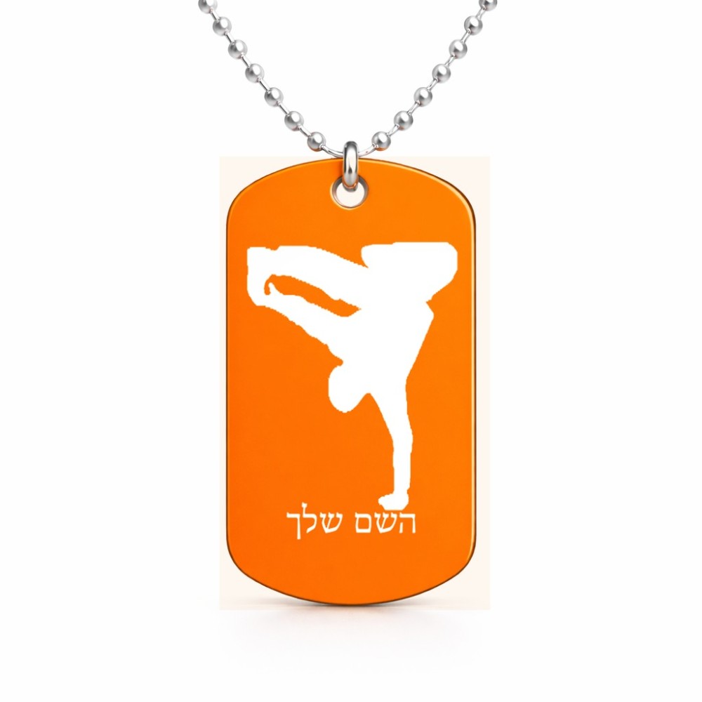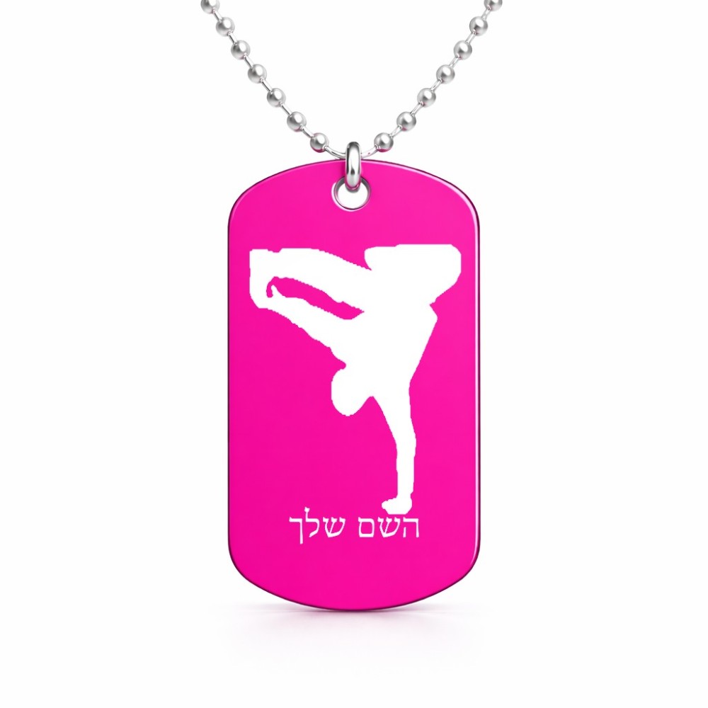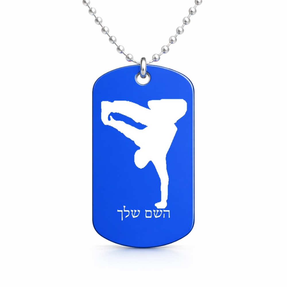 שרשרת דיסקיט מאלומיניום בעיצוב אישי עם השם שלך בעיצוב ברייקדאנס גודל הדיסקיט 2.9 × 5 ס"מ. את השם המבוקש ניתן לציין בהזמנה, אם לא צויין אנחנו ניצור קשר לבירור.