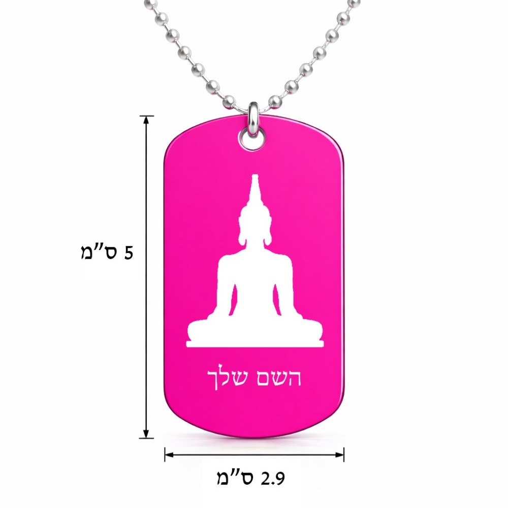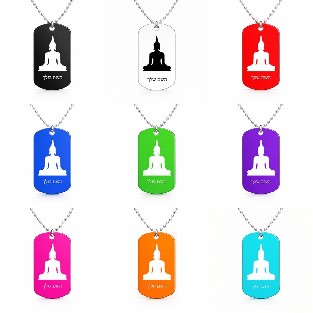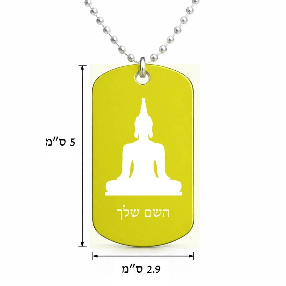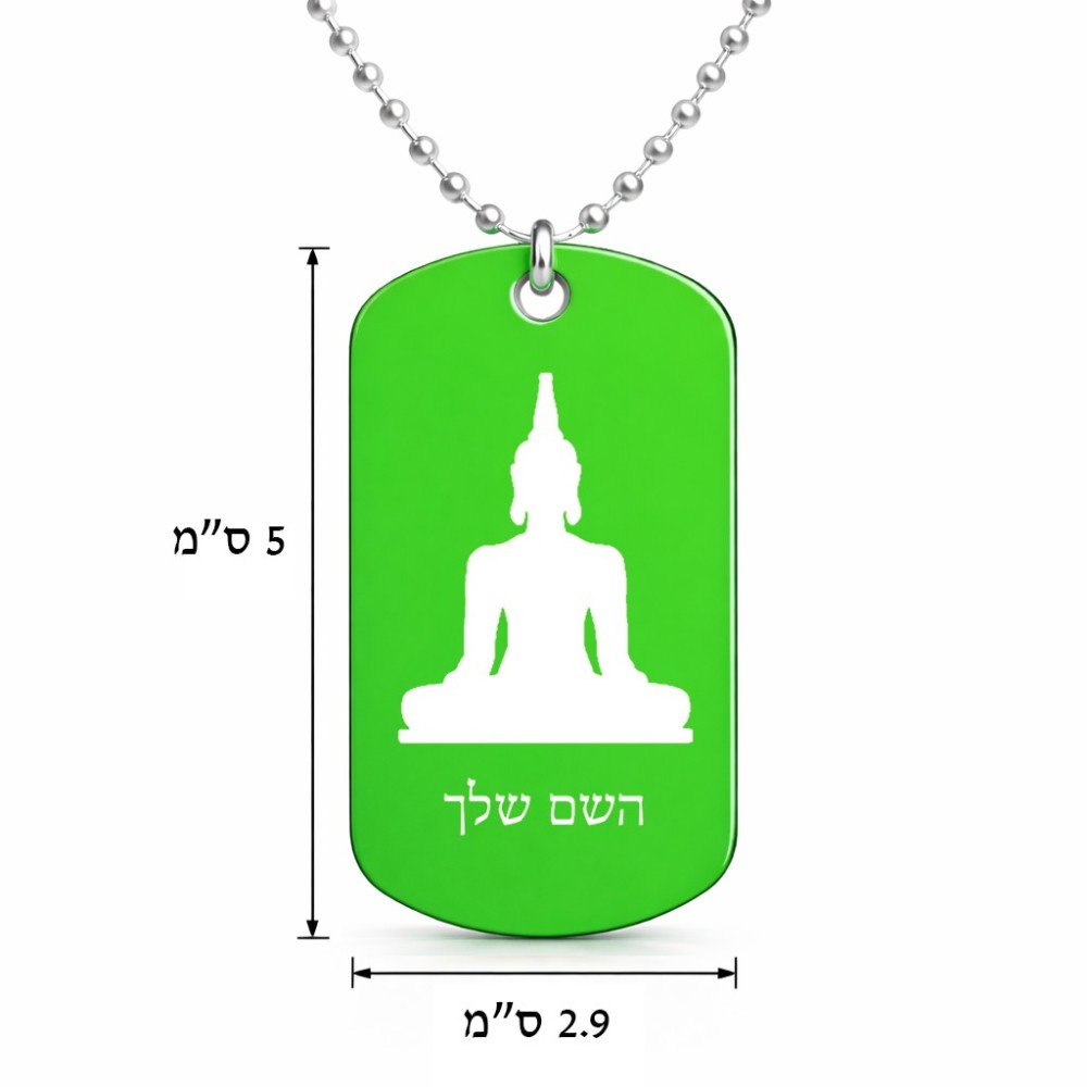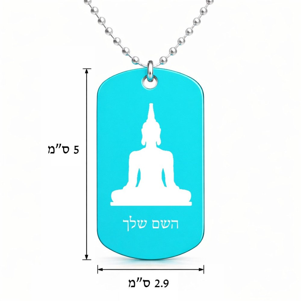 שרשרת דיסקיט מאלומיניום בעיצוב אישי עם השם שלך בעיצוב בודה גודל הדיסקיט 2.9 × 5 ס"מ