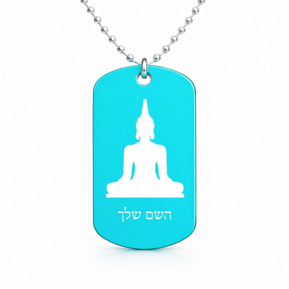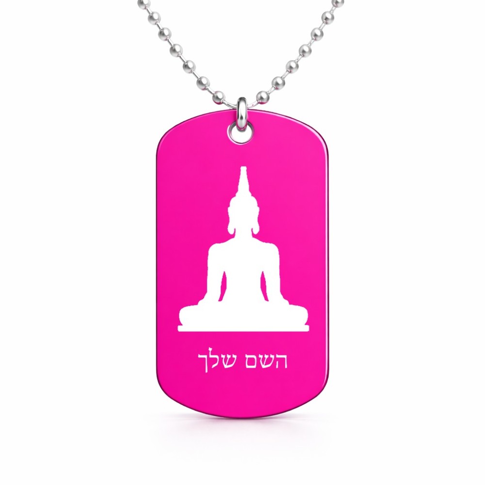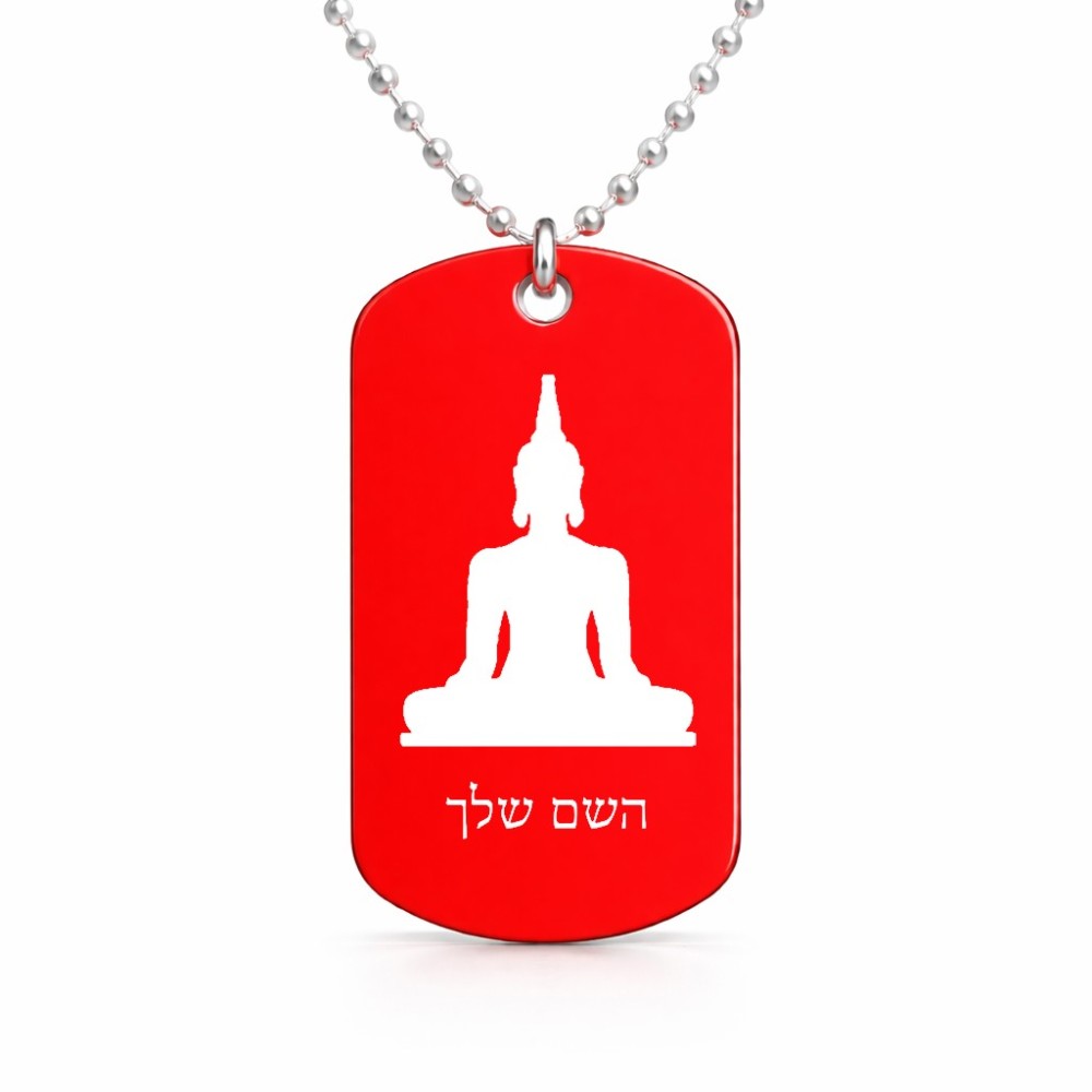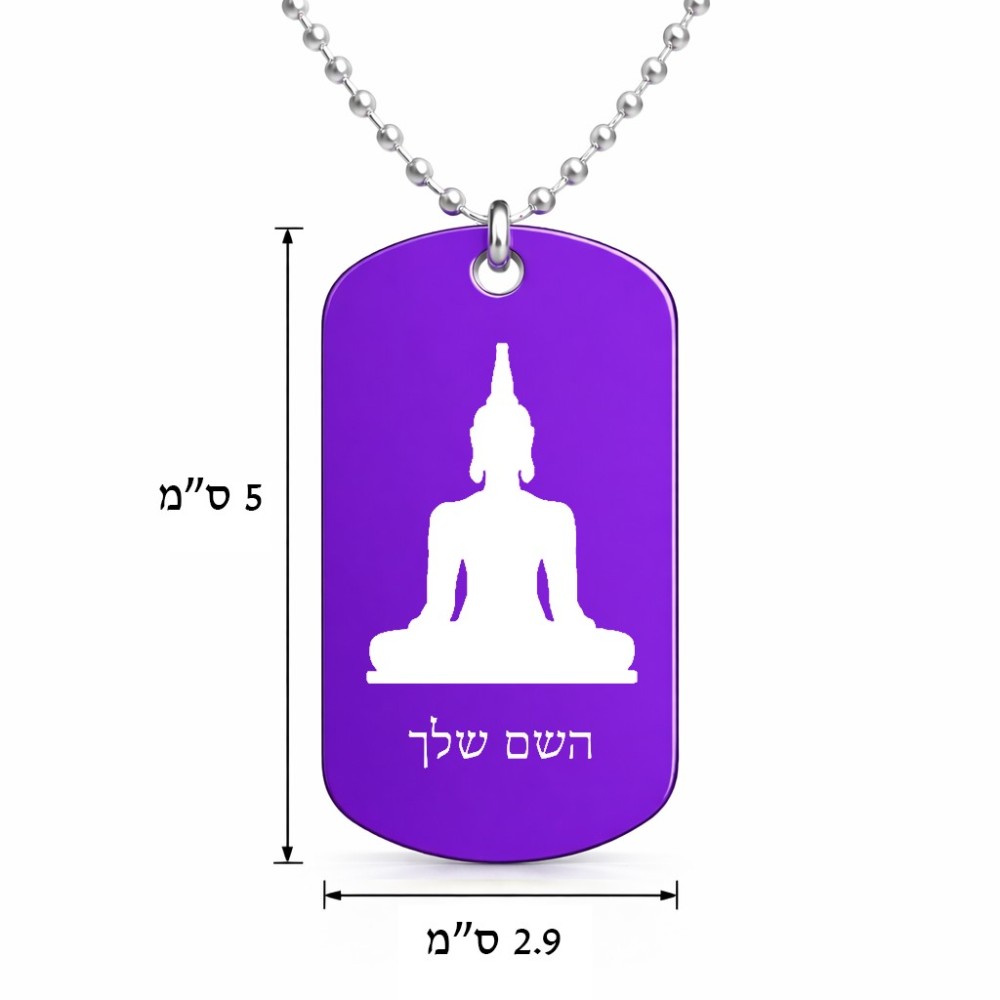 שרשרת דיסקיט מאלומיניום בעיצוב אישי עם השם שלך בעיצוב בודה גודל הדיסקיט 2.9 × 5 ס"מ. את השם המבוקש ניתן לציין בהזמנה, אם לא צויין אנחנו ניצור קשר לבירור.