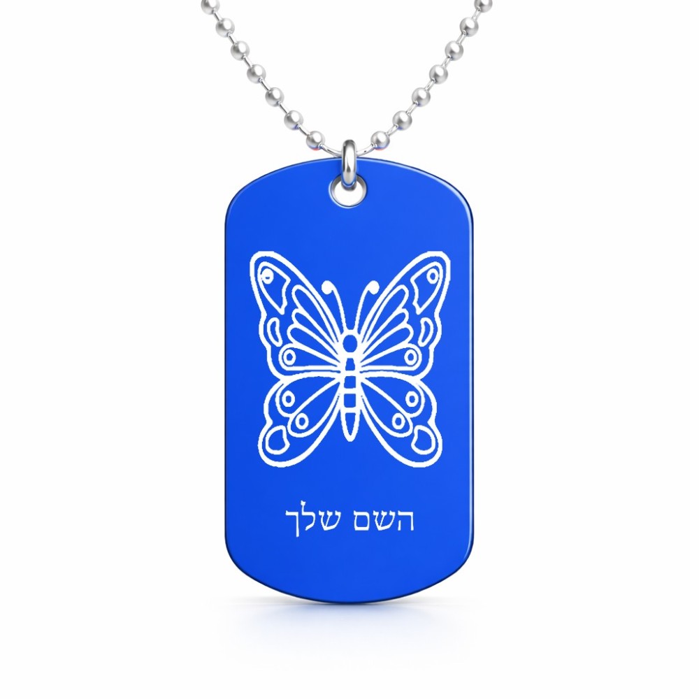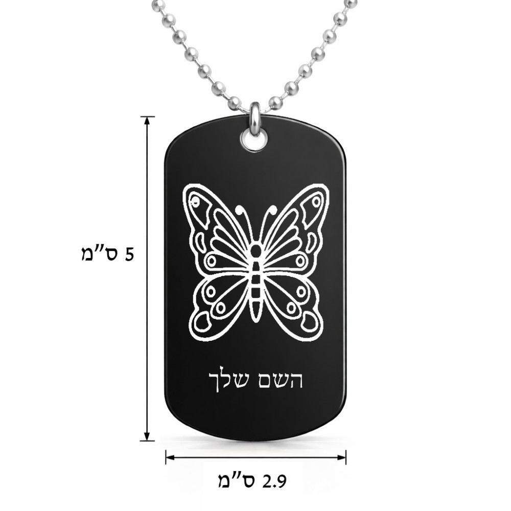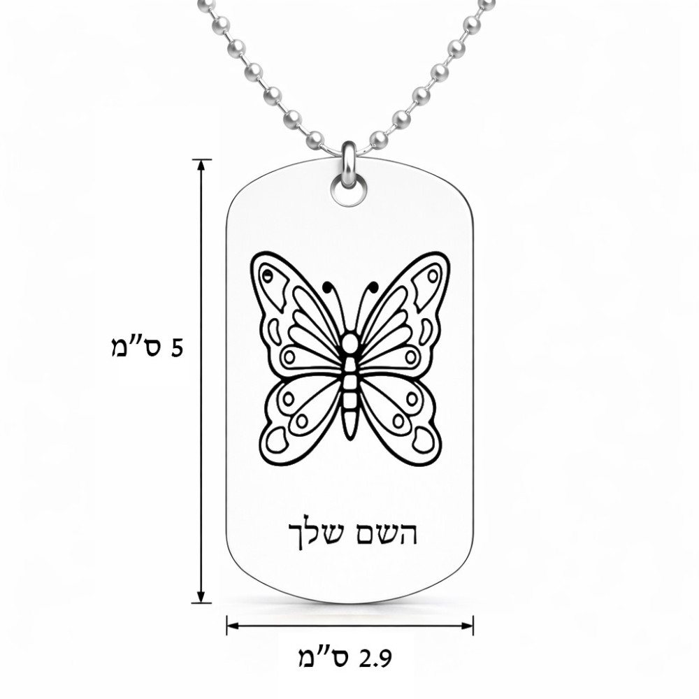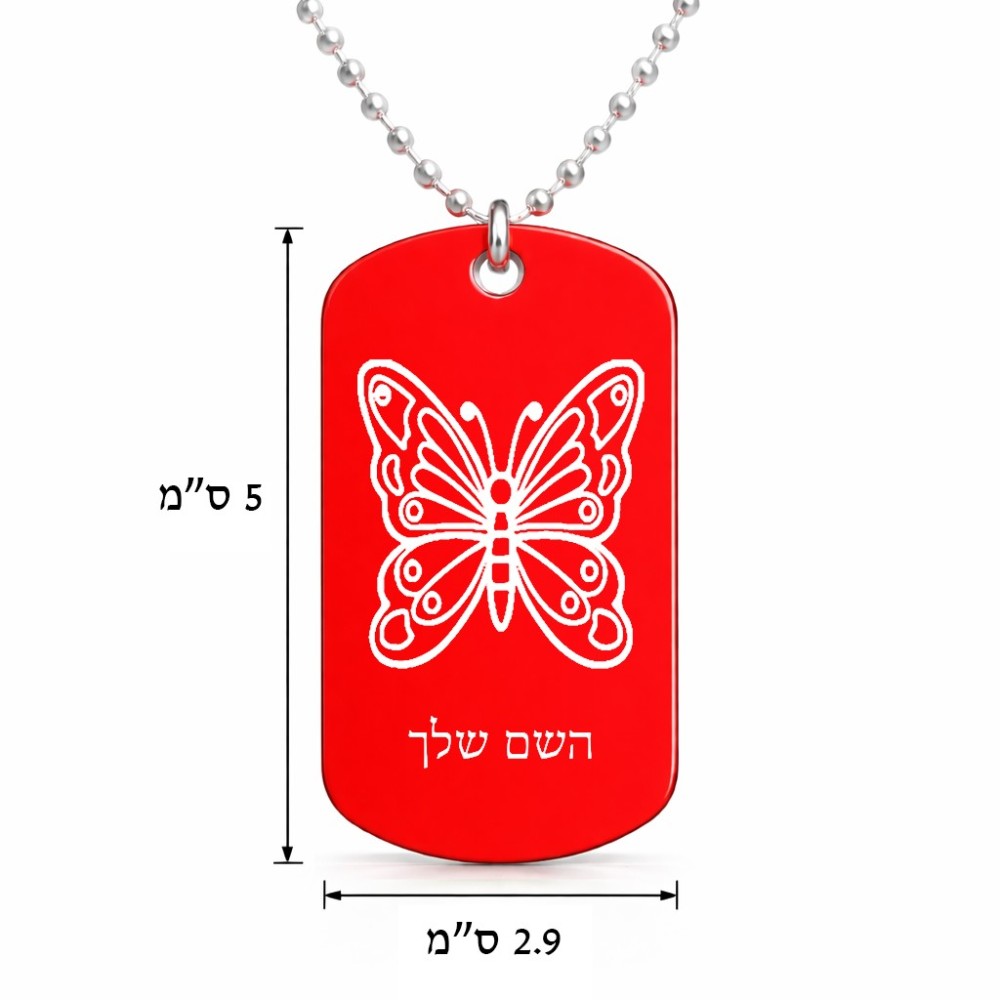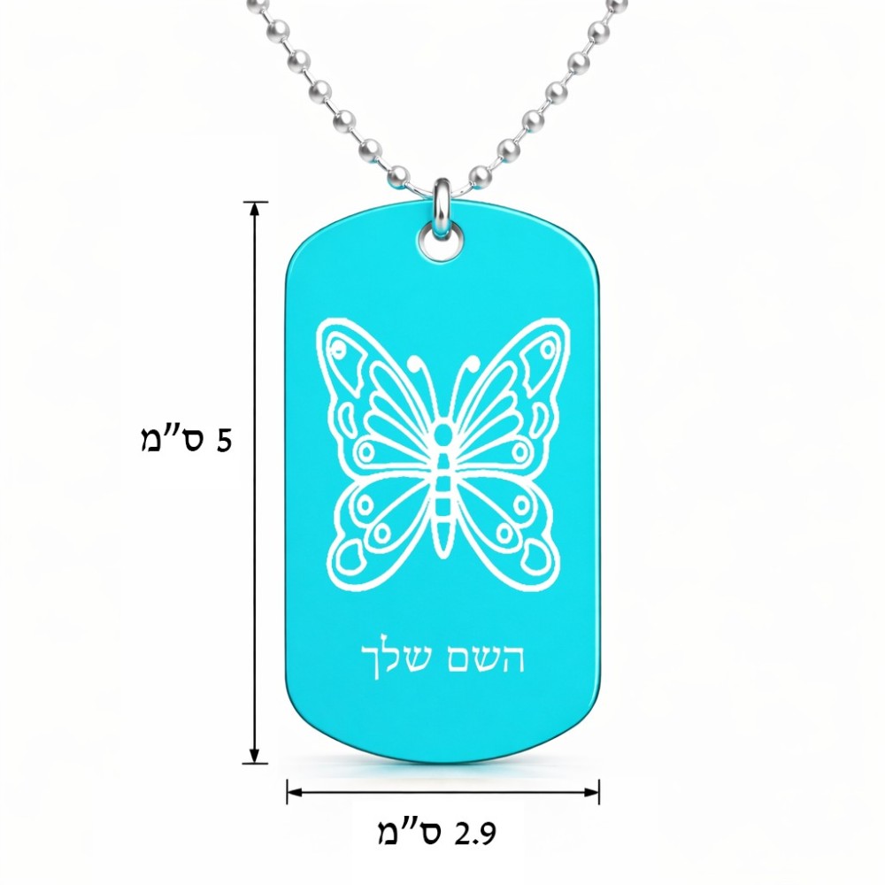שרשרת דיסקיט מאלומיניום בעיצוב אישי עם השם שלך בעיצוב פרפר גודל הדיסקיט 2.9 × 5 ס"מ. את השם המבוקש ניתן לציין בהזמנה, אם לא צויין אנחנו ניצור קשר לבירור.