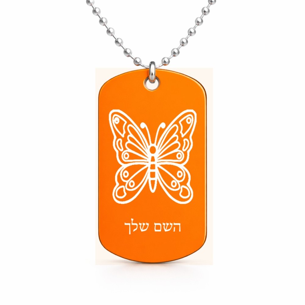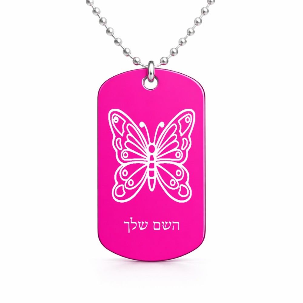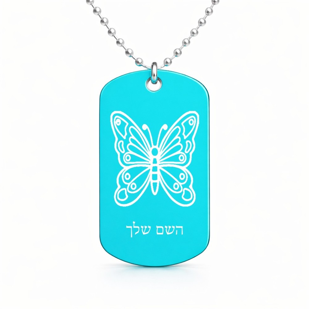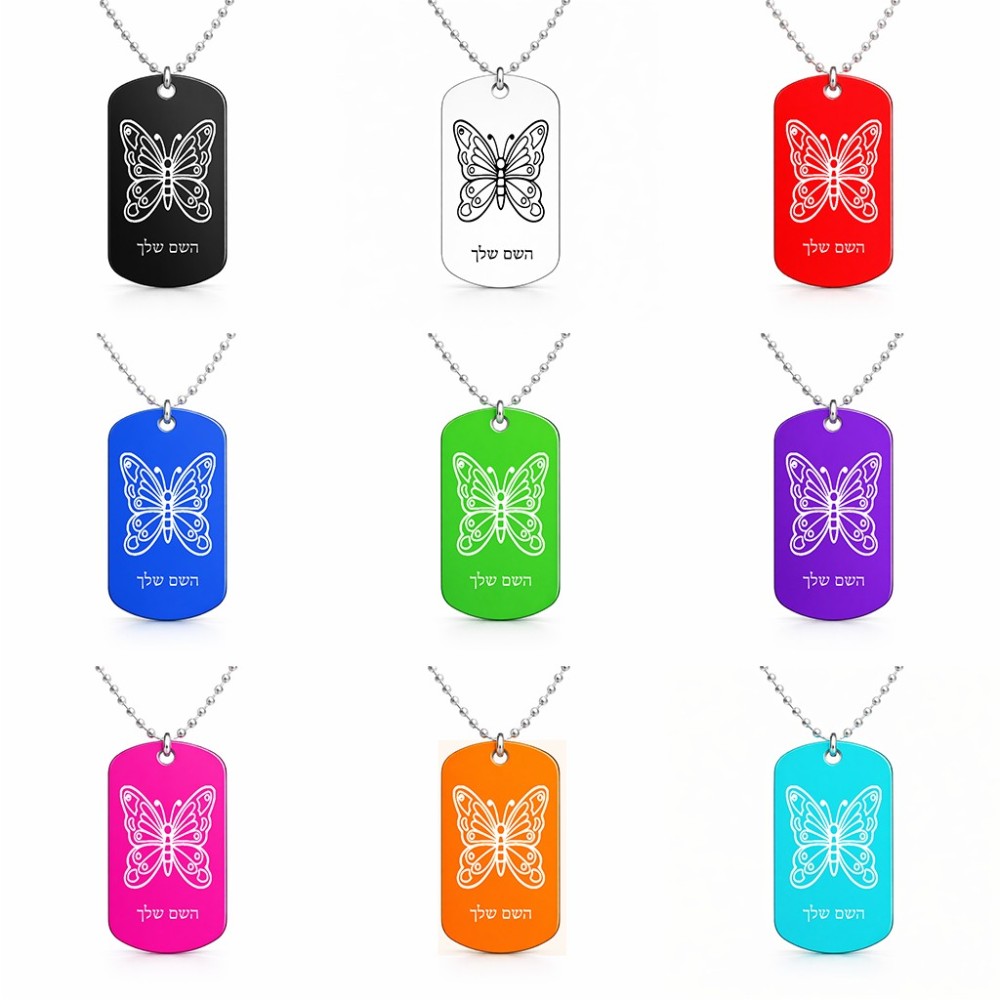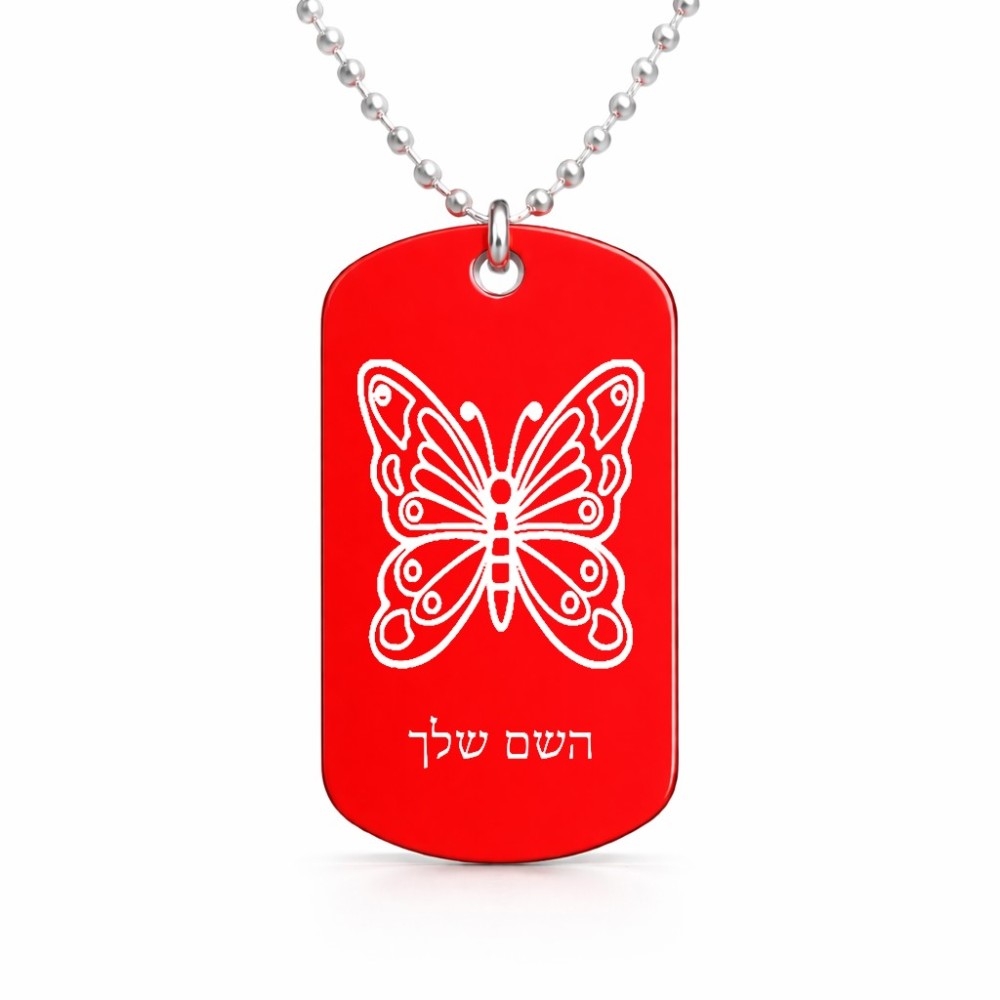 שרשרת דיסקיט מאלומיניום בעיצוב אישי עם השם שלך בעיצוב פרפר גודל הדיסקיט 2.9 × 5 ס"מ. את השם המבוקש ניתן לציין בהזמנה, אם לא צויין אנחנו ניצור קשר לבירור.