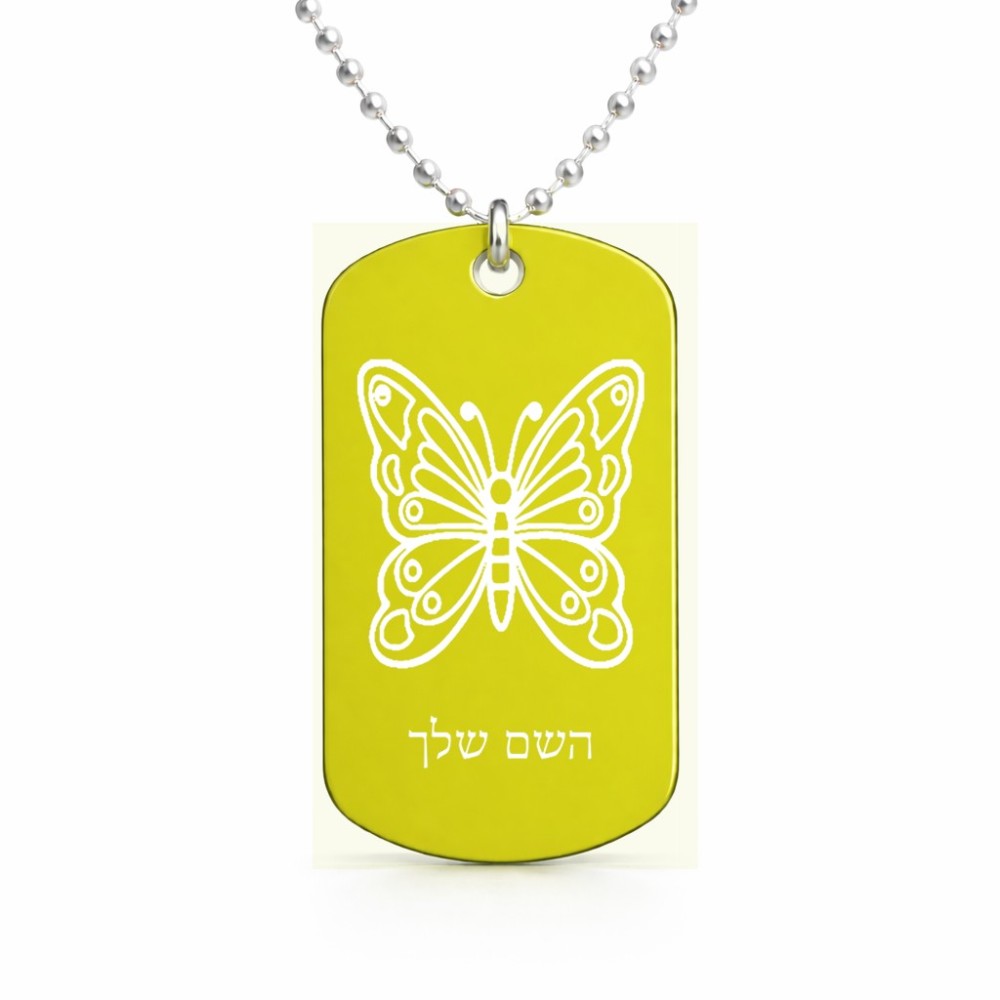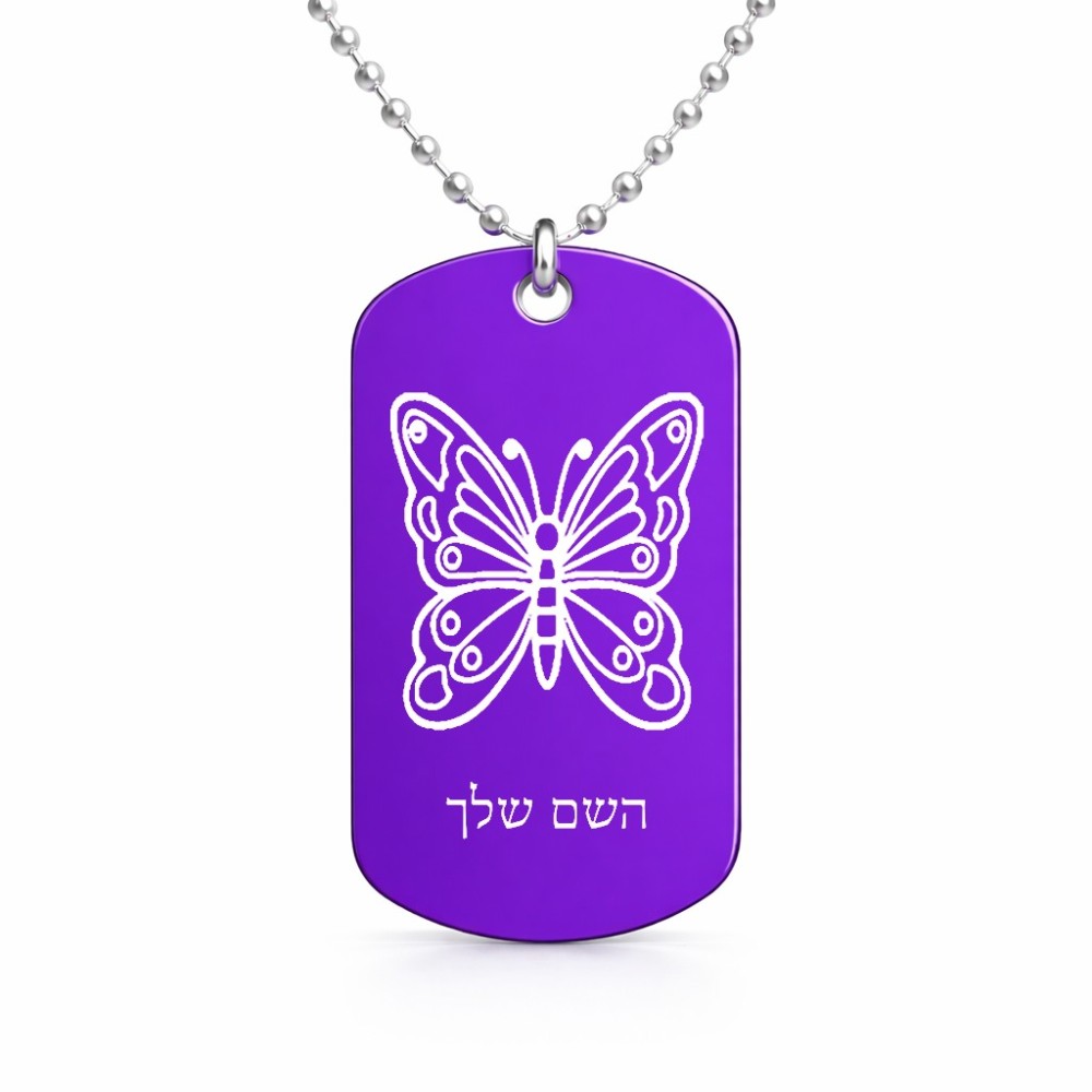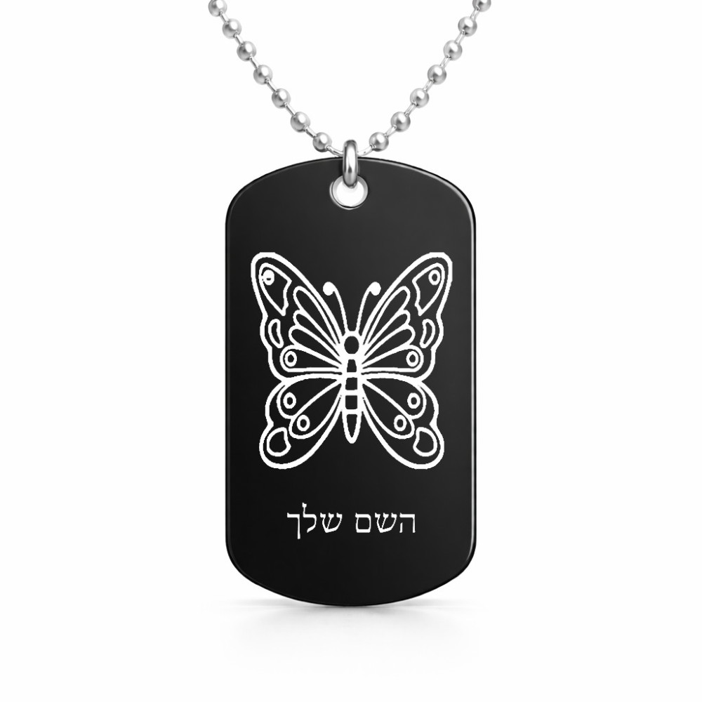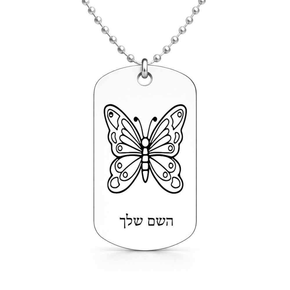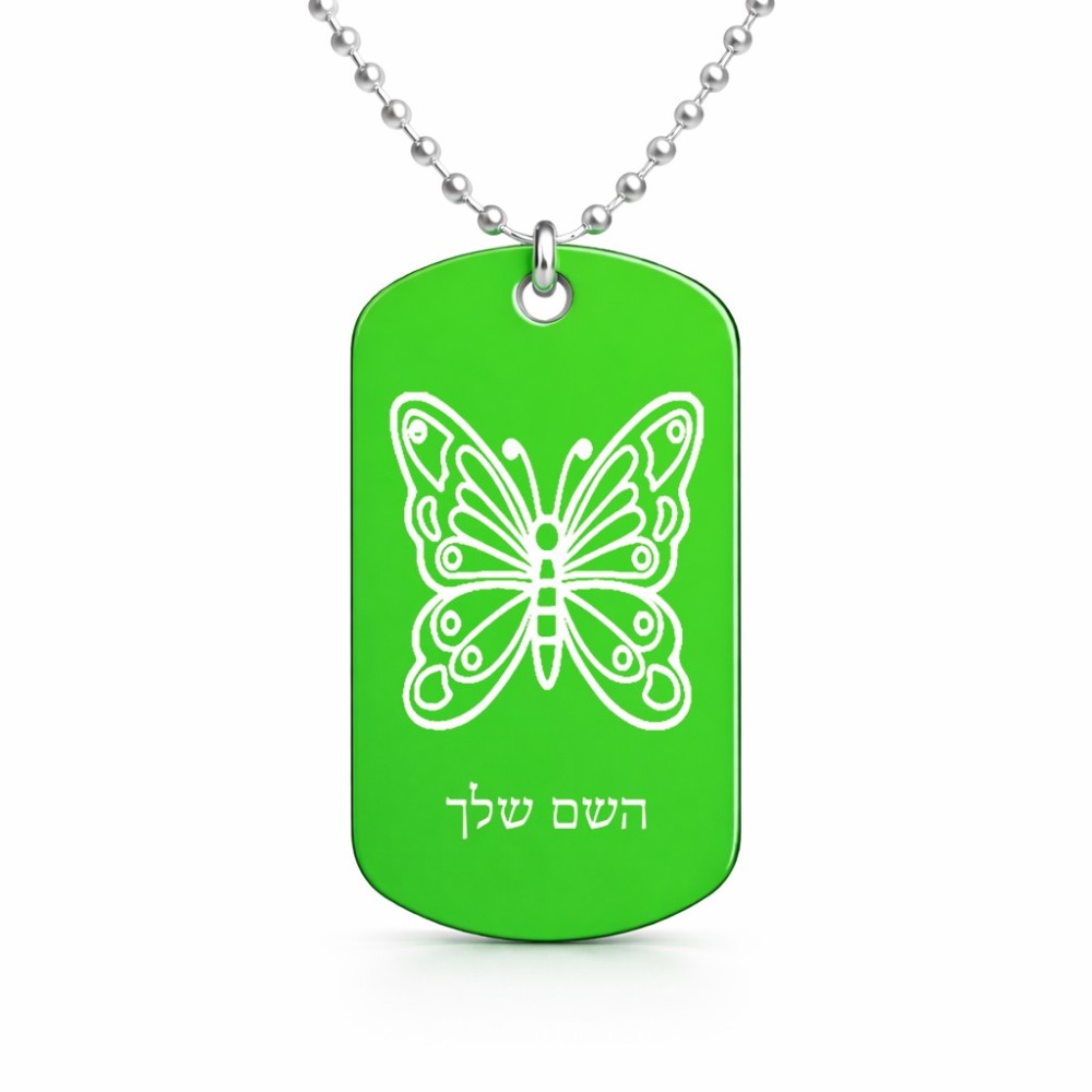 שרשרת דיסקיט מאלומיניום בעיצוב אישי עם השם שלך בעיצוב פרפר גודל הדיסקיט 2.9 × 5 ס"מ. את השם המבוקש ניתן לציין בהזמנה, אם לא צויין אנחנו ניצור קשר לבירור.