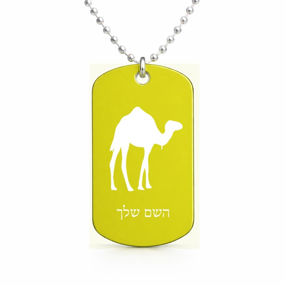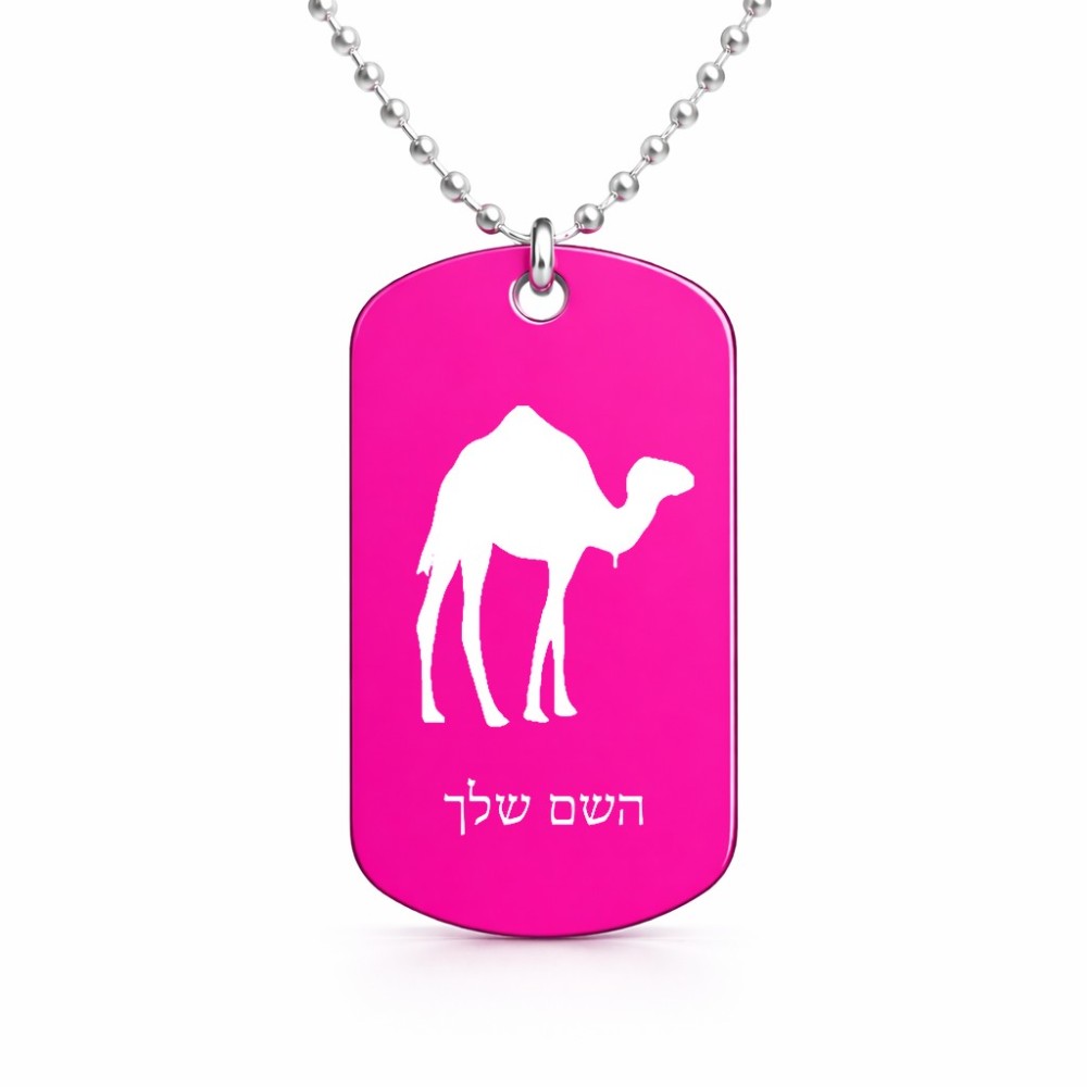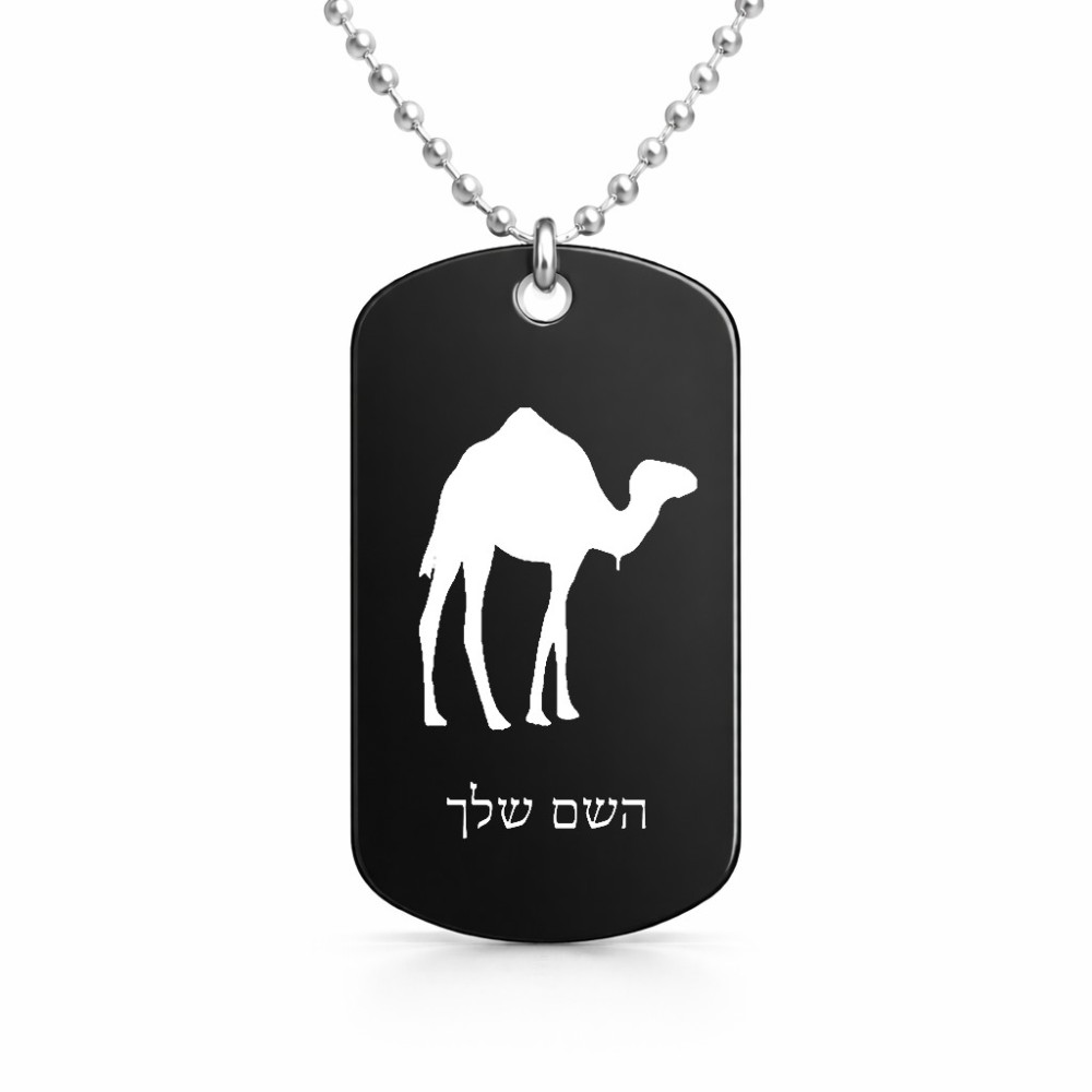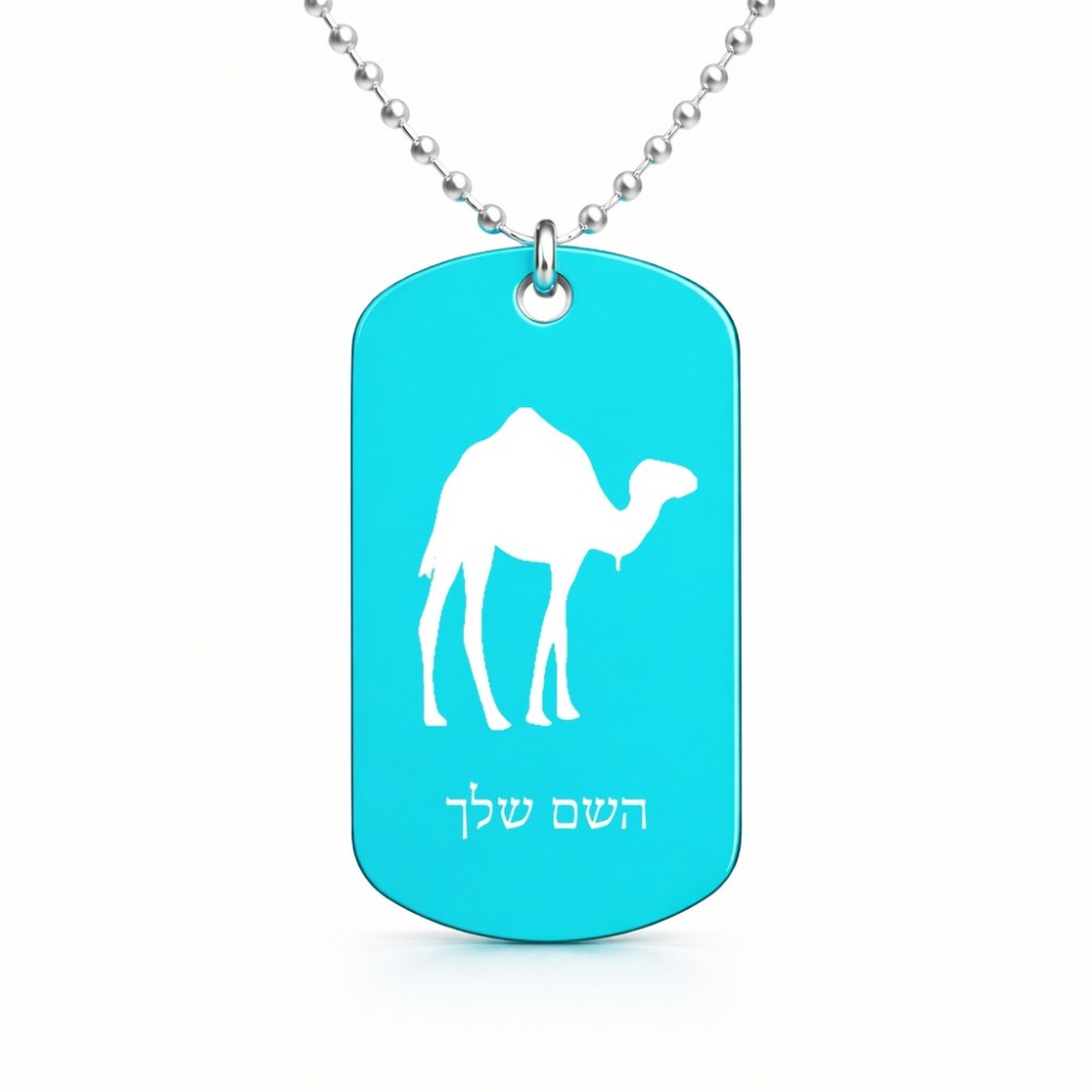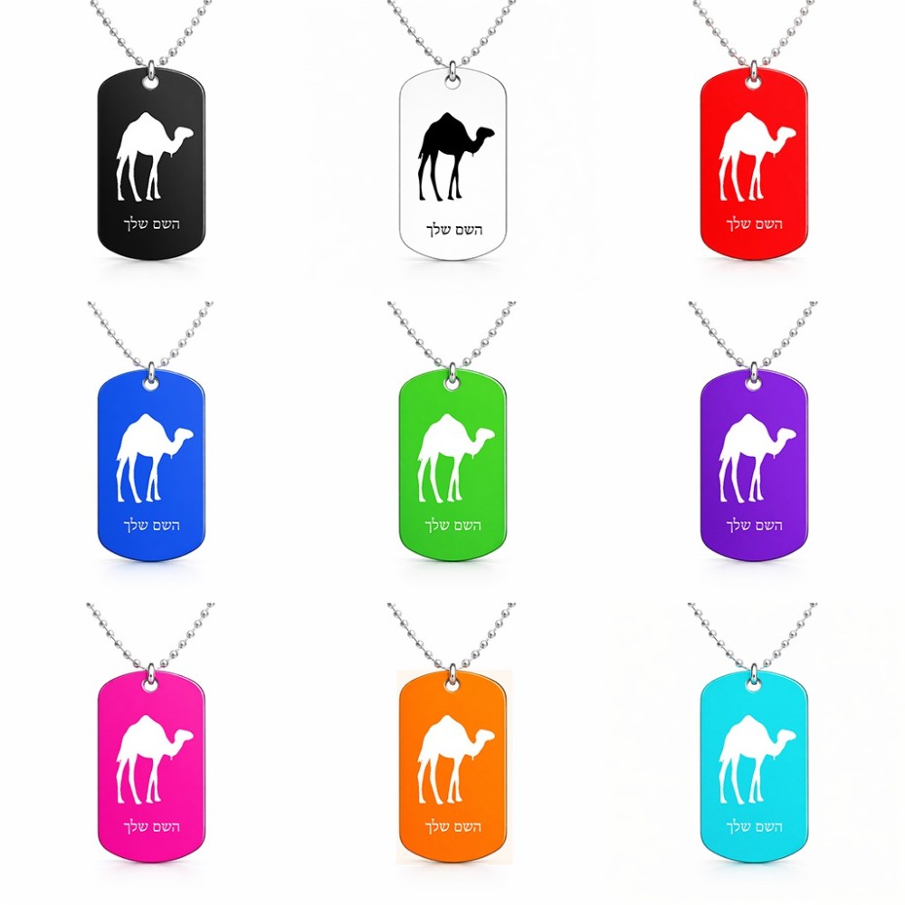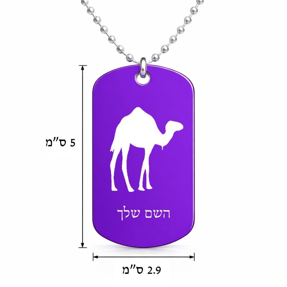 שרשרת דיסקיט מאלומיניום בעיצוב אישי עם השם שלך בעיצוב גמל גודל הדיסקיט 2.9 × 5 ס"מ. את השם המבוקש ניתן לציין בהזמנה, אם לא צויין אנחנו ניצור קשר לבירור.