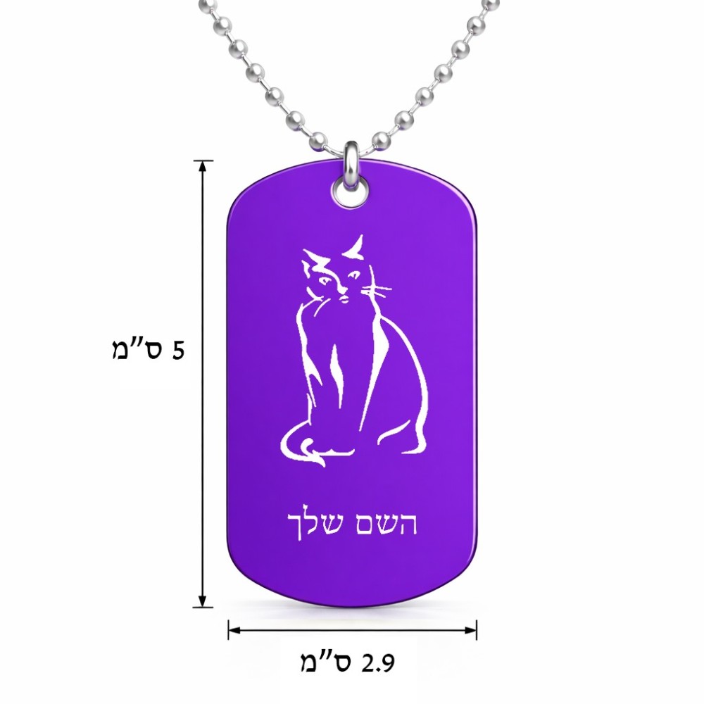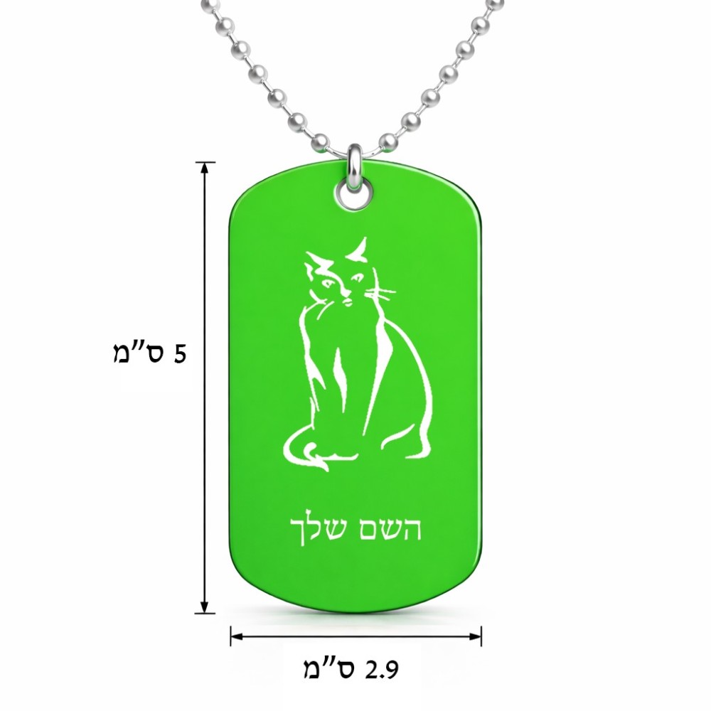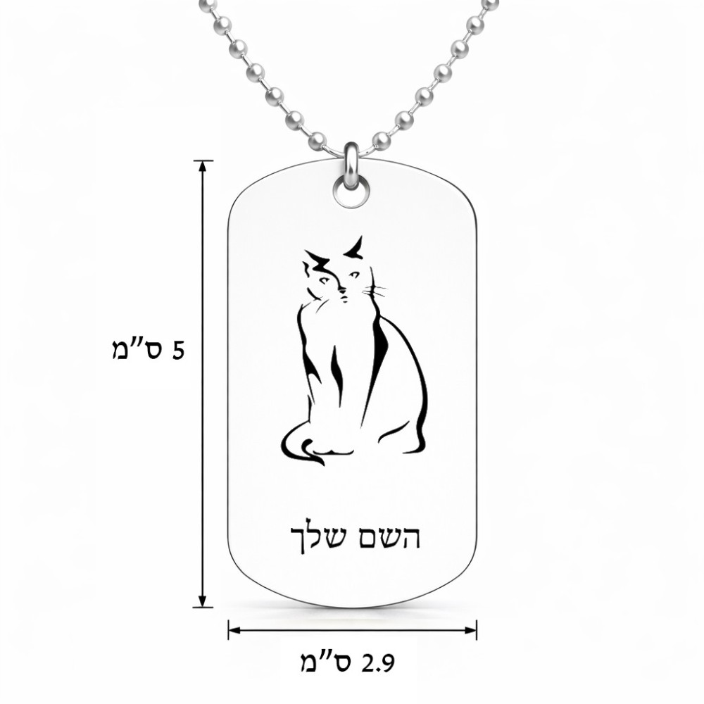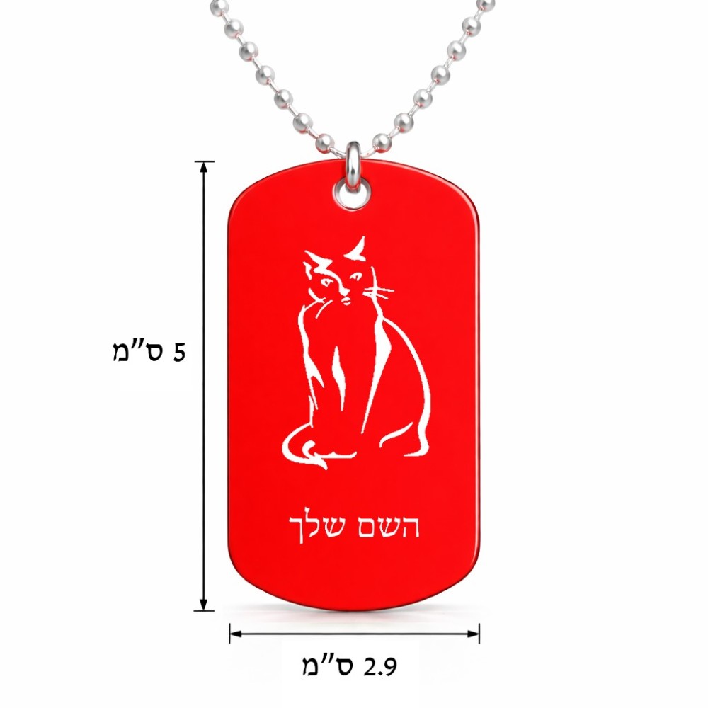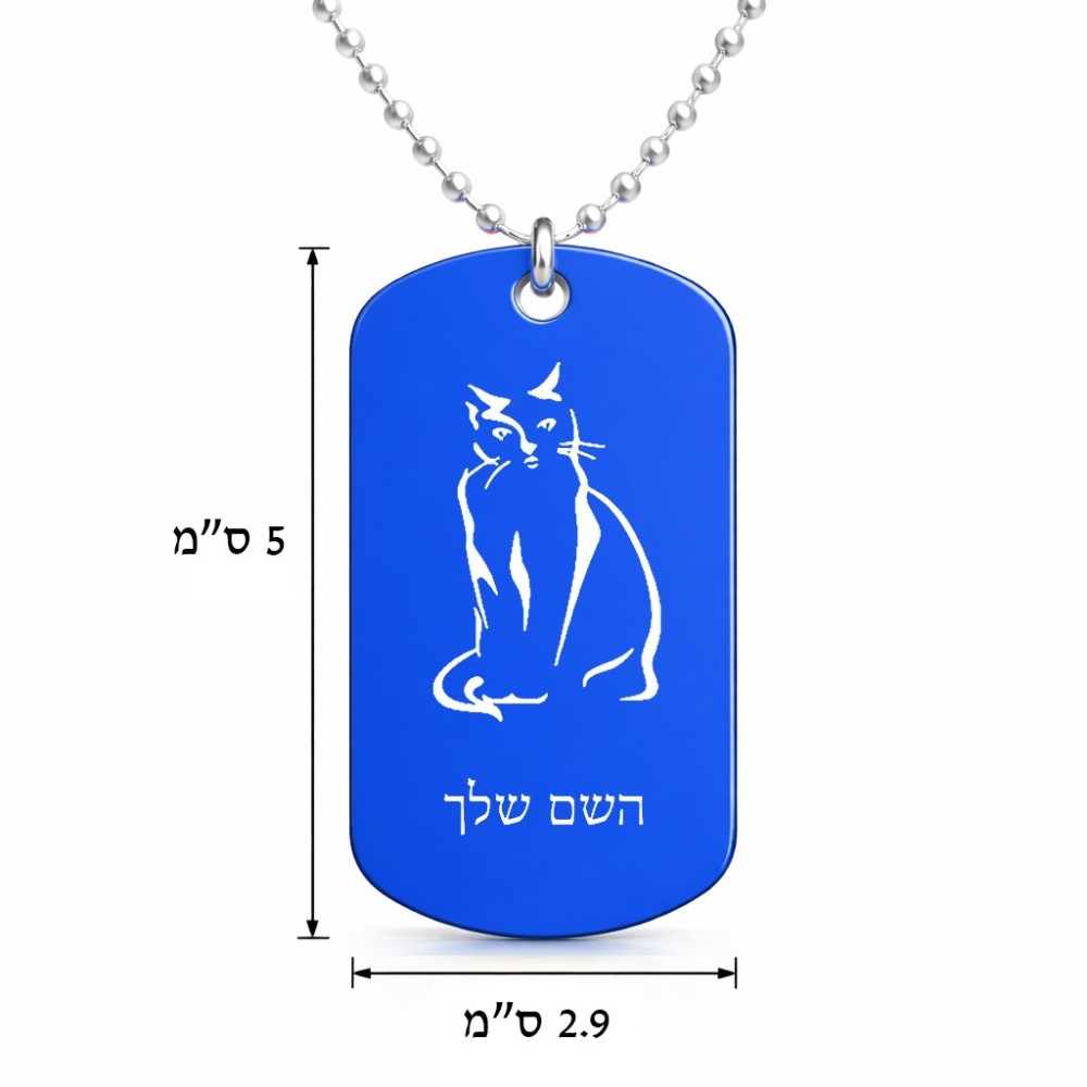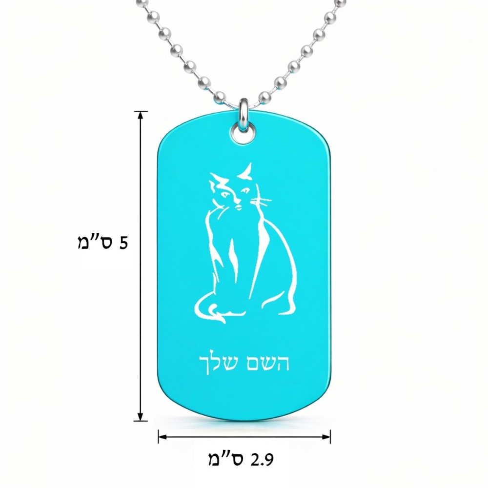 שרשרת דיסקיט מאלומיניום בעיצוב אישי עם השם שלך בעיצוב חתול גודל הדיסקיט 2.9 × 5 ס"מ