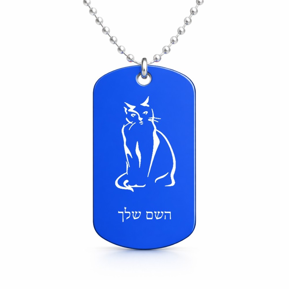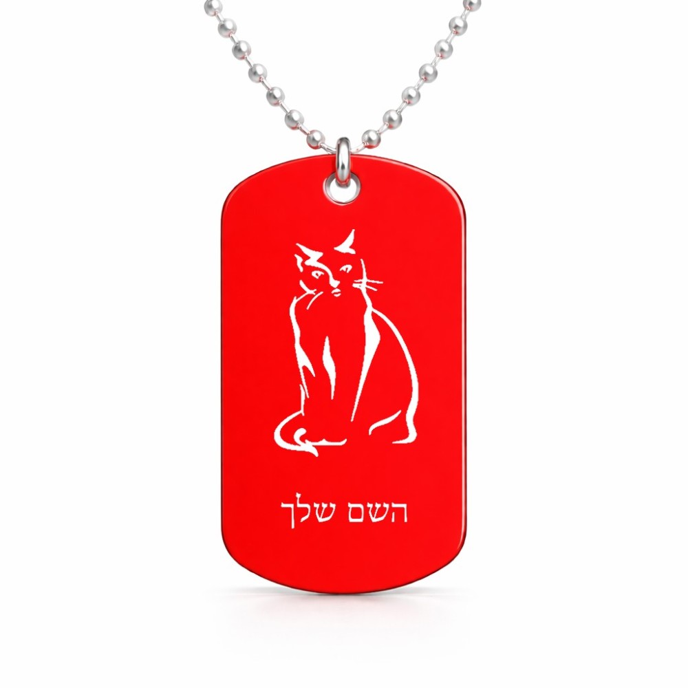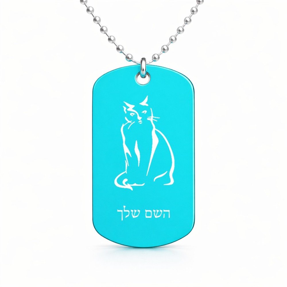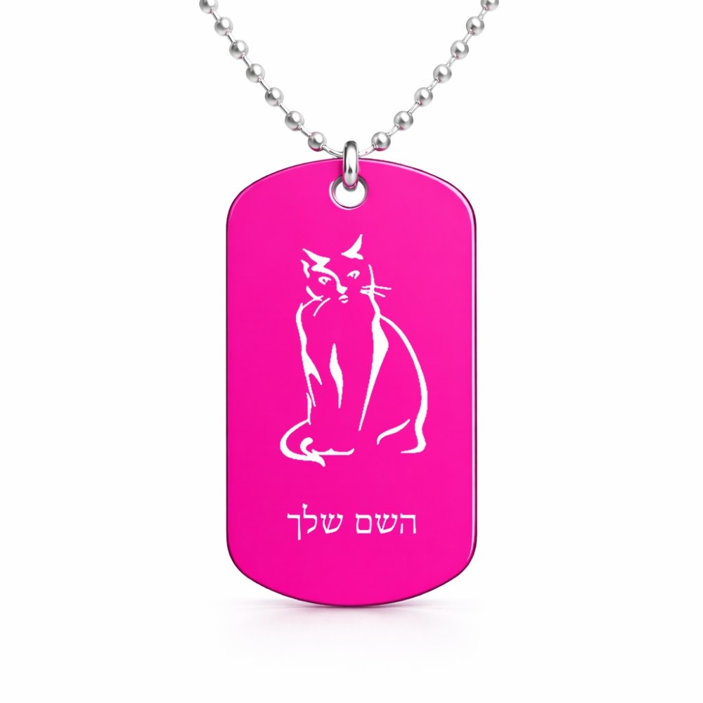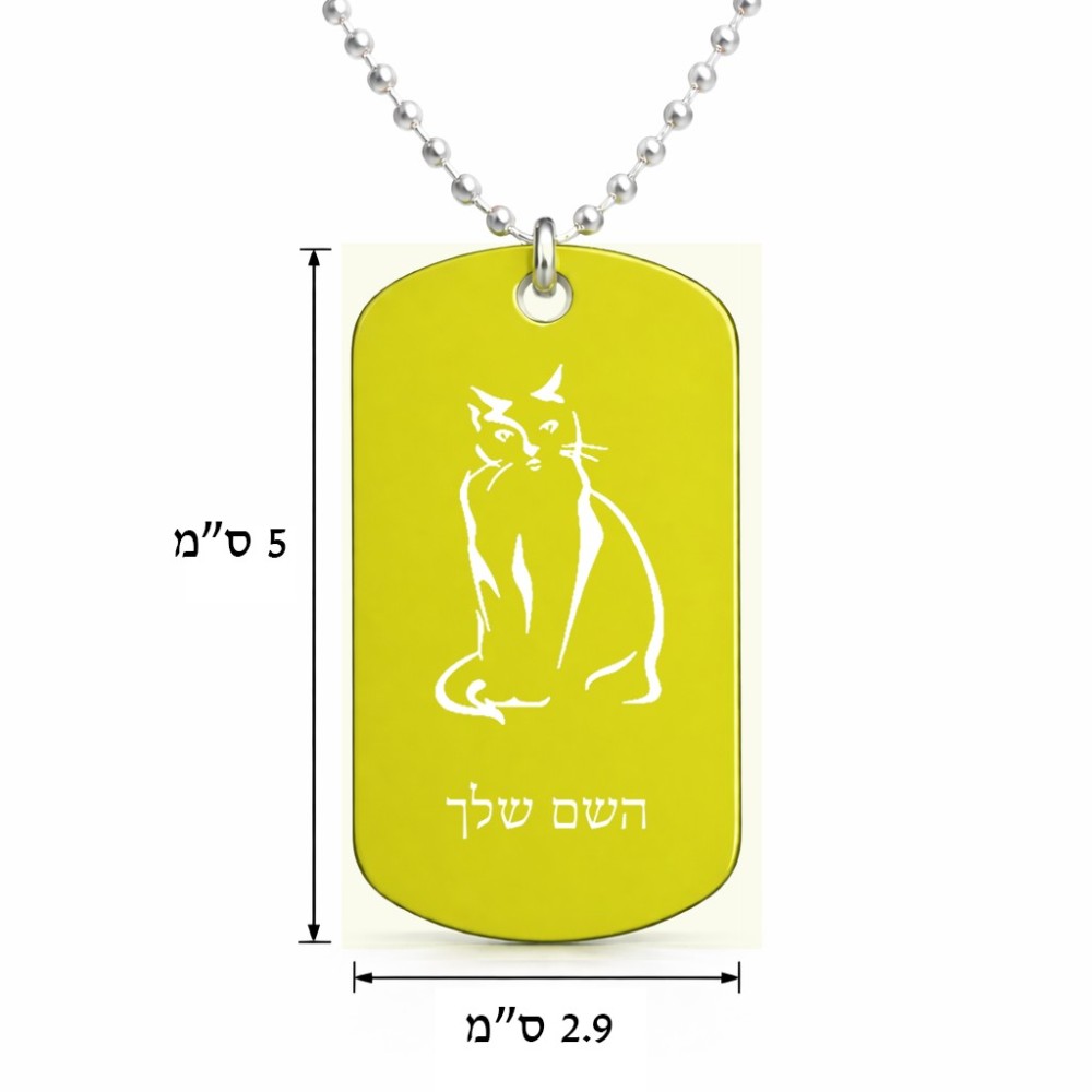 שרשרת דיסקיט מאלומיניום בעיצוב אישי עם השם שלך בעיצוב חתול גודל הדיסקיט 2.9 × 5 ס"מ