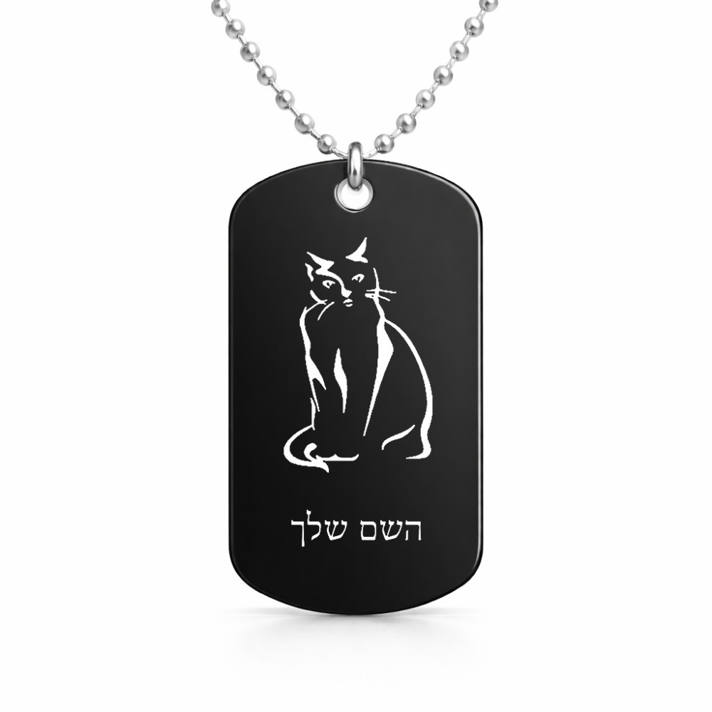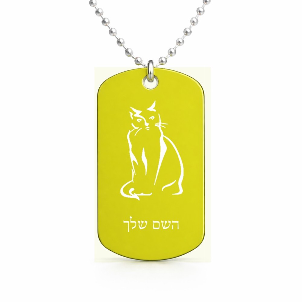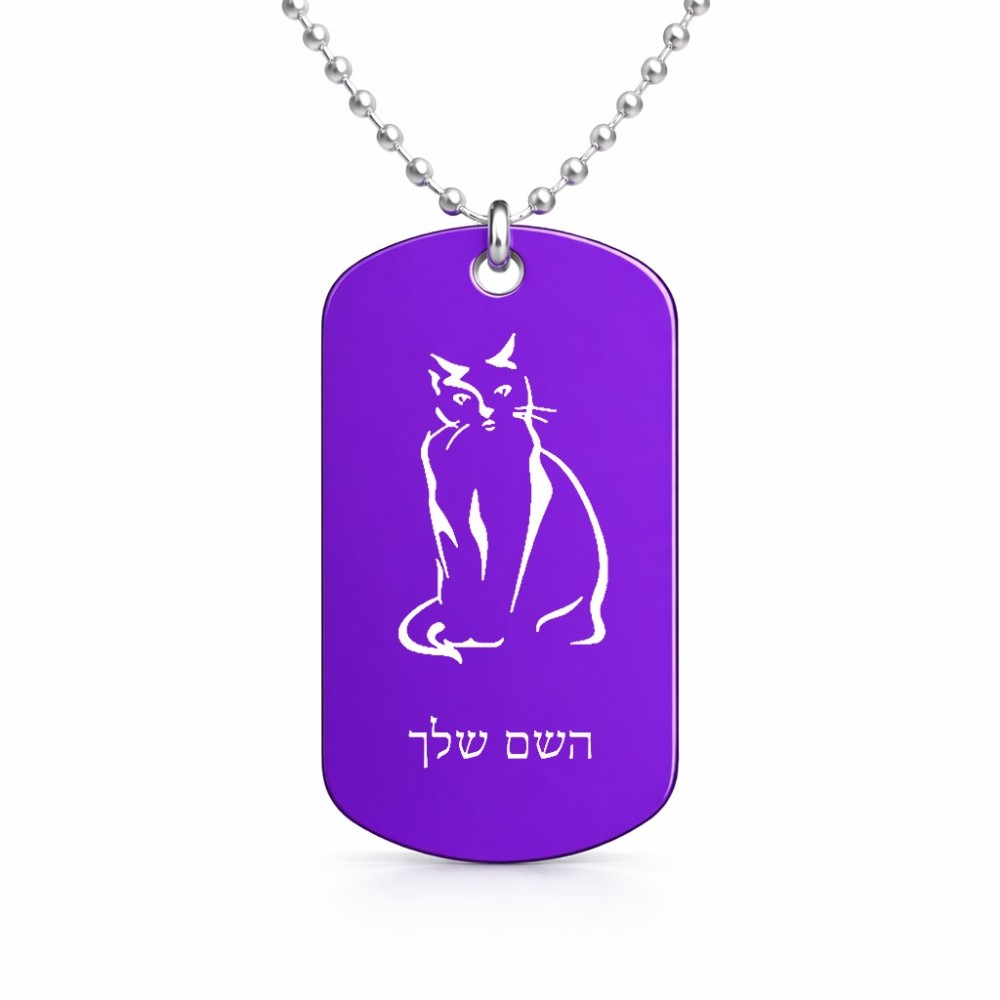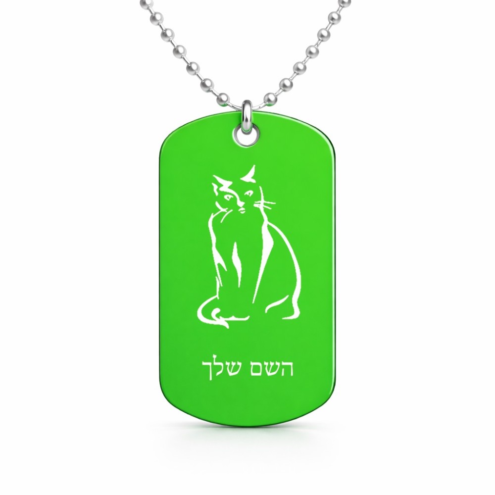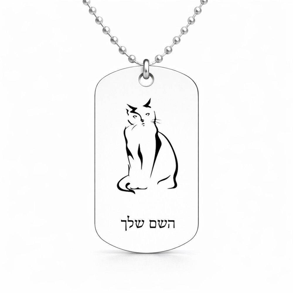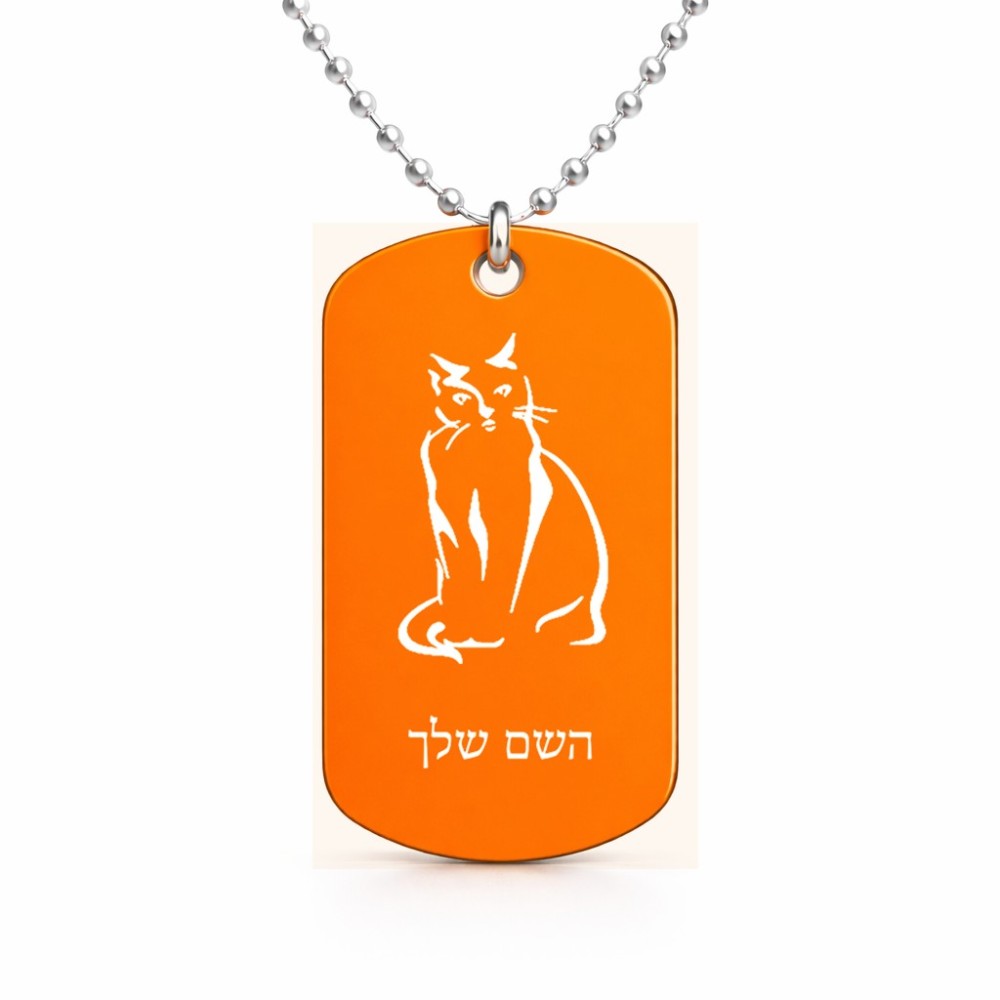 שרשרת דיסקיט מאלומיניום בעיצוב אישי עם השם שלך בעיצוב חתול גודל הדיסקיט 2.9 × 5 ס"מ