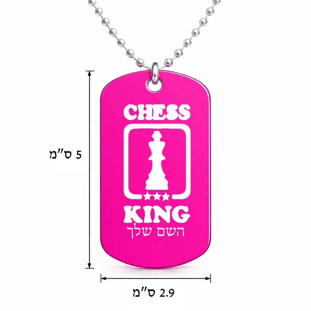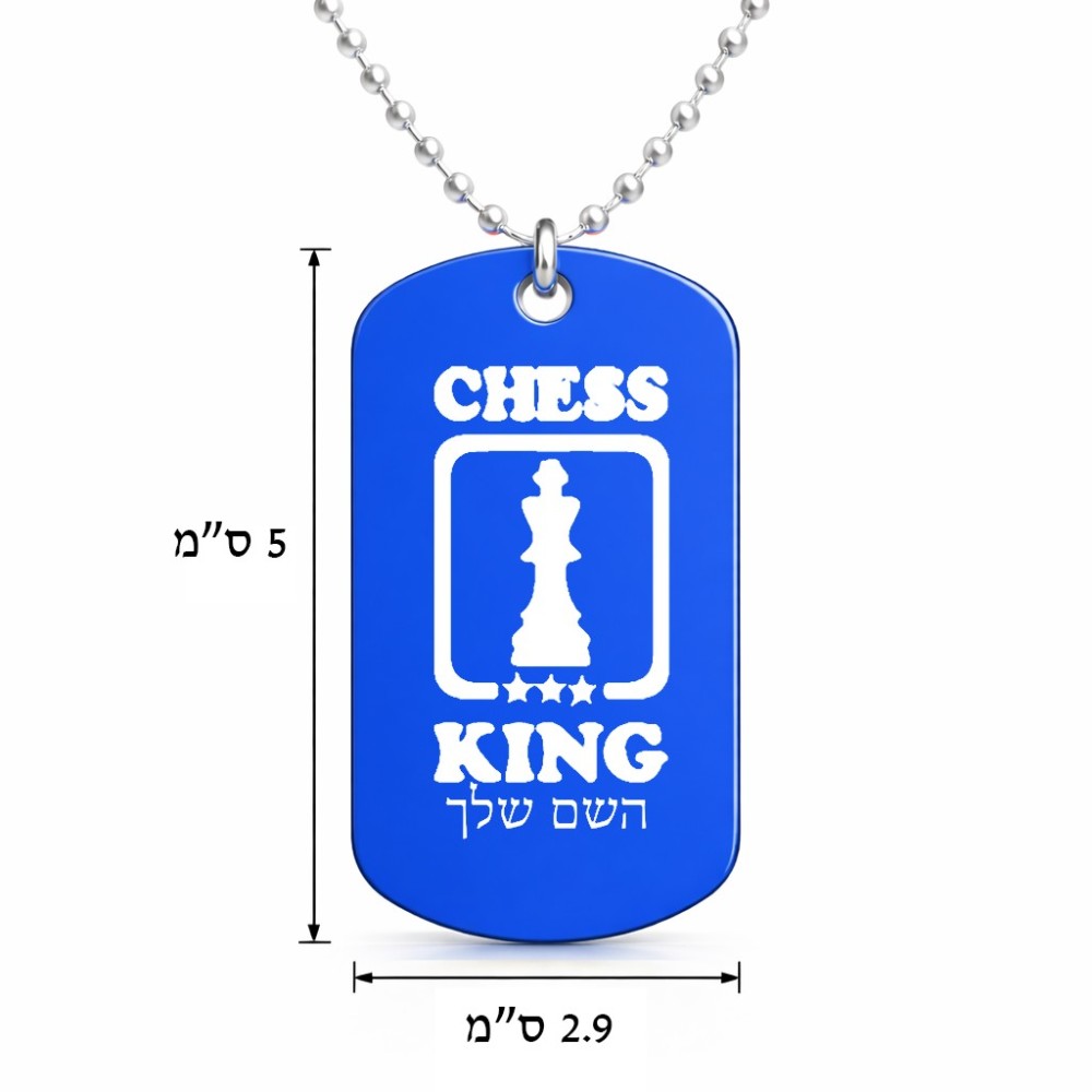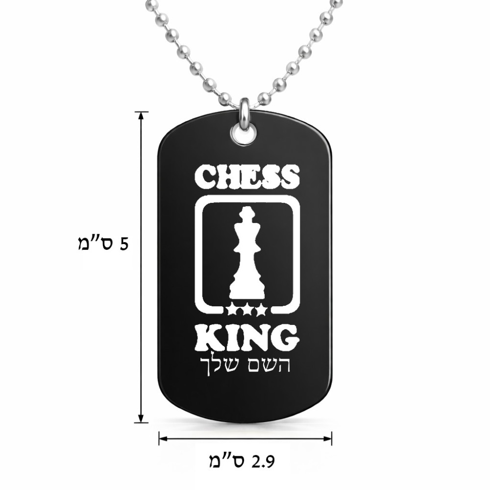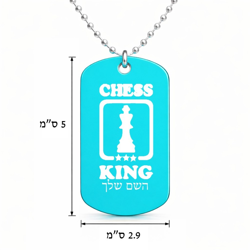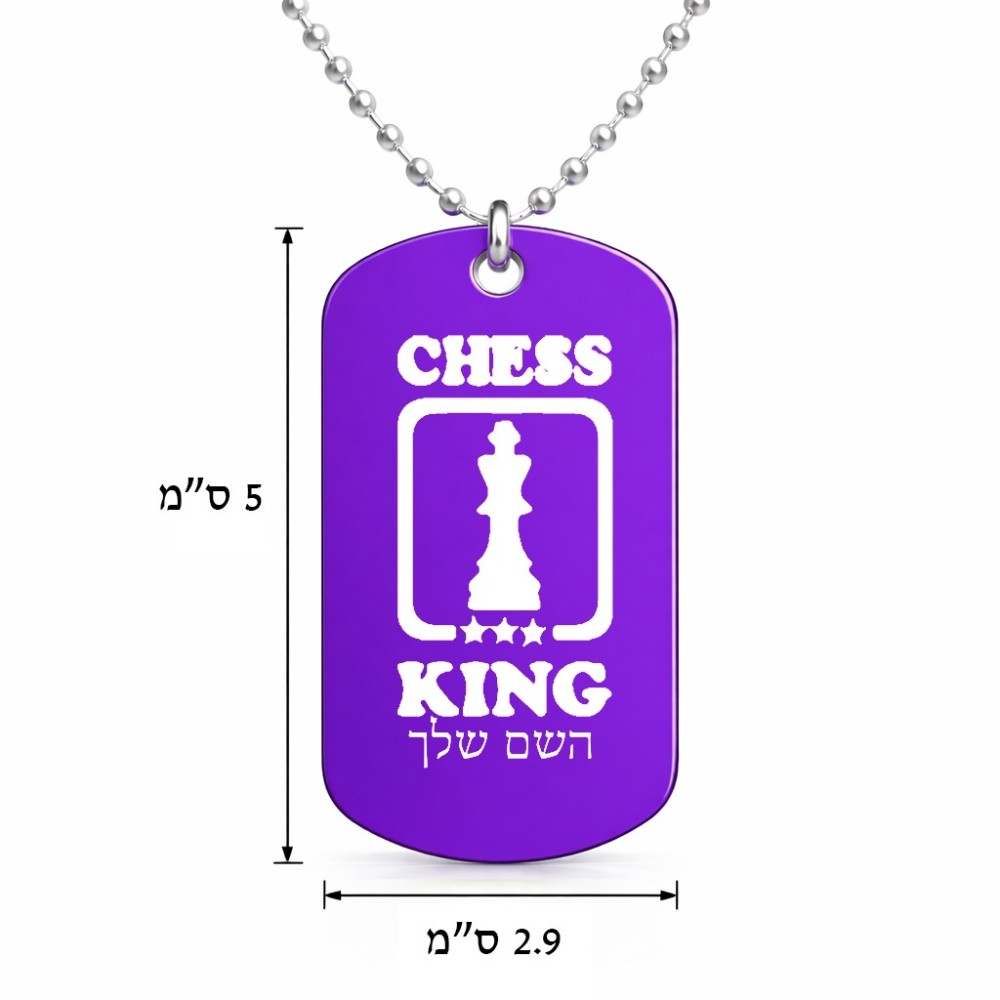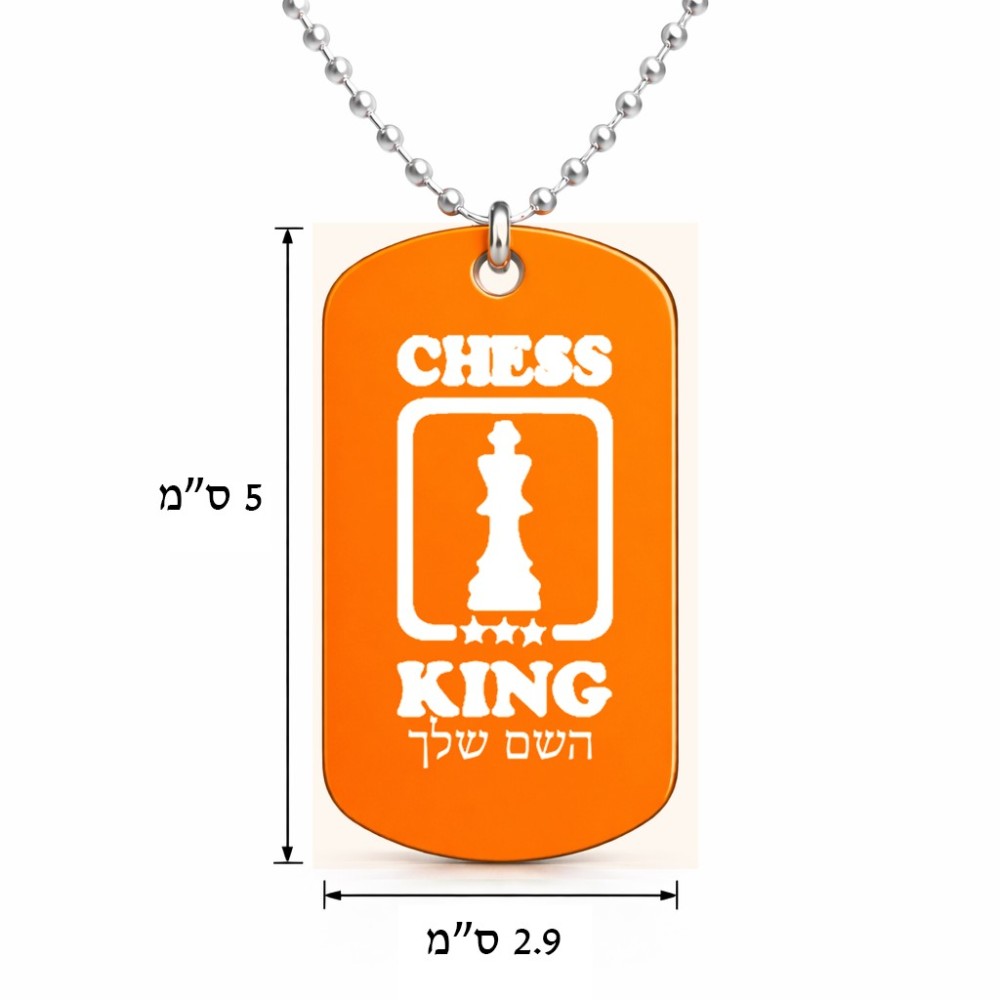 שרשרת דיסקיט מאלומיניום בעיצוב אישי עם השם שלך בעיצוב שחמט גודל הדיסקיט 2.9 × 5 ס"מ. את השם המבוקש ניתן לציין בהזמנה, אם לא צויין אנחנו ניצור קשר לבירור.