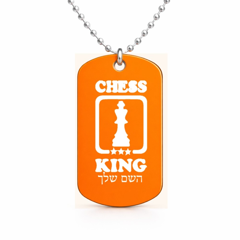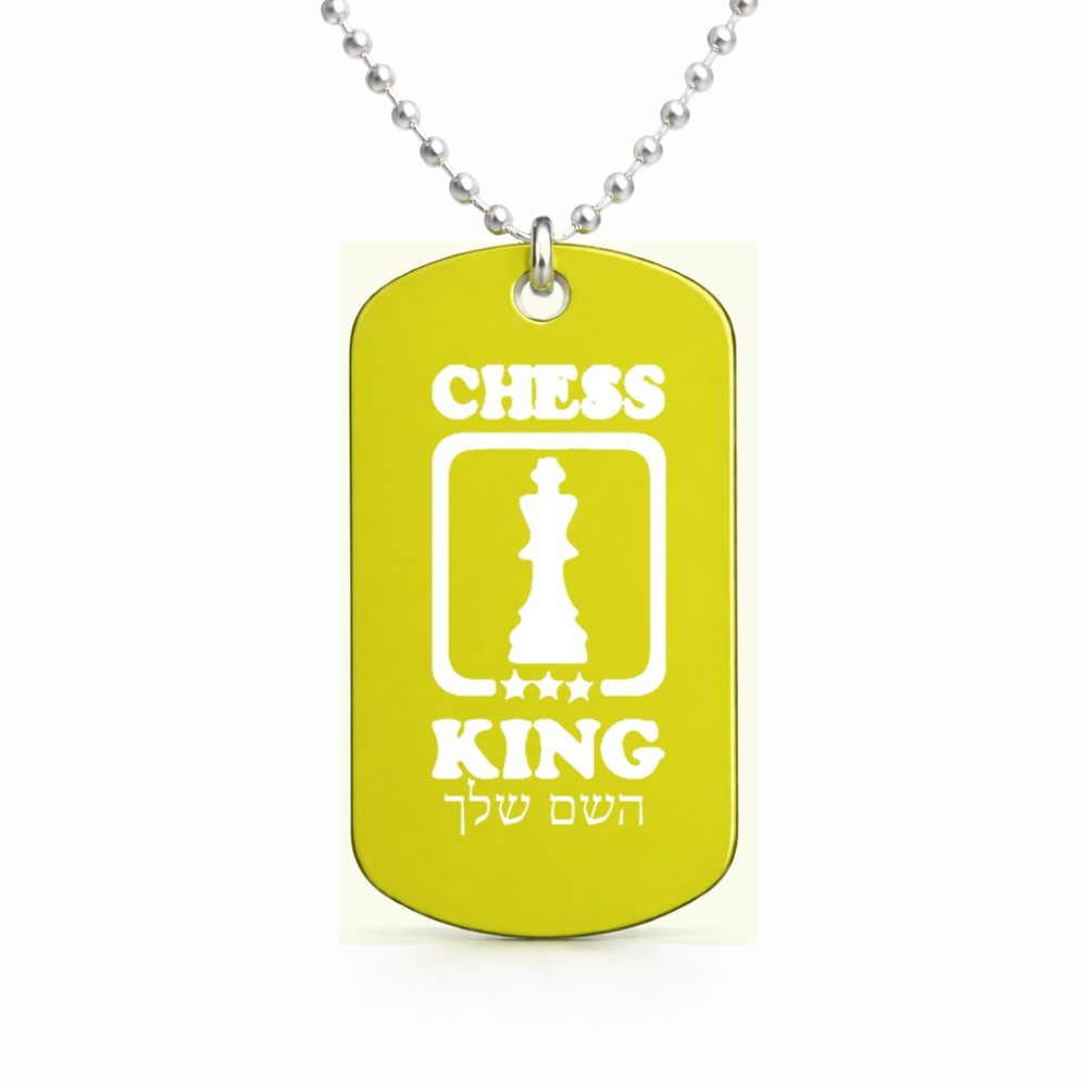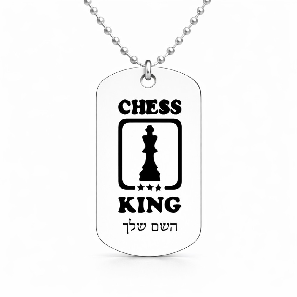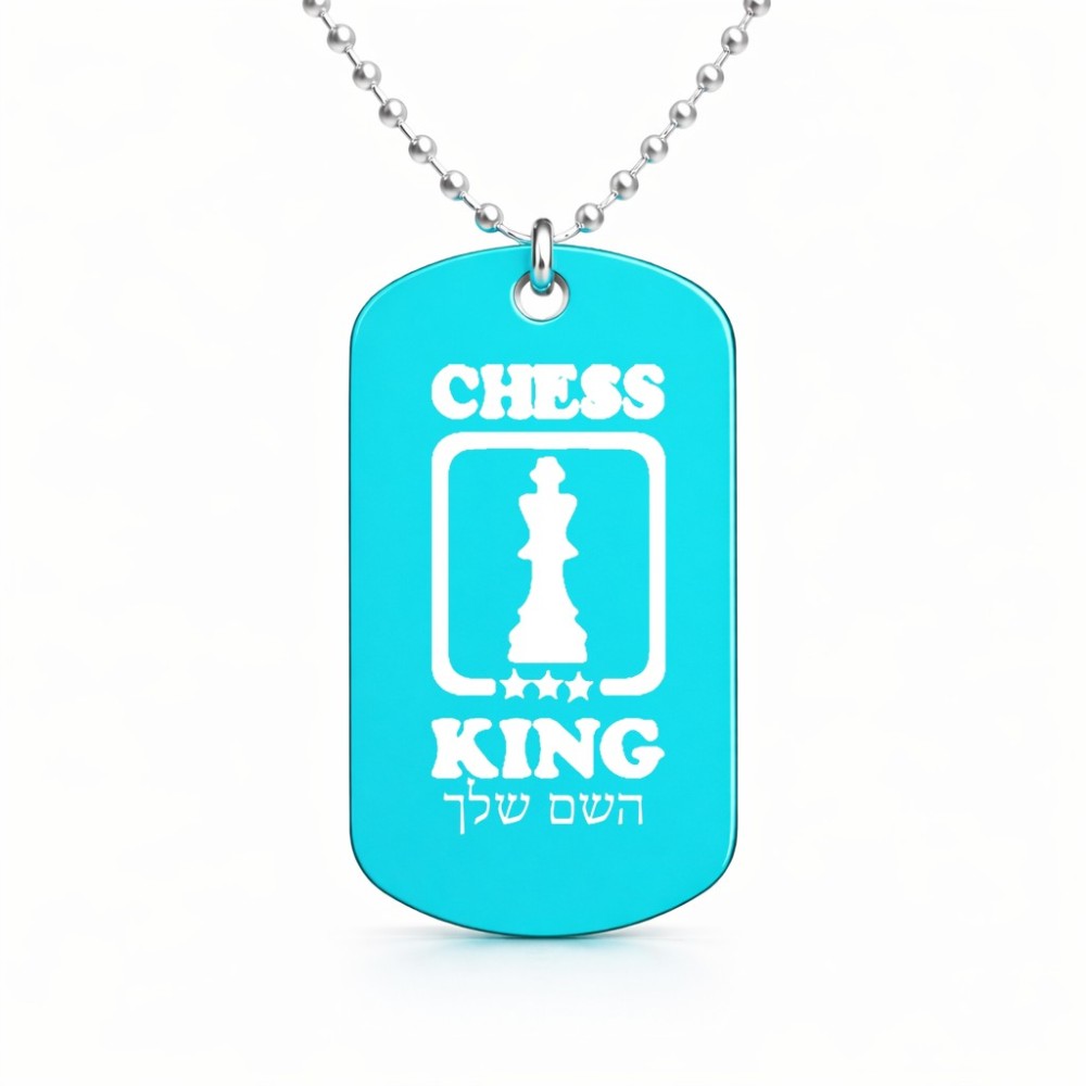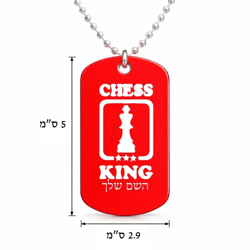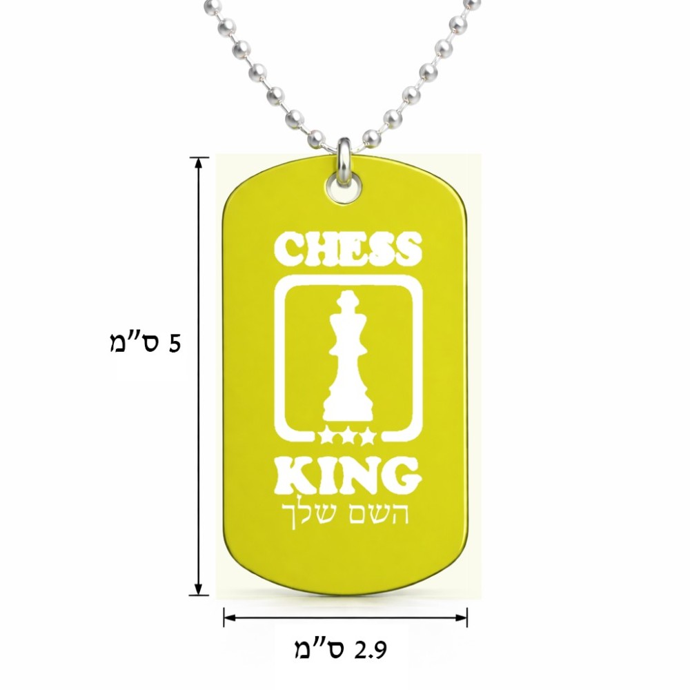 שרשרת דיסקיט מאלומיניום בעיצוב אישי עם השם שלך בעיצוב שחמט גודל הדיסקיט 2.9 × 5 ס"מ. את השם המבוקש ניתן לציין בהזמנה, אם לא צויין אנחנו ניצור קשר לבירור.