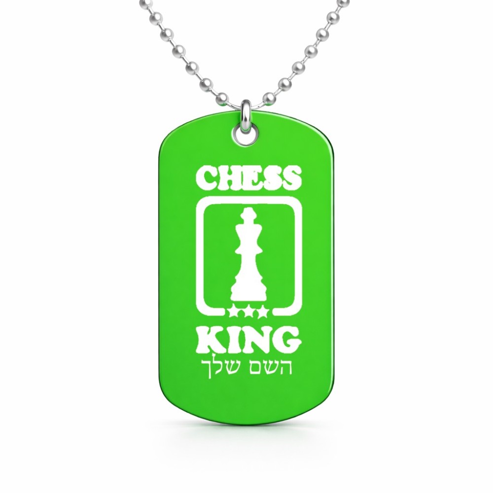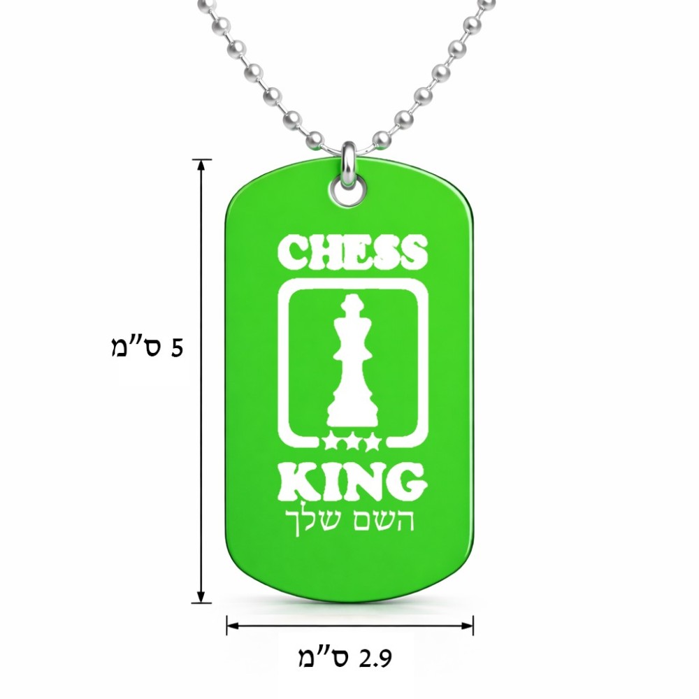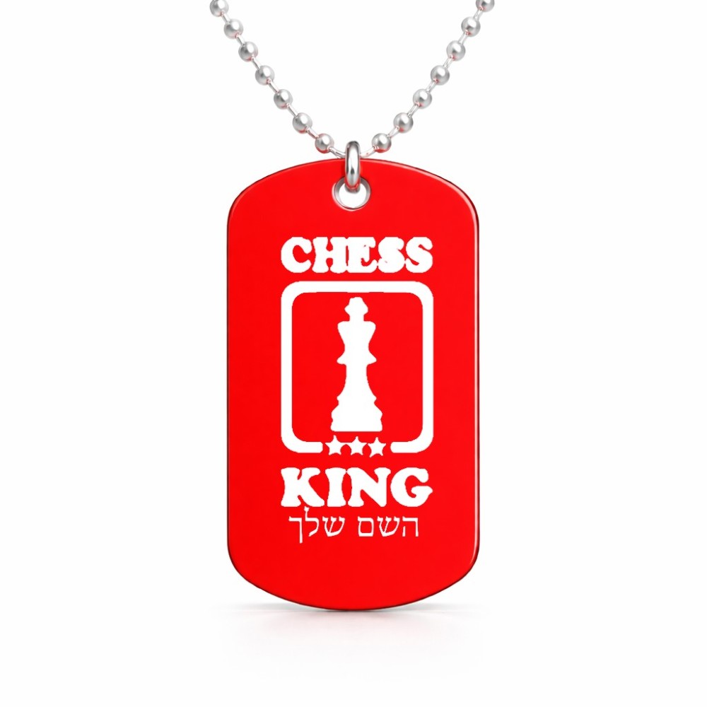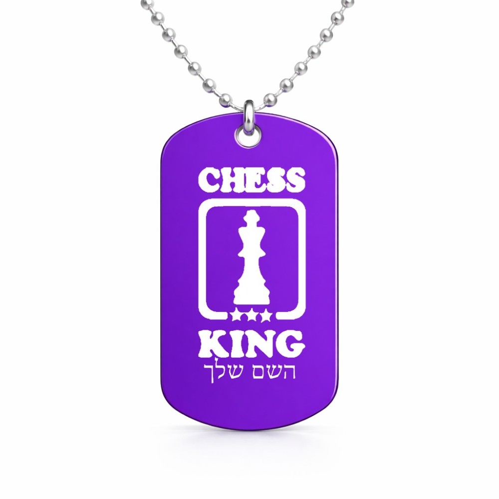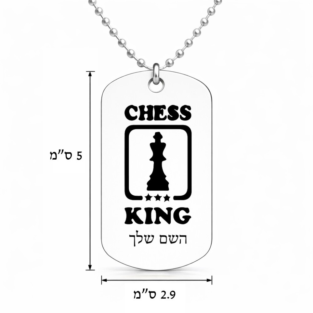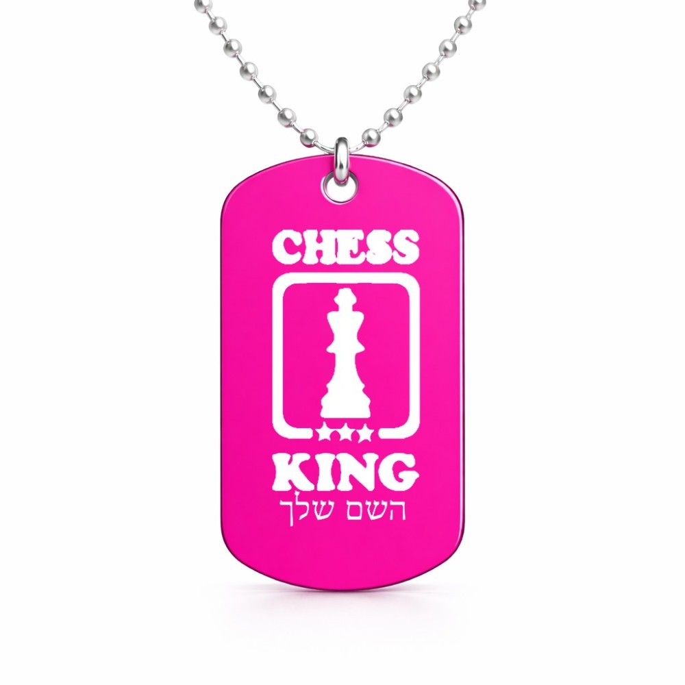 שרשרת דיסקיט מאלומיניום בעיצוב אישי עם השם שלך בעיצוב שחמט גודל הדיסקיט 2.9 × 5 ס"מ. את השם המבוקש ניתן לציין בהזמנה, אם לא צויין אנחנו ניצור קשר לבירור.