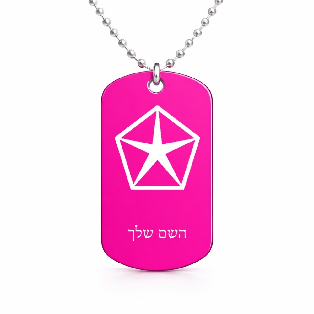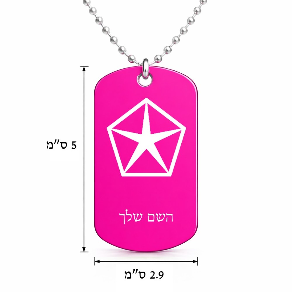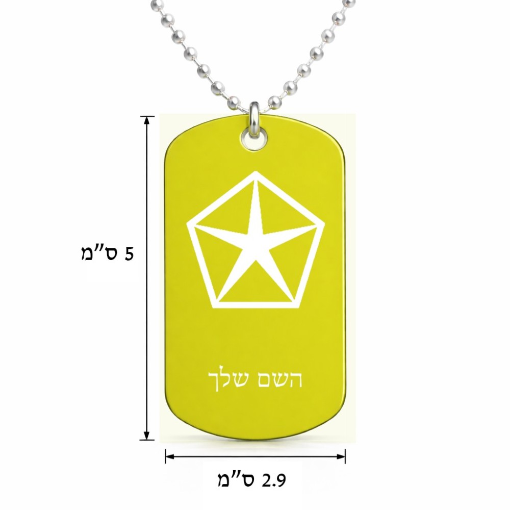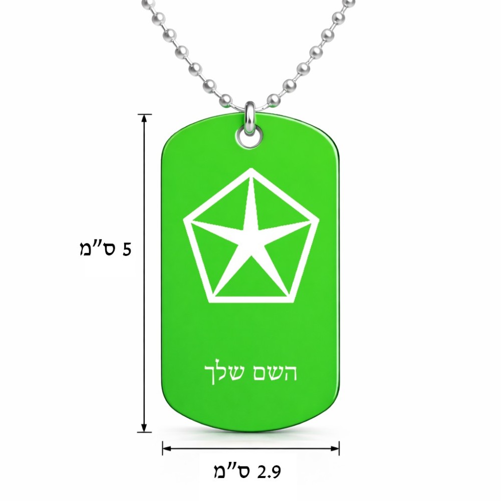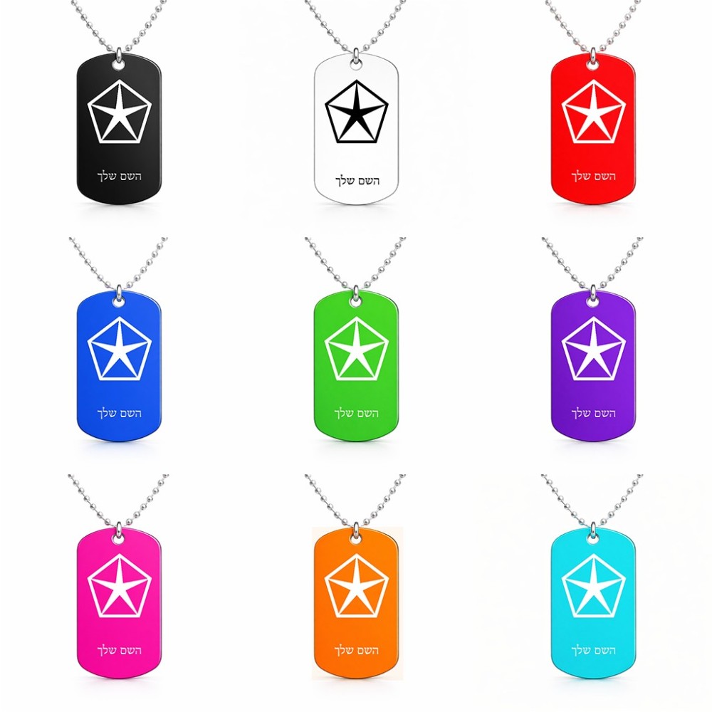 שרשרת דיסקיט מאלומיניום בעיצוב אישי עם השם שלך בעיצוב קרייזלר גודל הדיסקיט 2.9 × 5 ס"מ. את השם המבוקש ניתן לציין בהזמנה, אם לא צויין אנחנו ניצור קשר לבירור.