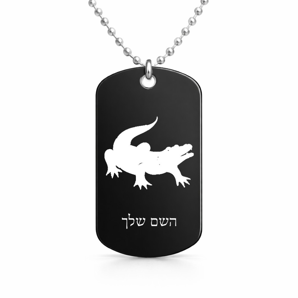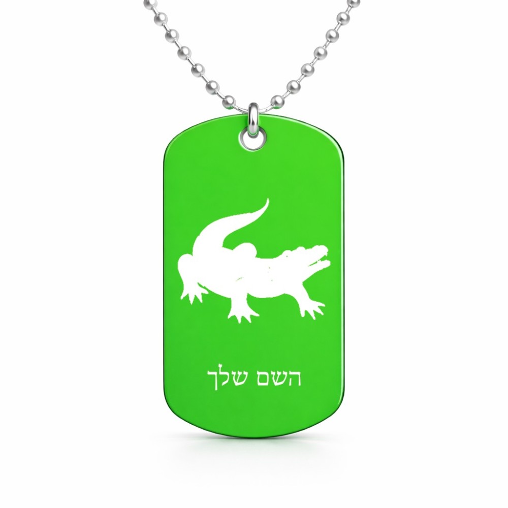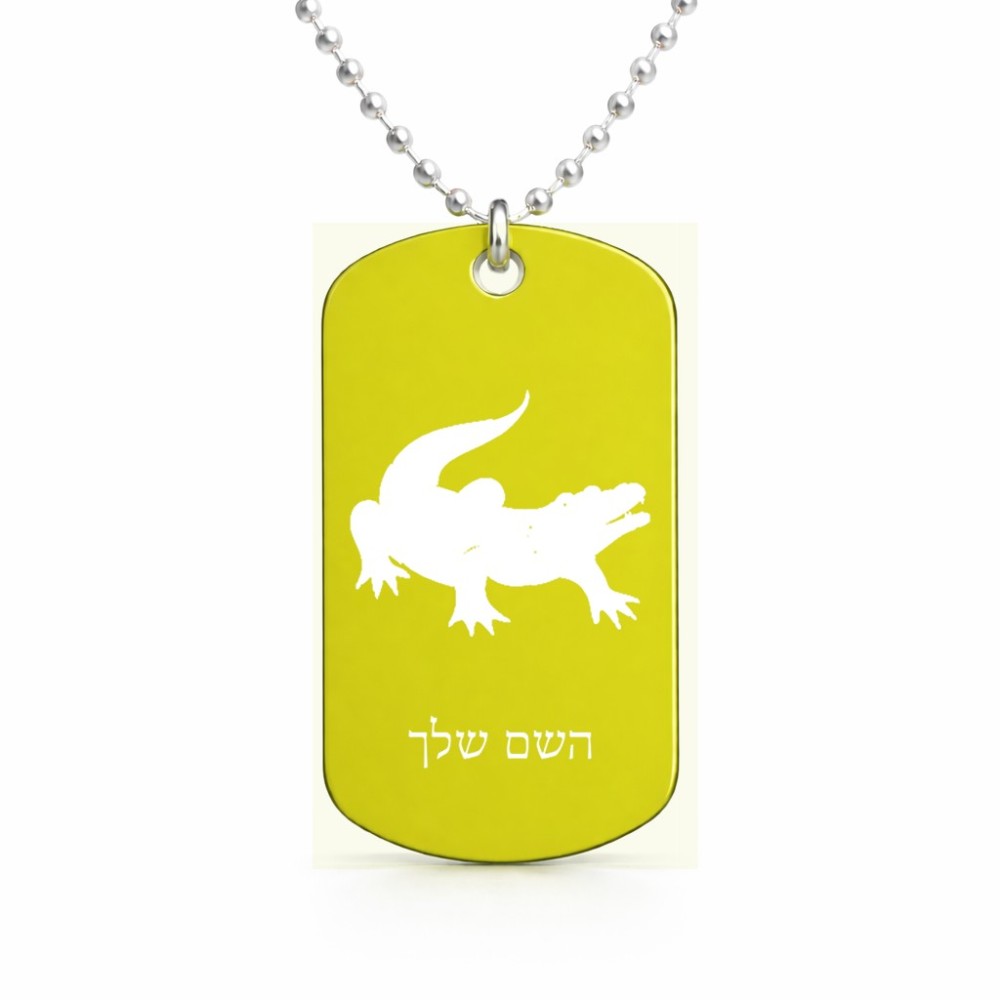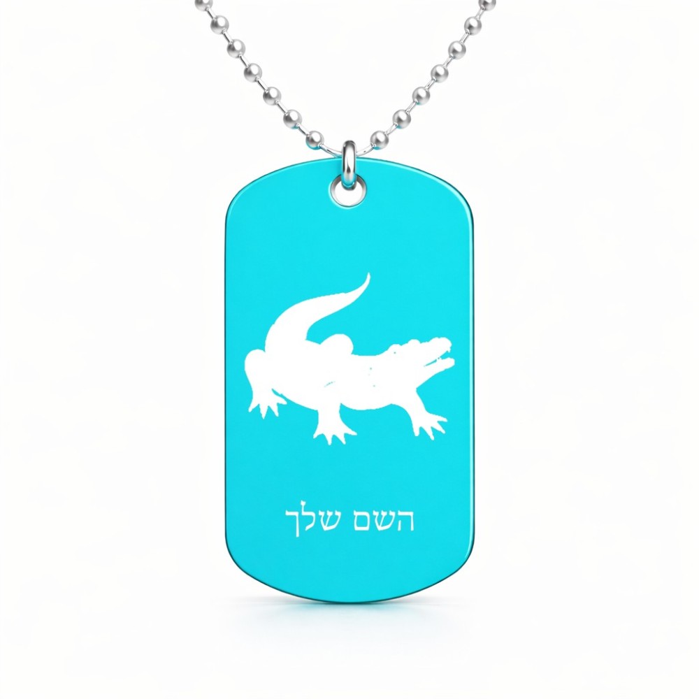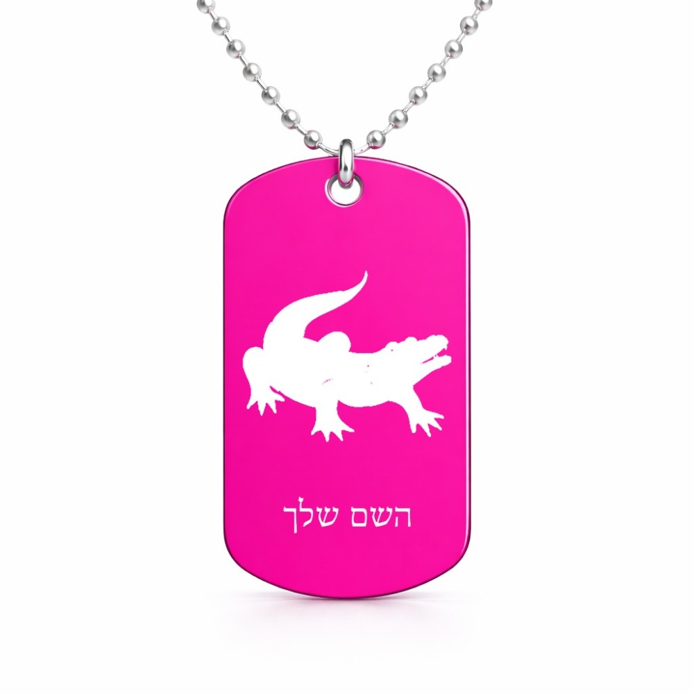 שרשרת דיסקיט מאלומיניום בעיצוב אישי עם השם שלך בעיצוב תנין גודל הדיסקיט 2.9 × 5 ס"מ. את השם המבוקש ניתן לציין בהזמנה, אם לא צויין אנחנו ניצור קשר לבירור.