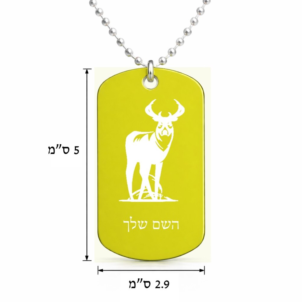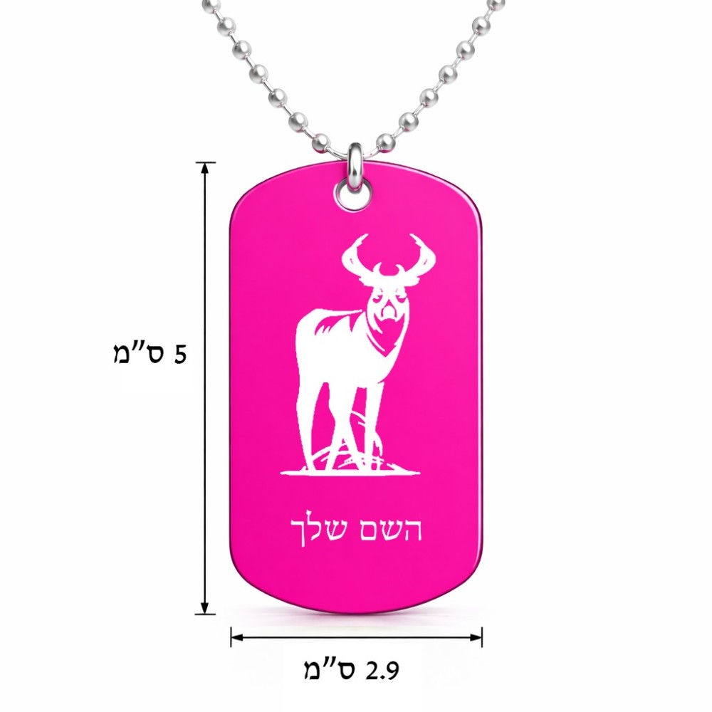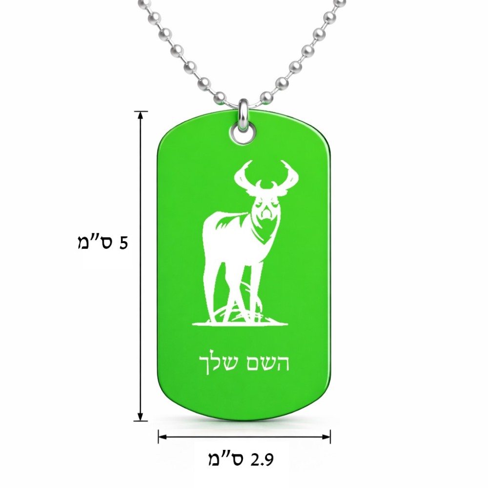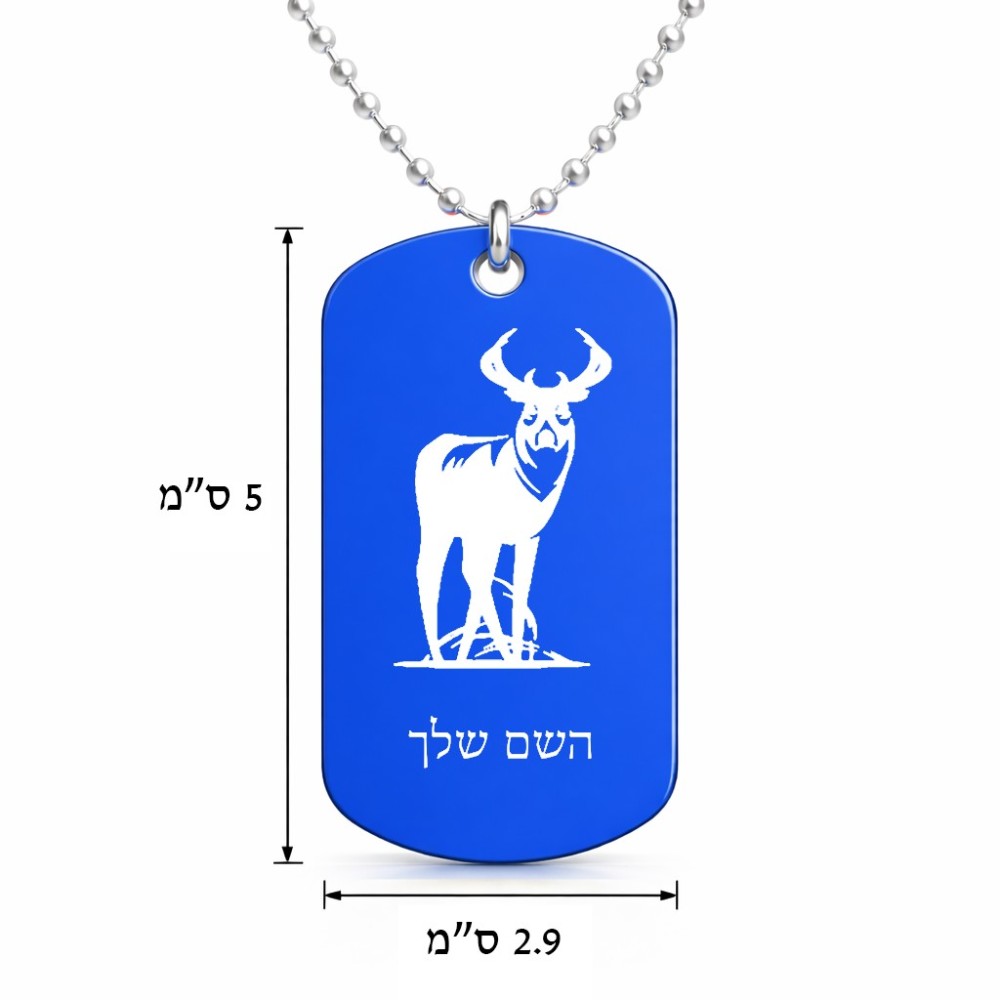 שרשרת דיסקיט מאלומיניום בעיצוב אישי עם השם שלך בעיצוב צבי גודל הדיסקיט 2.9 × 5 ס"מ. את השם המבוקש ניתן לציין בהזמנה, אם לא צויין אנחנו ניצור קשר לבירור.
