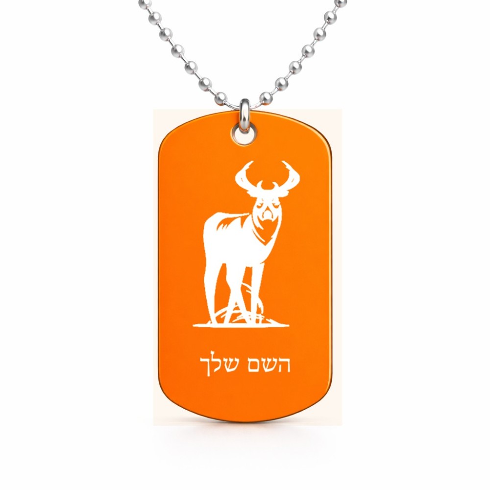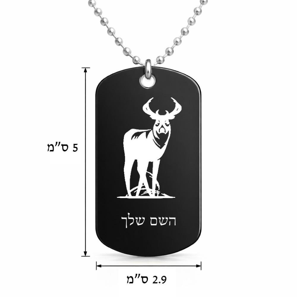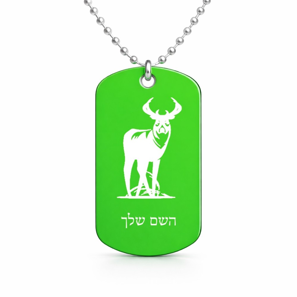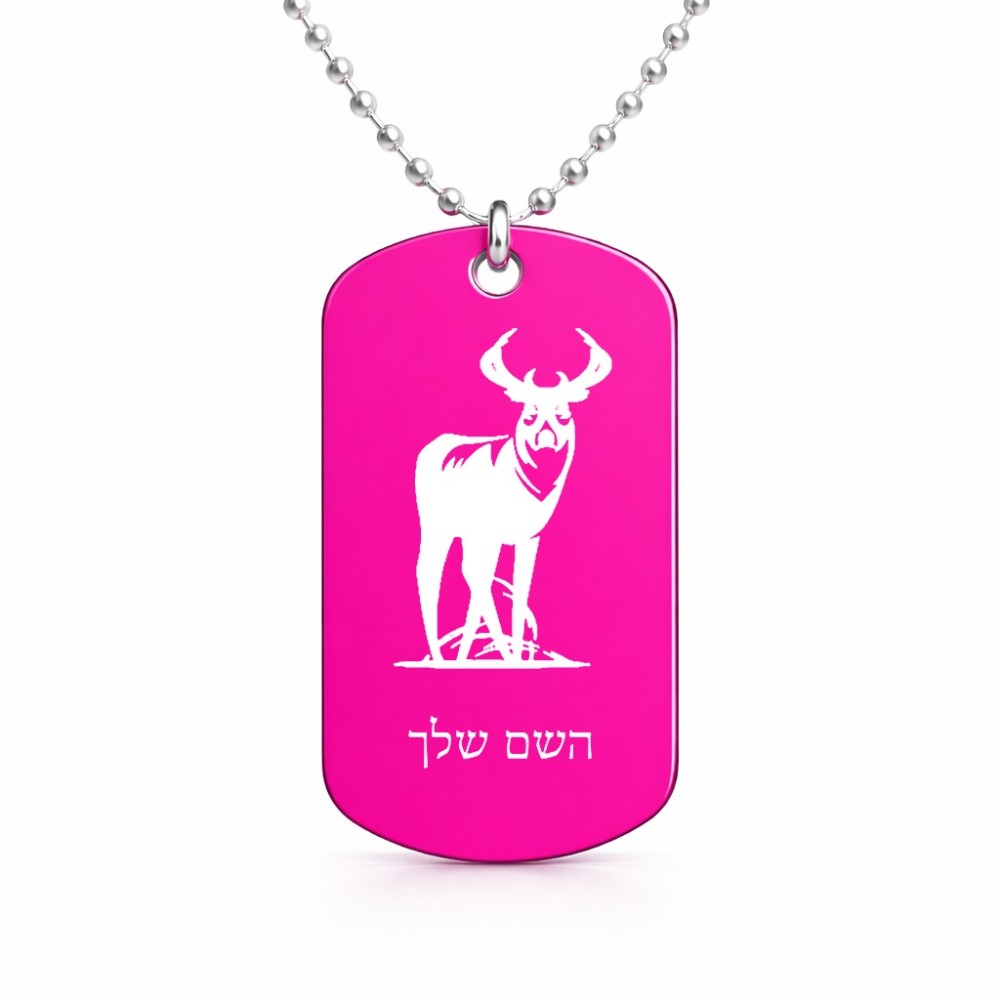 שרשרת דיסקיט מאלומיניום בעיצוב אישי עם השם שלך בעיצוב צבי גודל הדיסקיט 2.9 × 5 ס"מ. את השם המבוקש ניתן לציין בהזמנה, אם לא צויין אנחנו ניצור קשר לבירור.