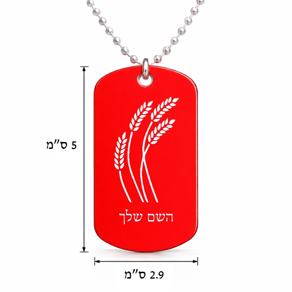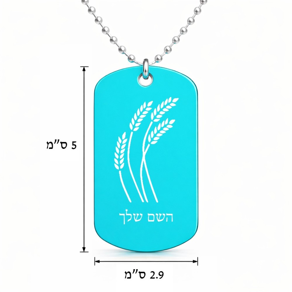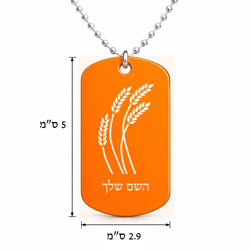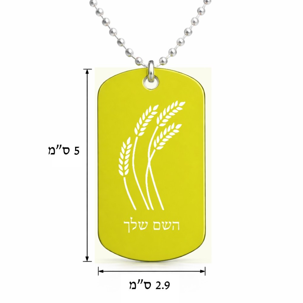 שרשרת דיסקיט מאלומיניום בעיצוב אישי עם השם שלך בעיצוב חיטה גלית זהב גודל הדיסקיט 2.9 × 5 ס"מ. את השם המבוקש ניתן לציין בהזמנה, אם לא צויין אנחנו ניצור קשר לבירור.