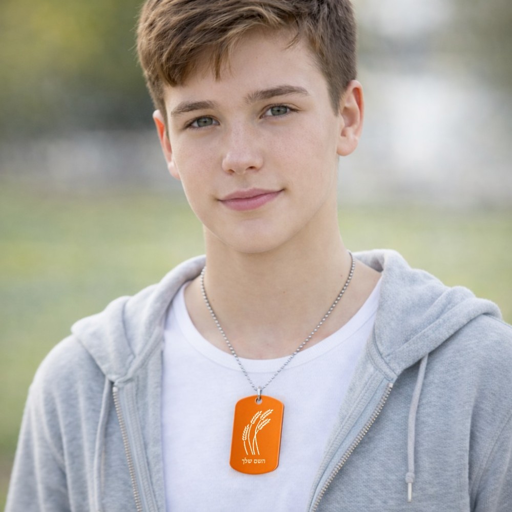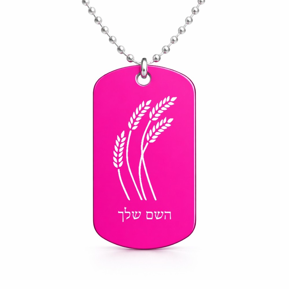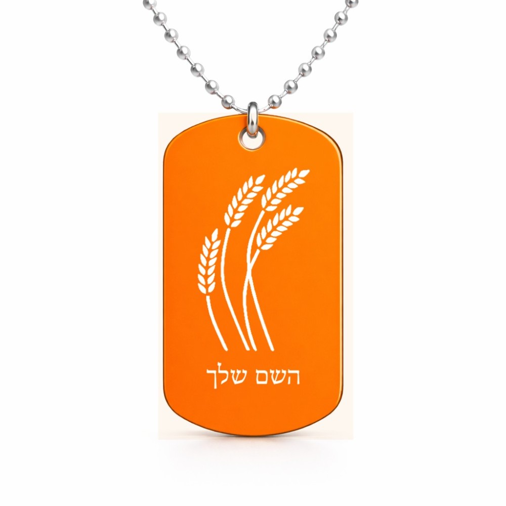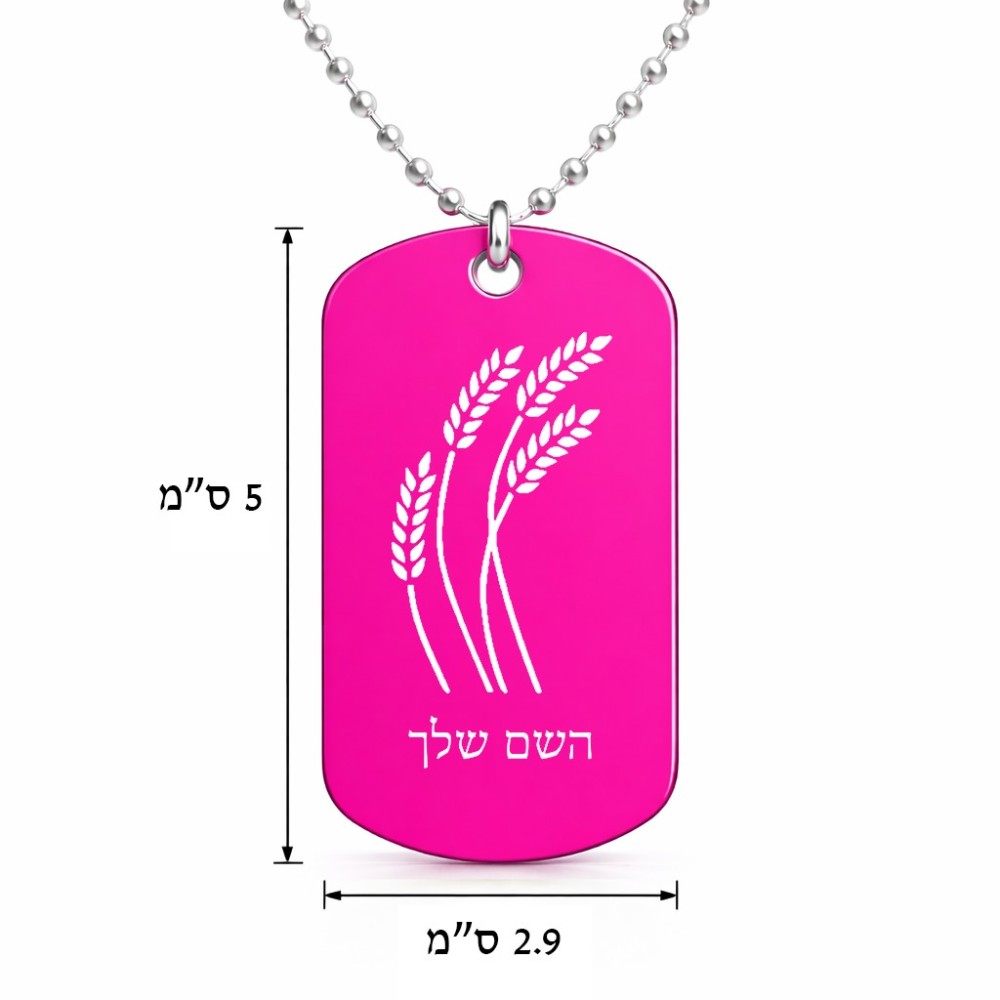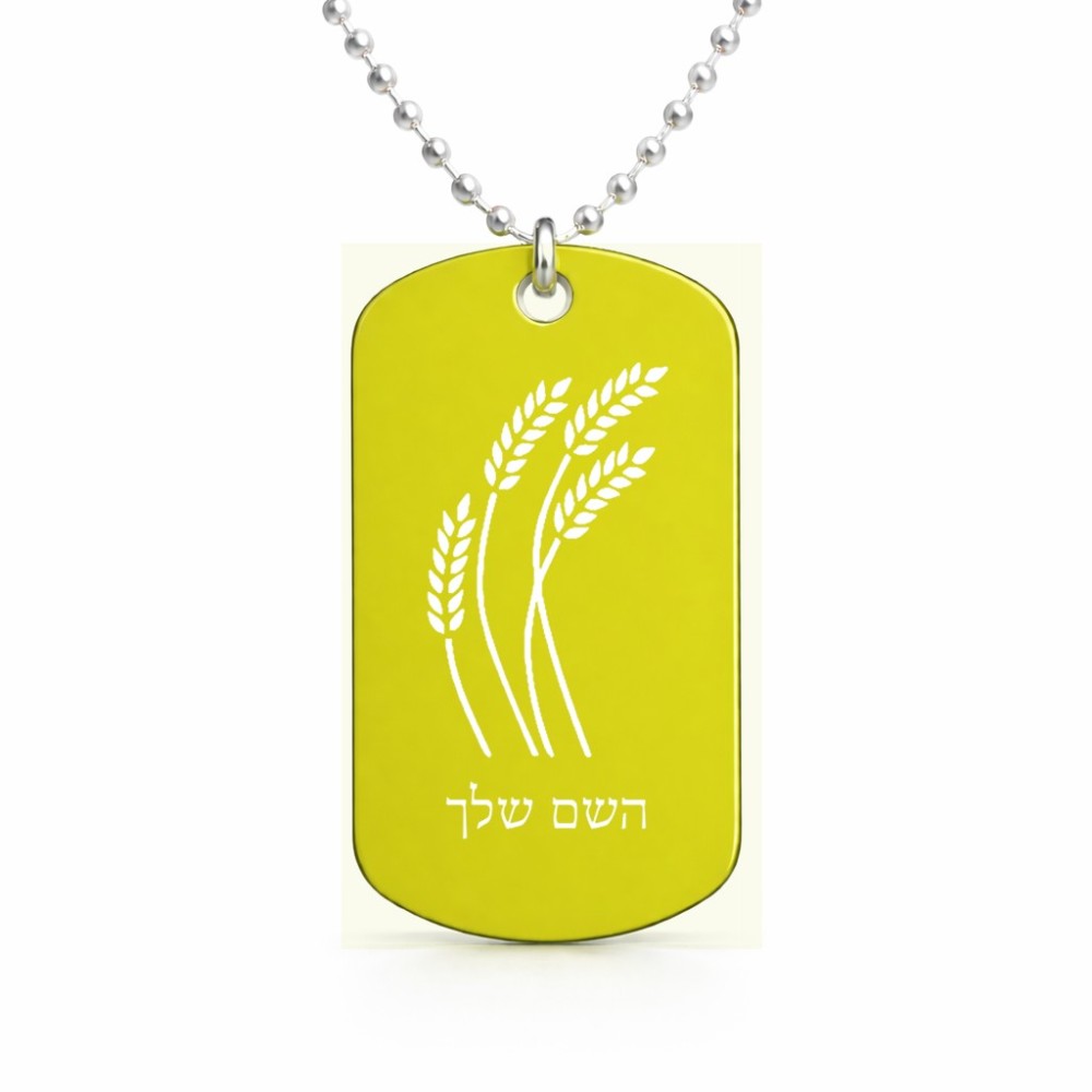 שרשרת דיסקיט מאלומיניום בעיצוב אישי עם השם שלך בעיצוב חיטה גלית זהב גודל הדיסקיט 2.9 × 5 ס"מ. את השם המבוקש ניתן לציין בהזמנה, אם לא צויין אנחנו ניצור קשר לבירור.