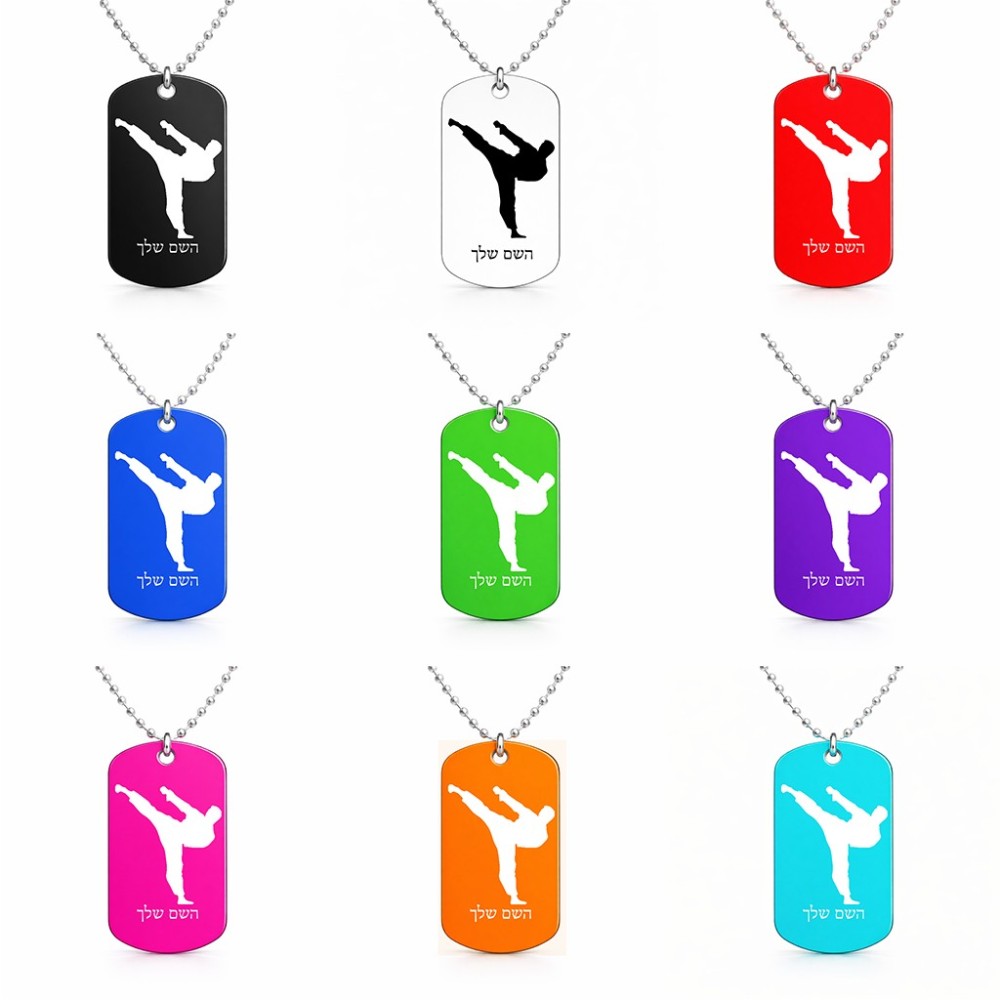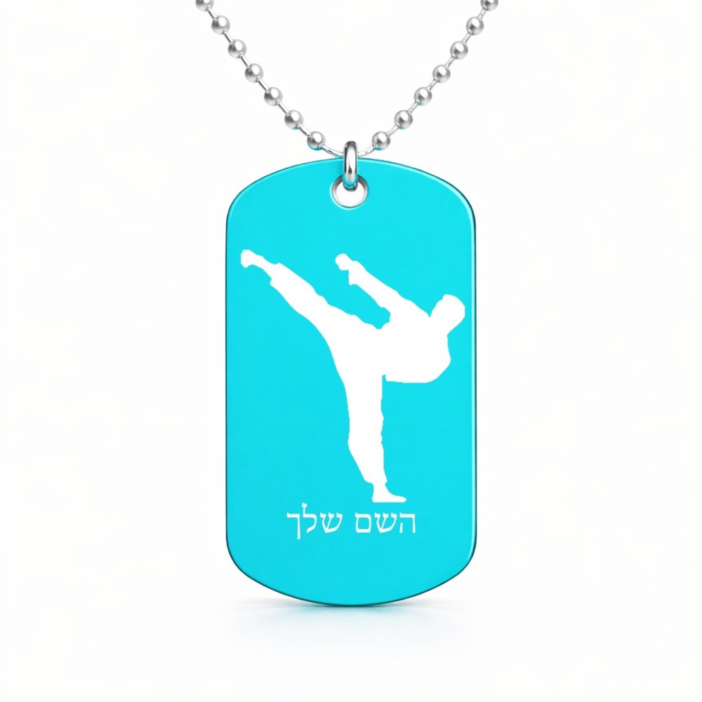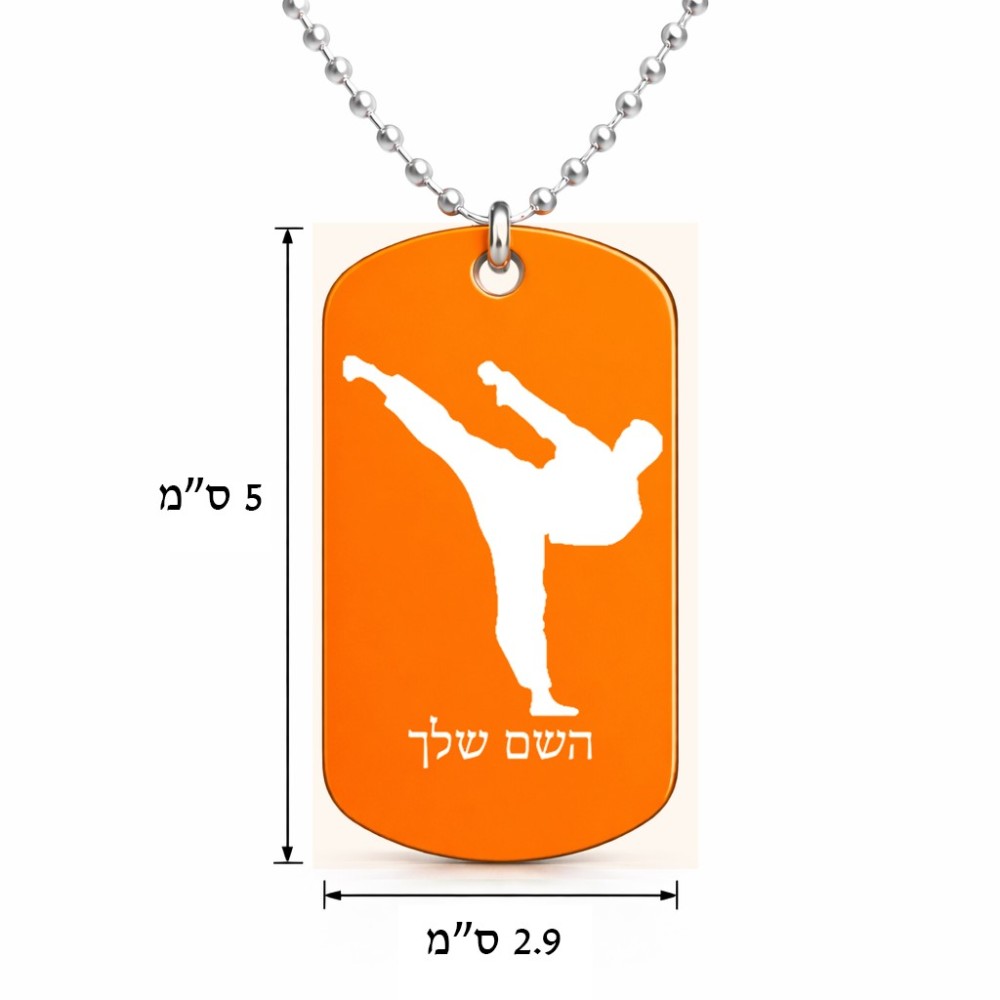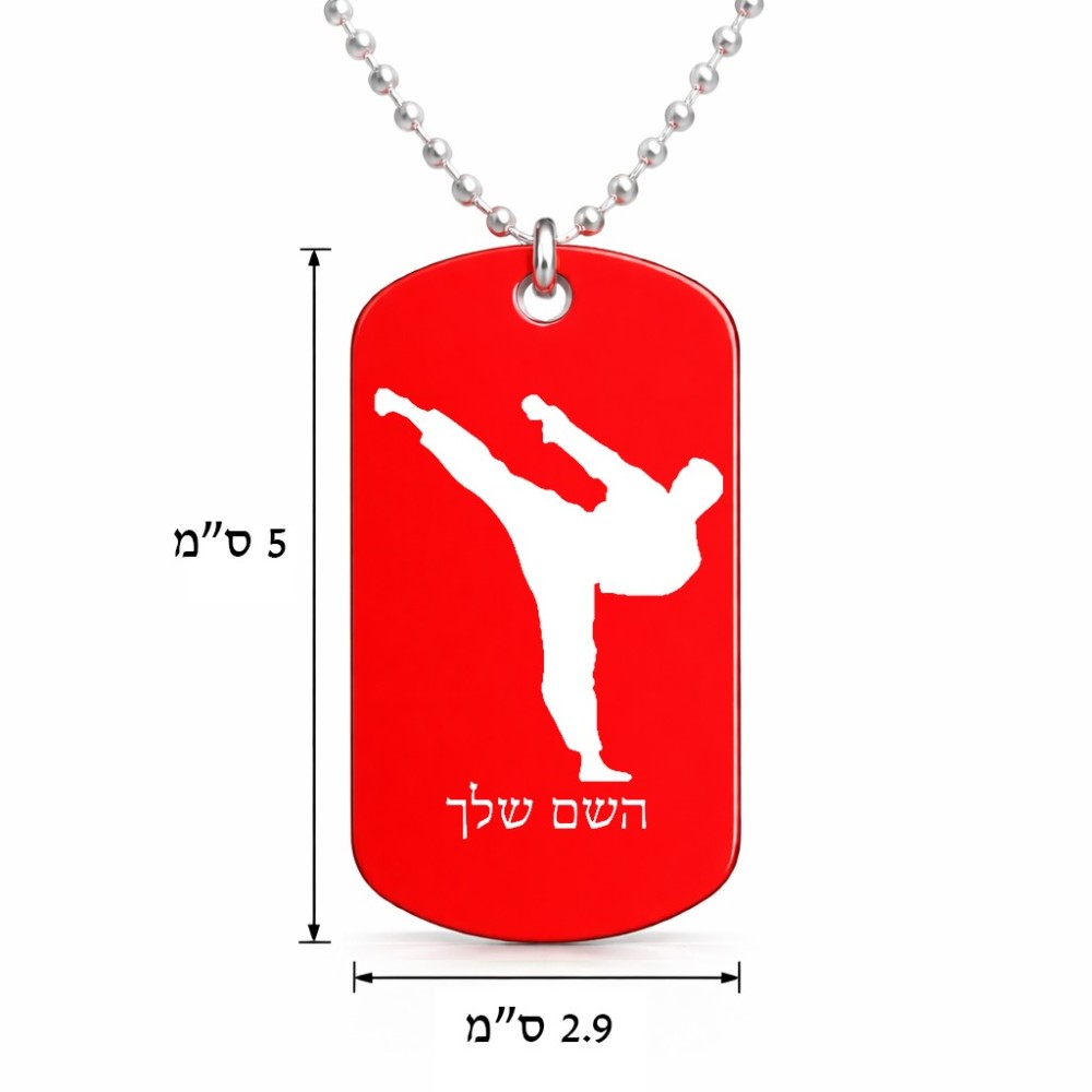 שרשרת דיסקיט מאלומיניום בעיצוב אישי עם השם שלך בעיצוב קרטה גודל הדיסקיט 2.9 × 5 ס"מ. את השם המבוקש ניתן לציין בהזמנה, אם לא צויין אנחנו ניצור קשר לבירור.