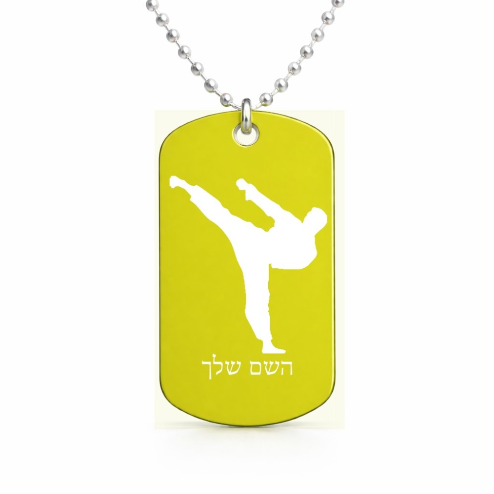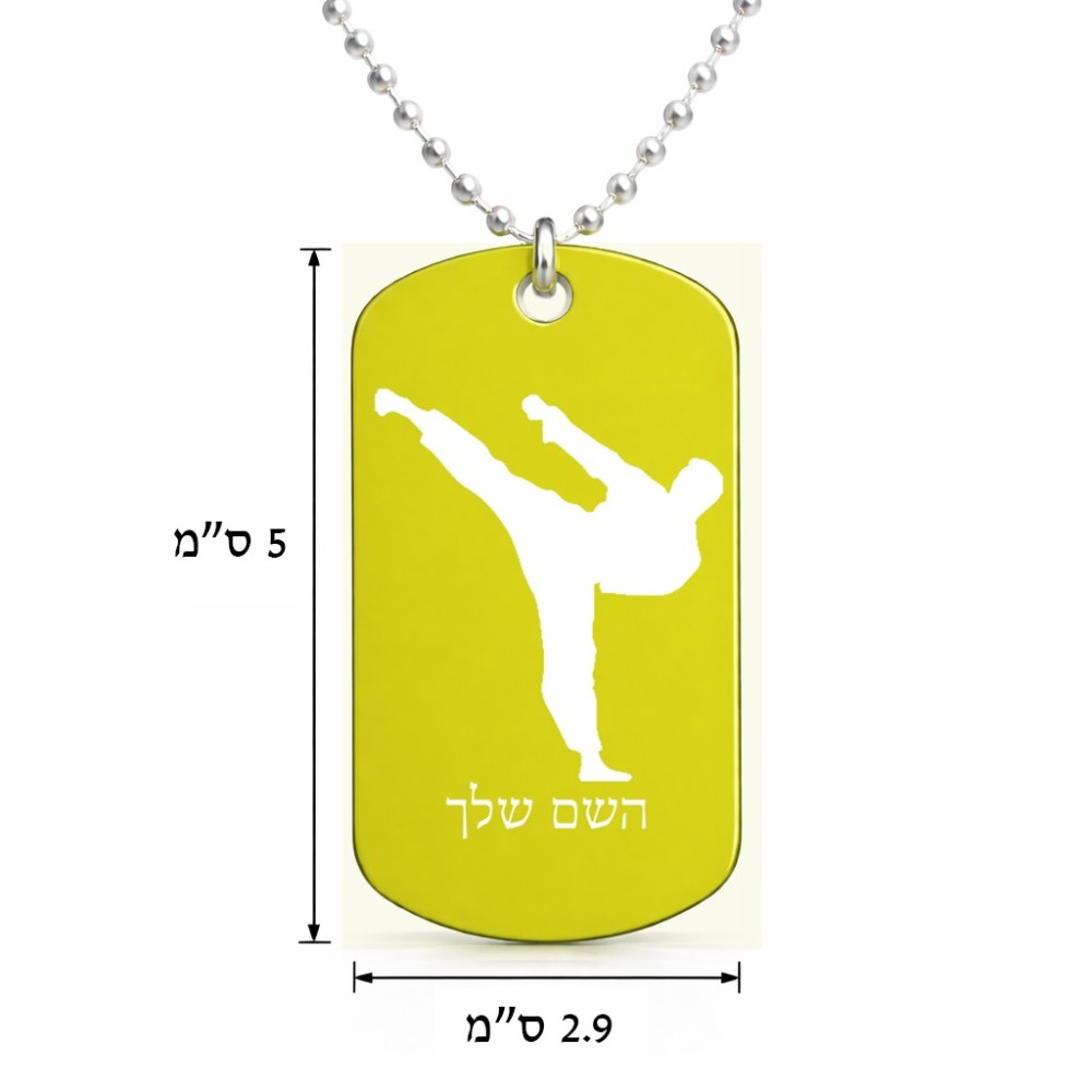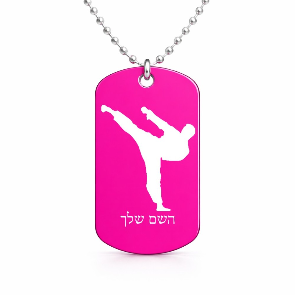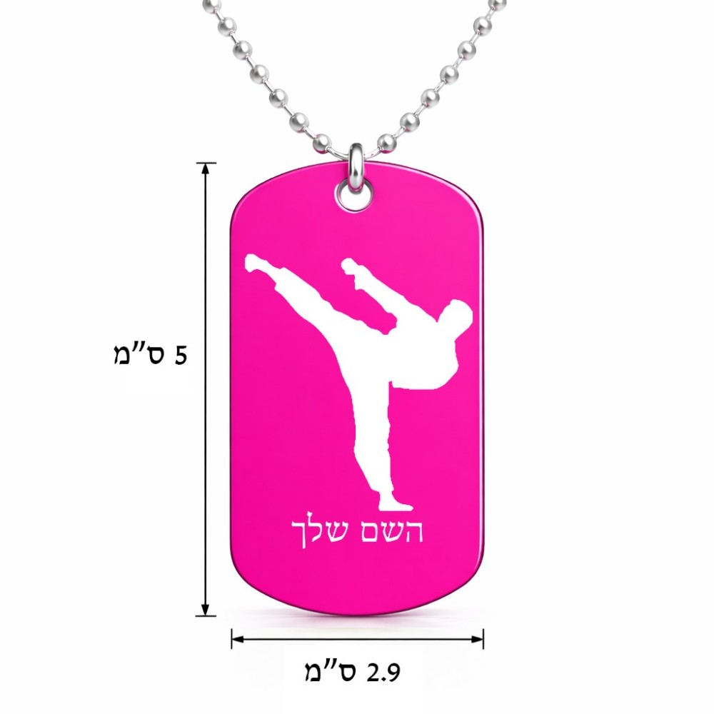 שרשרת דיסקיט מאלומיניום בעיצוב אישי עם השם שלך בעיצוב קרטה גודל הדיסקיט 2.9 × 5 ס"מ. את השם המבוקש ניתן לציין בהזמנה, אם לא צויין אנחנו ניצור קשר לבירור.