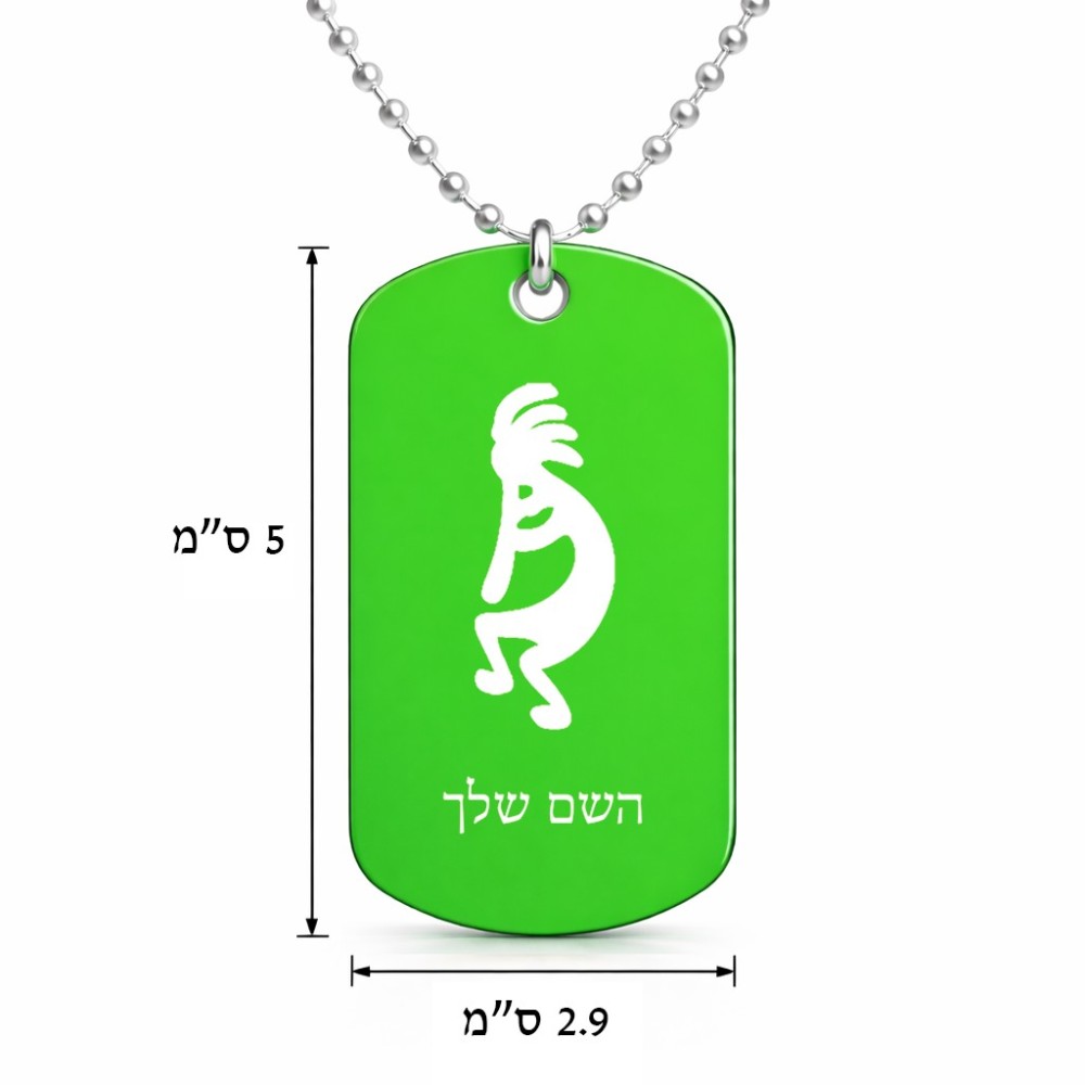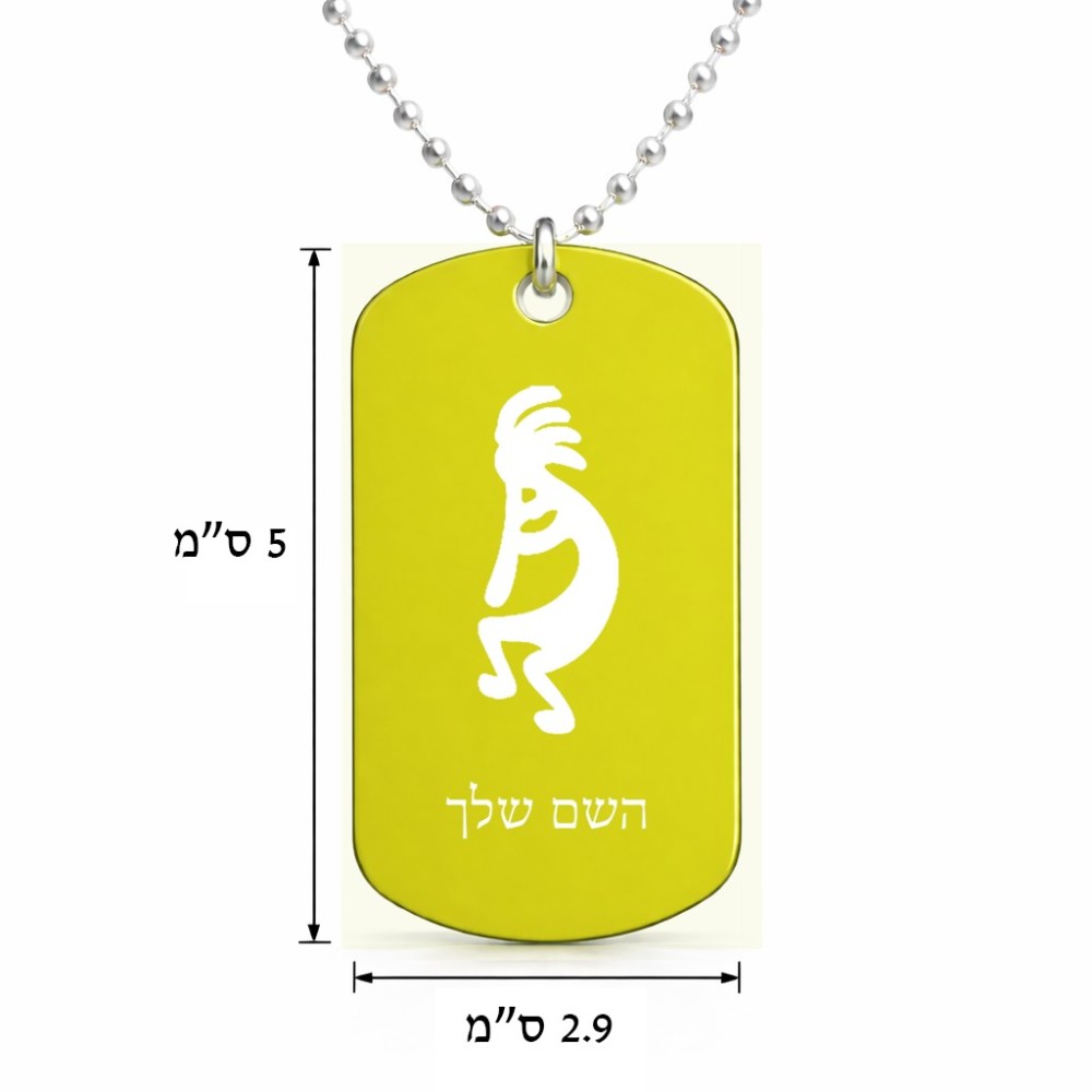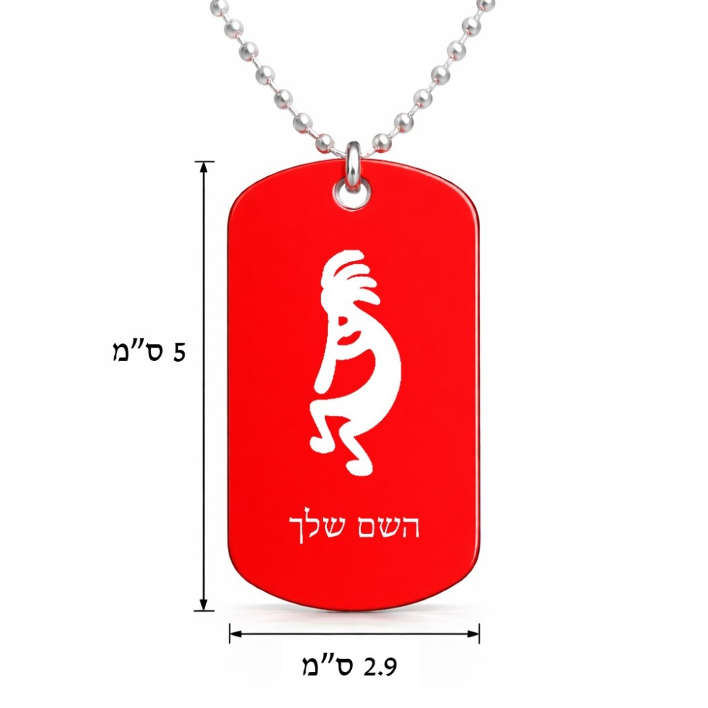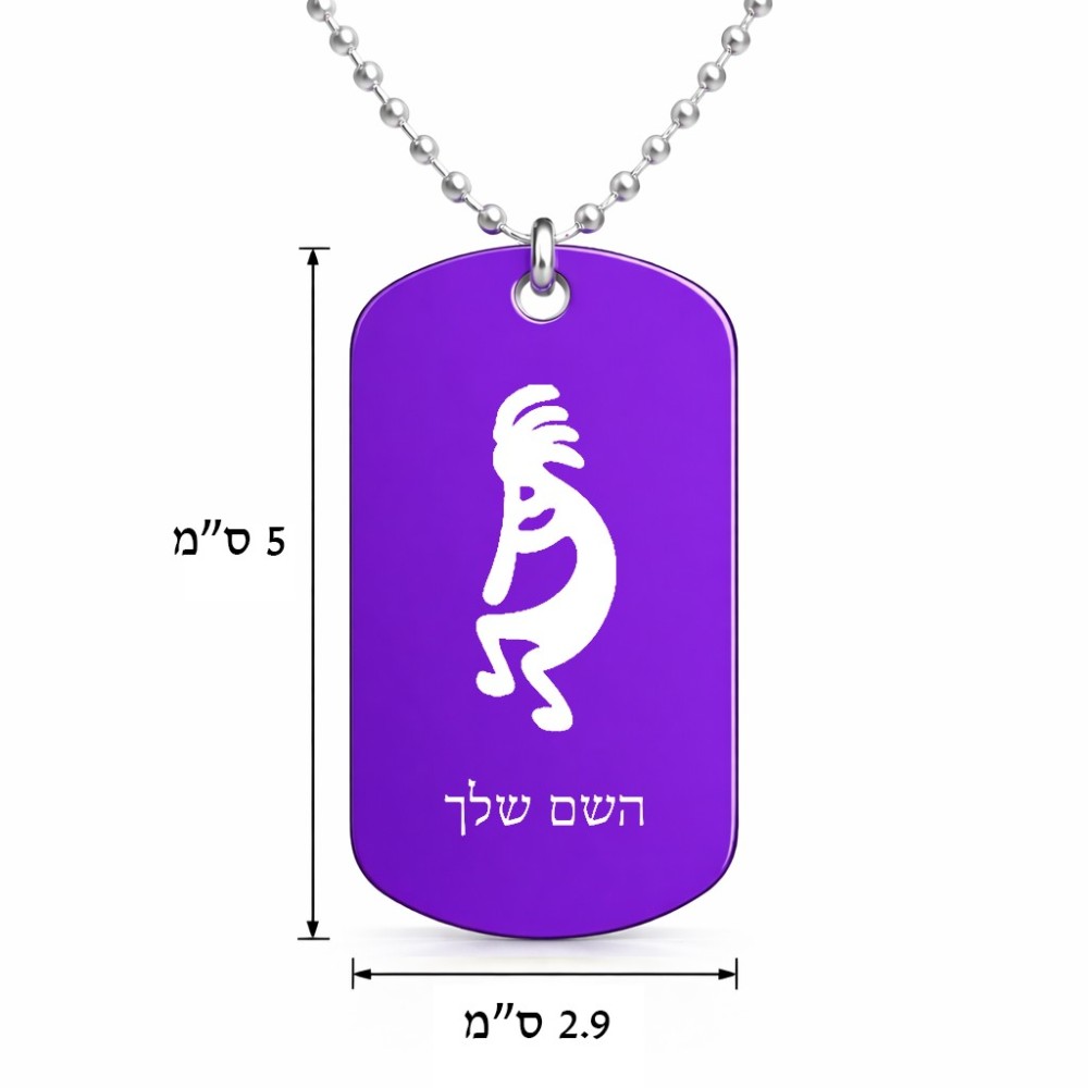 שרשרת דיסקיט מאלומיניום בעיצוב אישי עם השם שלך בעיצוב קוקופלי גודל הדיסקיט 2.9 × 5 ס"מ. את השם המבוקש ניתן לציין בהזמנה, אם לא צויין אנחנו ניצור קשר לבירור.
