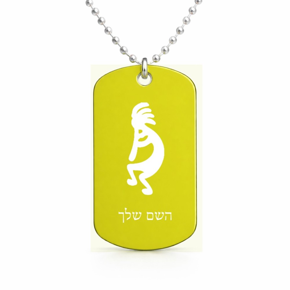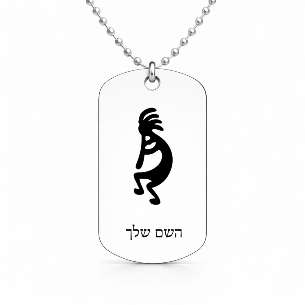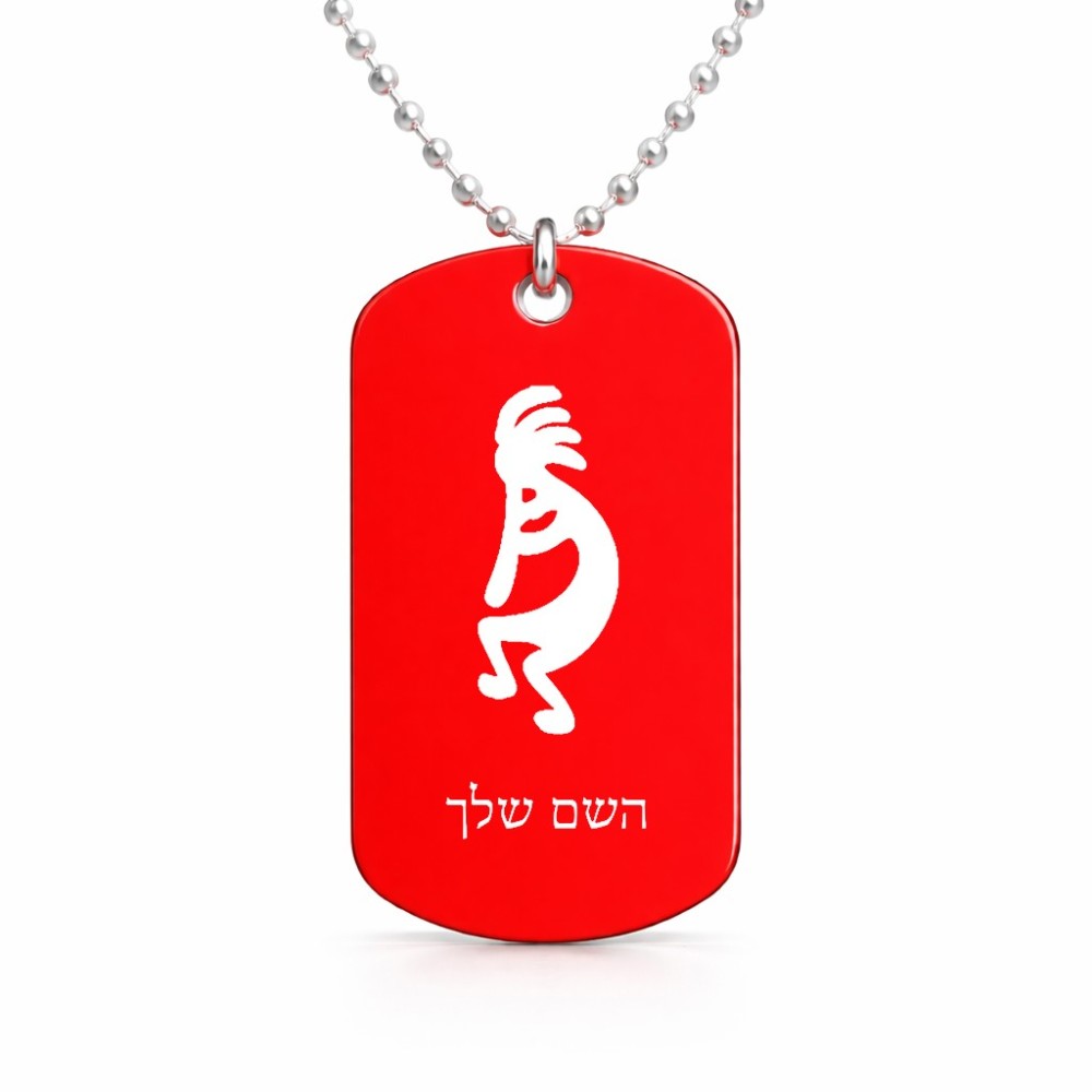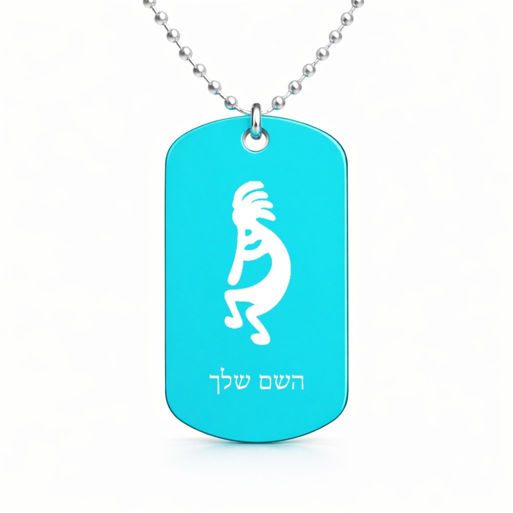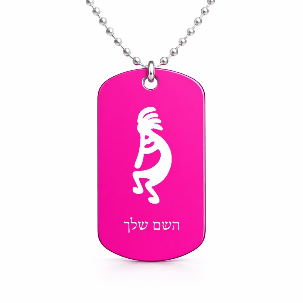 שרשרת דיסקיט מאלומיניום בעיצוב אישי עם השם שלך בעיצוב קוקופלי גודל הדיסקיט 2.9 × 5 ס"מ. את השם המבוקש ניתן לציין בהזמנה, אם לא צויין אנחנו ניצור קשר לבירור.