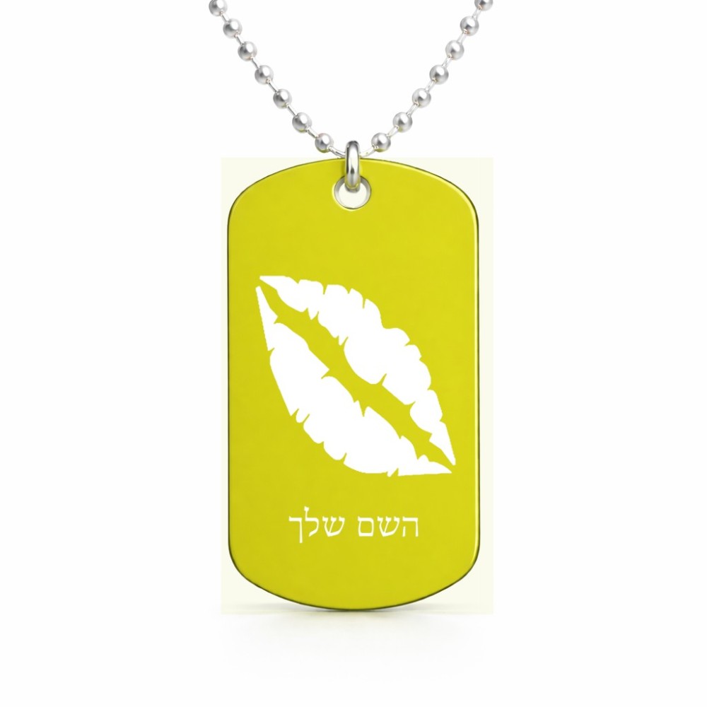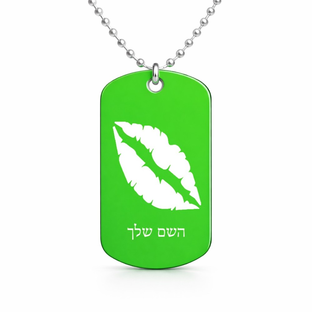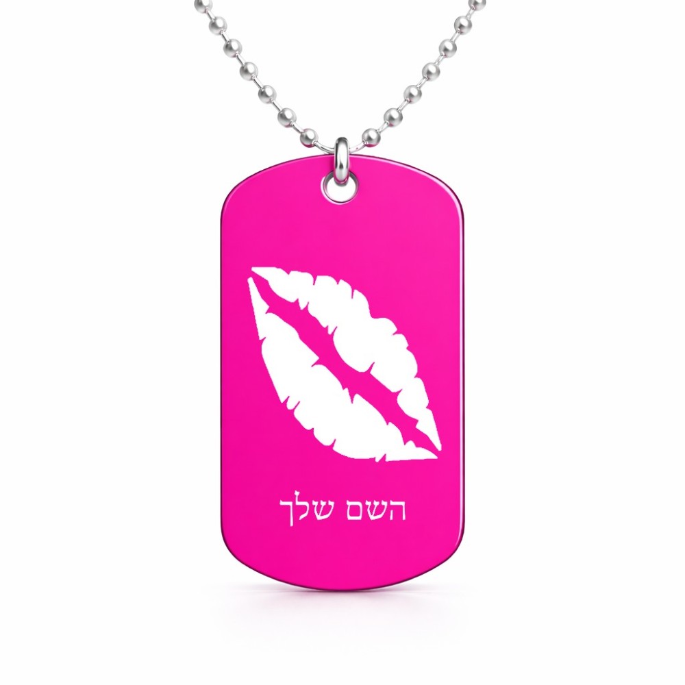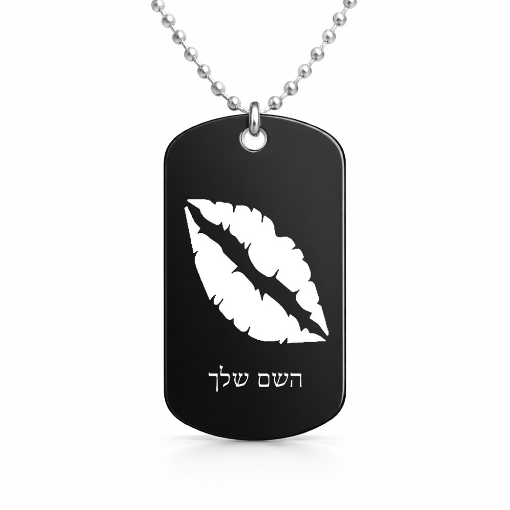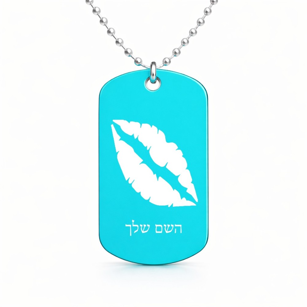 שרשרת דיסקיט מאלומיניום בעיצוב אישי עם השם שלך בעיצוב שפתיים - נשיקה גודל הדיסקיט 2.9 × 5 ס"מ. את השם המבוקש ניתן לציין בהזמנה, אם לא צויין אנחנו ניצור קשר לבירור.
