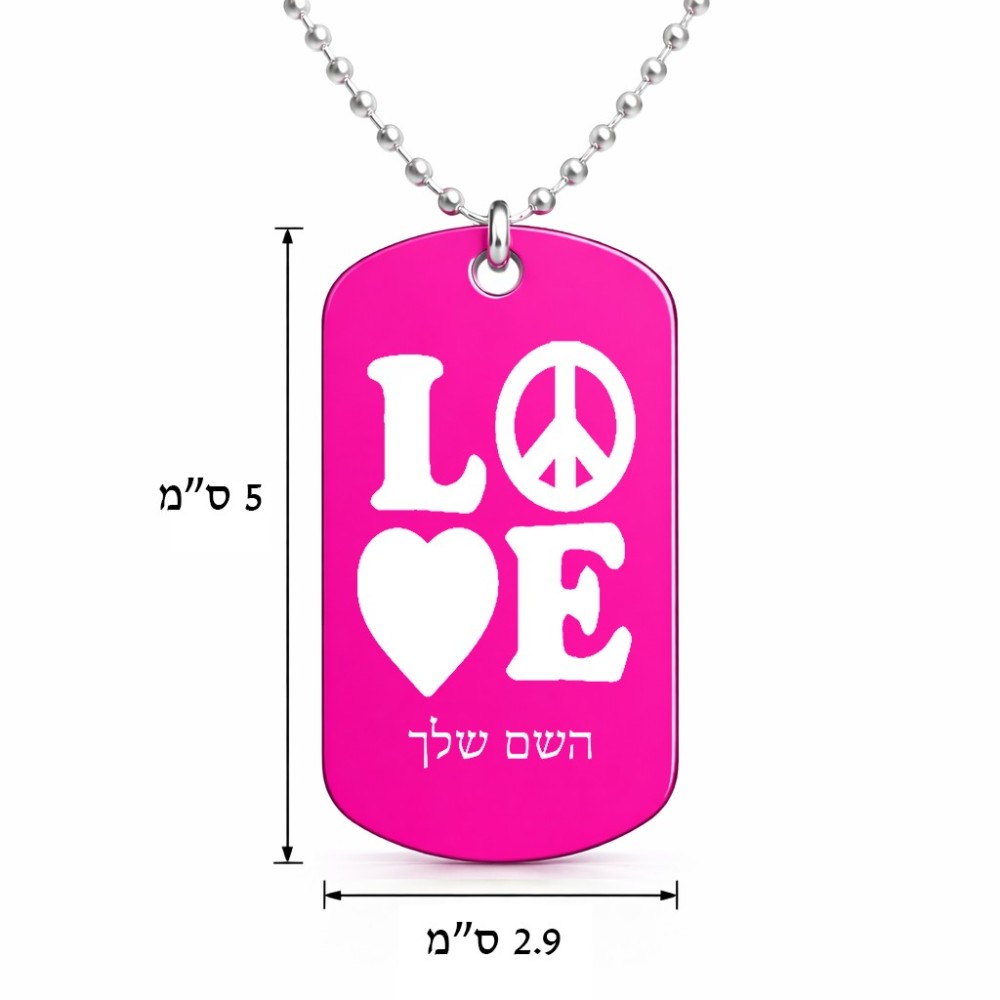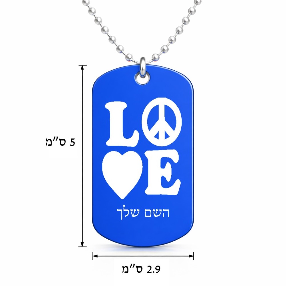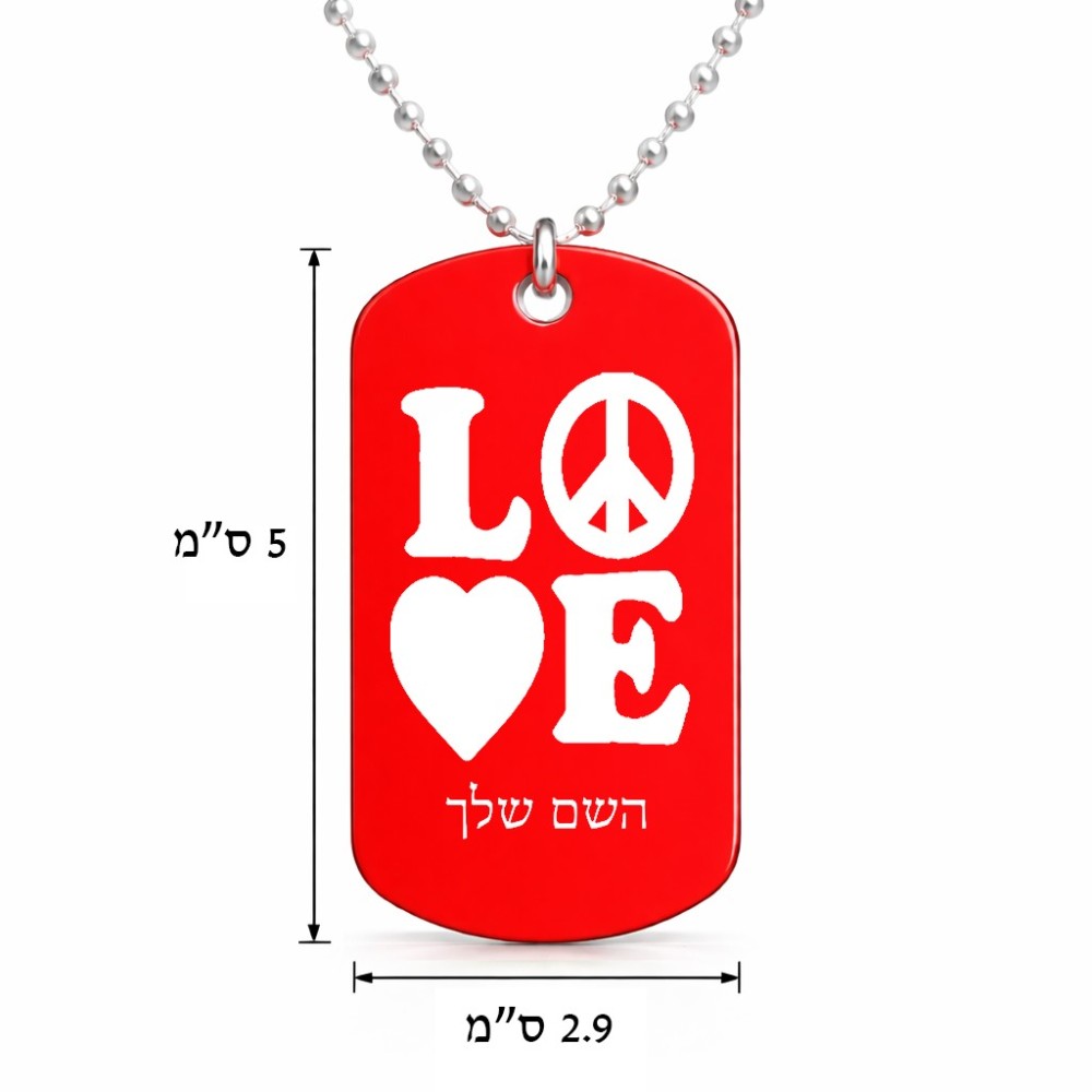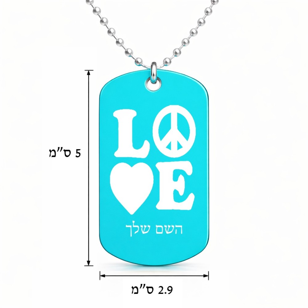 שרשרת דיסקיט מאלומיניום בעיצוב אישי עם השם שלך בעיצוב אהבה גודל הדיסקיט 2.9 × 5 ס"מ. את השם המבוקש ניתן לציין בהזמנה, אם לא צויין אנחנו ניצור קשר לבירור.
